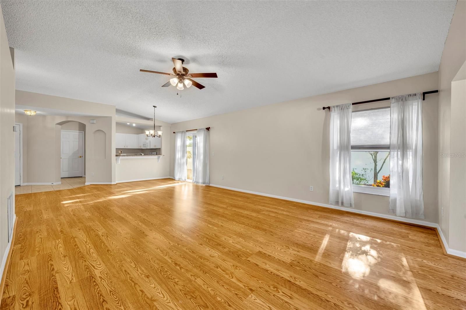 - Ceiling Fan(s), Living/Dining Room, Open Floorplan, Main Level Primary, Split Bedrooms, Walk-In Closet(s), Window Treatments