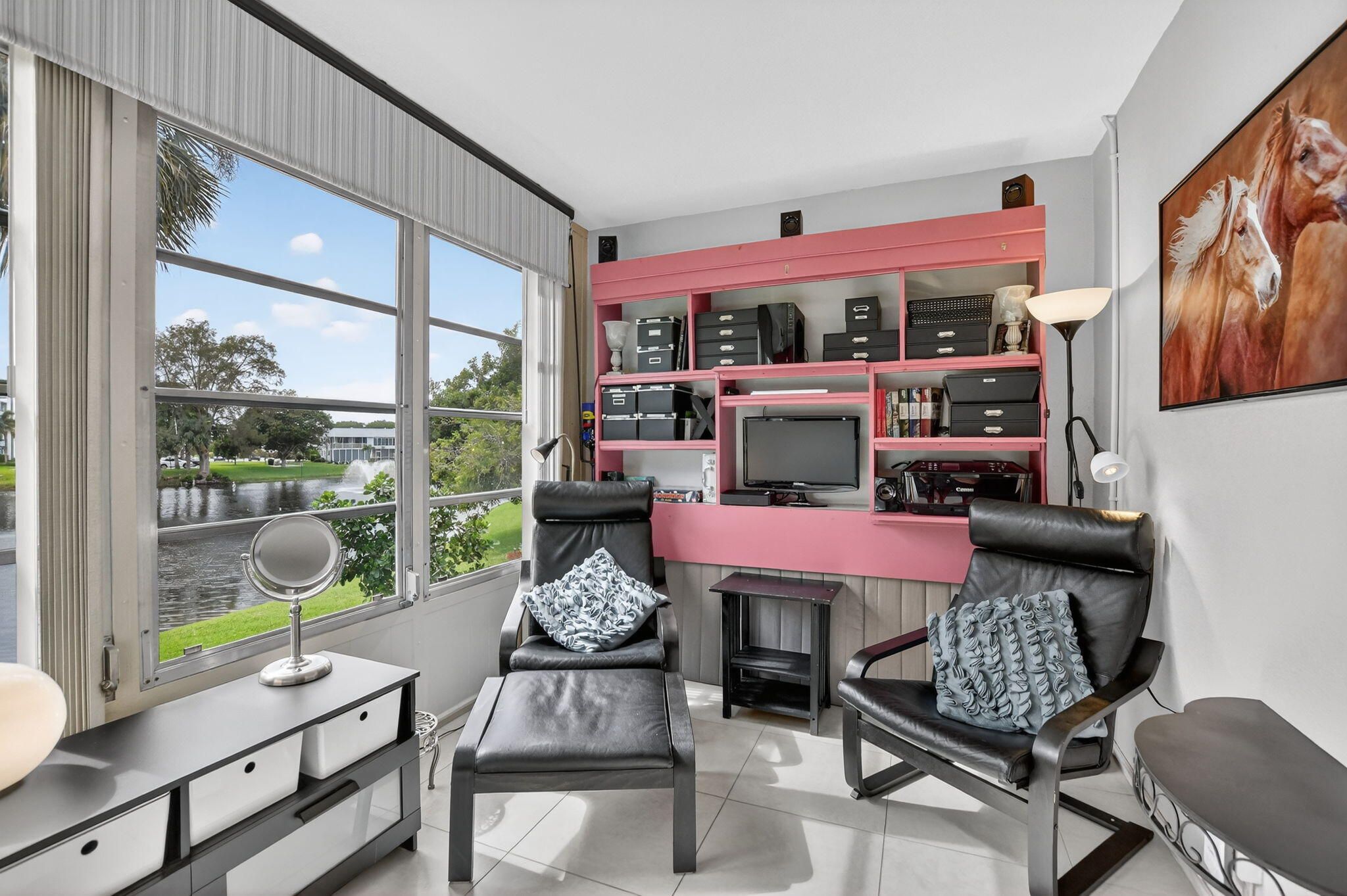 Charming 1-bedroom, 1.5-bath condo on the second floor of Farnham N, offered fully furnished and move-in ready. Bright interior with tile flooring throughout, an updated kitchen, and a Florida room showcasing beautiful lake views. Features include a new electrical panel, newer A/C, and water heater. Conveniently located near the elevator. Situated in Century Village Deerfield Beach (55+ community) with resort-style amenities, including pools, fitness center, tennis, and courtesy bus service—just minutes from the beach, shopping, dining, and places of worship.