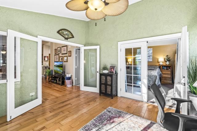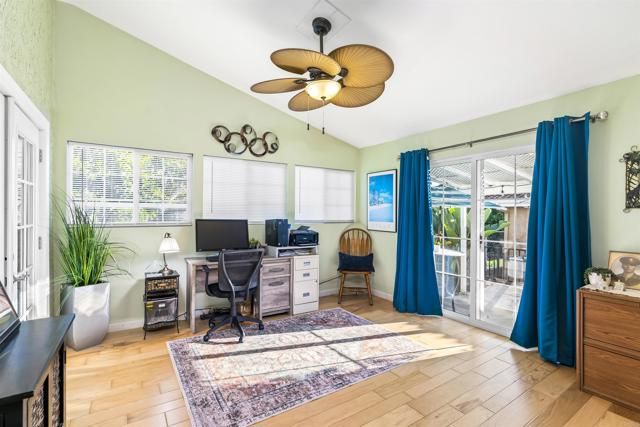 This rare offering blends comfort, style, and smart use of space. With 2 bedrooms plus a versatile family room/office/craft room that easily becomes a 3rd bedroom, the home adapts beautifully to your lifestyle. Enjoy the quiet created by added insulation, the charm of hickory wood floors, and a kitchen upgraded with granite counters and a farmhouse sink. Own the land. 6 miles to the ocean*enjoy ocean breezes. Custom tile, Berber carpet, and a dedicated laundry room enhance everyday living. The remodeled primary shower, walk-in closet, and dual-pane windows and doors bring modern convenience, while the newer HVAC keeps the home comfortable year-round. Relax with rear yard views, unwind on the side patio, and appreciate the peace of a gated community. Homes like this rarely become available.