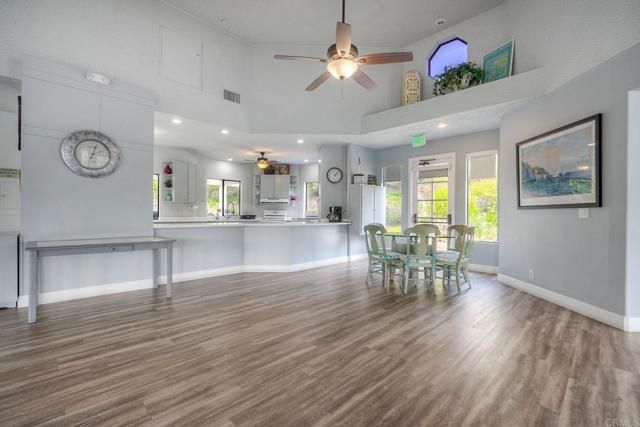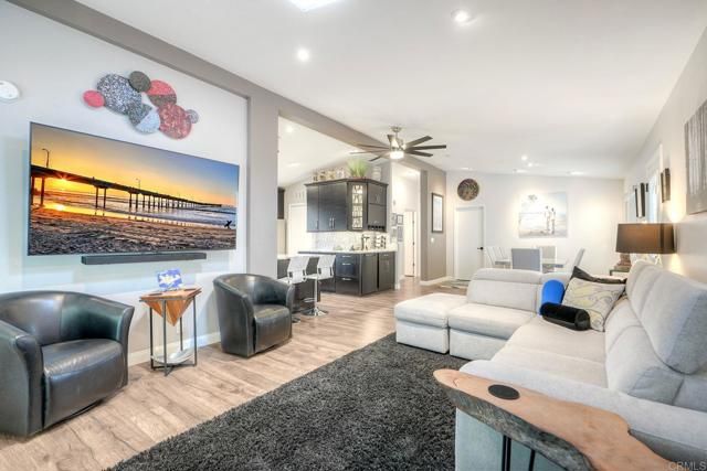 Stunning home beautifully updated! Home offers functionality with a long list of modern enhancements! Wall removed in kitchen to acquire a more open concept*Elegant recessed lighting*brand new kitchen contemporary finishes*granite counters*LED lighting*New flooring for a fresh cohesive look! Bar frig/ wine rack for entertaining* New refrigerator* Energy efficient SOLAR owned*New roof*Murphy bed*Primary remodel bedroom for efficiency*Gorgeous oversized shower with 2 shower heads custom remodeled room extremely efficient* custom front door* new windows with disappearing screens*Sought after west side location *direct access from garage to house*Garage cabinets/shelving *Spacious private yard with natural gas firepit boasting landscape lighting & overhead yard illumination an entertainers dream quiet/private* Own the land, own the house, gated senior community enjoy the ocean breezes!