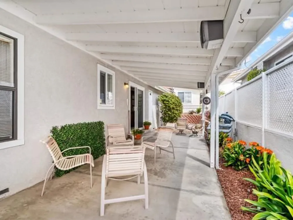 *Stunning home beautifully updated! Home offers functionality with a long list of modern enhancements! Wall removed in kitchen to acquire a more open concept*Elegant recessed lighting*brand new kitchen contemporary finishes*granite counters*LED lighting*New flooring for a fresh cohesive look! Bar frig wine rack for entertaining* New refrigerator* Energy efficient SOLAR owned*New roof*Murphy bed*Primary remodel bedroom for great efficiency*Gorgeous oversized shower with 2 shower heads custom remodeled room extremely efficient*custom front door* new windows with disappearing screens*Sought after west side location *direct access from garage to house*Garage cabinets/shelving *Spacious private yard with natural gas firepit boasting landscape lighting & overhead yard illumination an entertainers dream quiet/private* Own the land, own the house, gated senior community enjoy the ocean breezes!