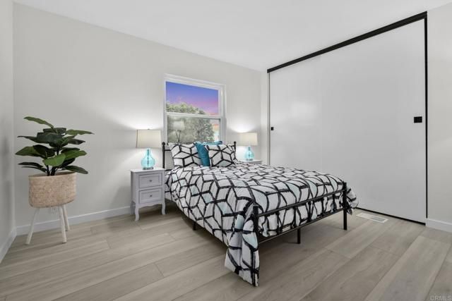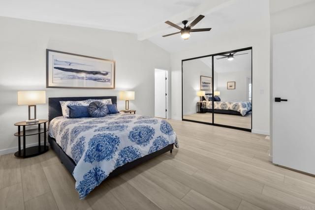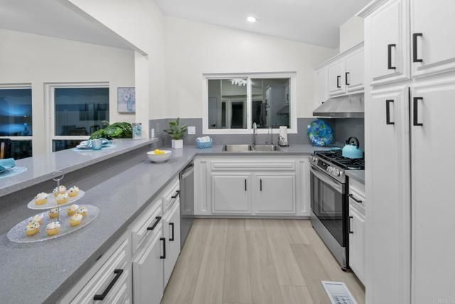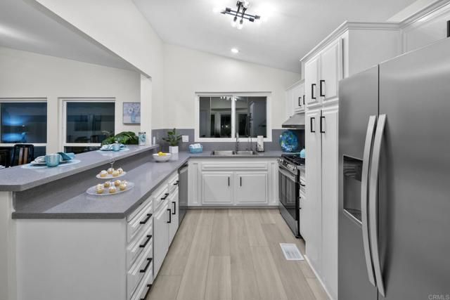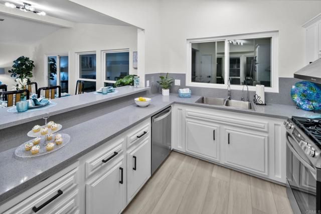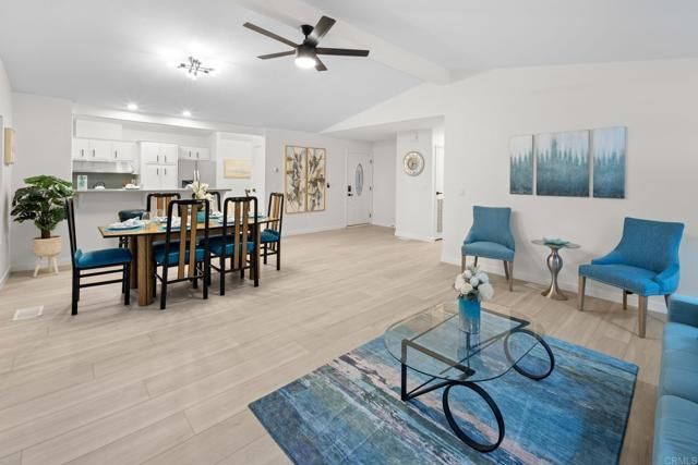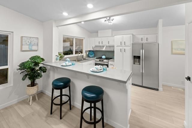 Beautifully Revitalized, Light & Bright 2-Bed/2-Bath Home in 55+ Gated Community — YOU OWN THE LAND! Welcome to this fresh and modern 1,400 sq. ft. home nestled in a desirable 55+ gated community, just 8 miles from the beautiful Carlsbad beaches. Enjoy cool coastal breezes, a low HOA of only $199/month, and the rare benefit of owning the land. Step inside to discover an airy open-concept floor-plan with vaulted ceilings, designed for seamless indoor/outdoor living on an oversized lot. The spacious living and dining areas offer the perfect setting for both everyday comfort and entertaining. The revitalized kitchen features granite countertops, freshly painted cabinetry, and all-new stainless steel appliances, including a double-door refrigerator, 5-burner gas stove, and dishwasher. Start your mornings in the charming breakfast nook with a bay window or at the convenient kitchen bar. The beautiful primary suite offers a walk-in closet with mirrored doors and a private patio entrance. The adjacent updated primary bath includes a soaking tub, separate shower, and abundant storage. The second bedroom is bright, inviting, and perfect for guests or hobbies. Additional Upgrades & Features: • Freshly painted inside and out • All-new wide plank LVP flooring • New modern lighting throughout • Custom front door with contemporary handle set • Dual-pane windows with locks • Updated exterior lighting • Two large covered patios offering privacy, quiet enjoyment, and ideal spaces for relaxing or entertaining • Peace of mind with nighttime security • Active community lifestyle with dinners, parties & games Residents also enjoy resort-style amenities, including a sparkling pool, relaxing spa, and a remodeled clubhouse perfect for gatherings and events. Conveniently located near shopping, restaurants, and major freeways—with Kaiser Hospital just 10 minutes away and Palomar Hospital only 16 minutes. Easy access to Hwy 78 completes the package—this home truly has it all!