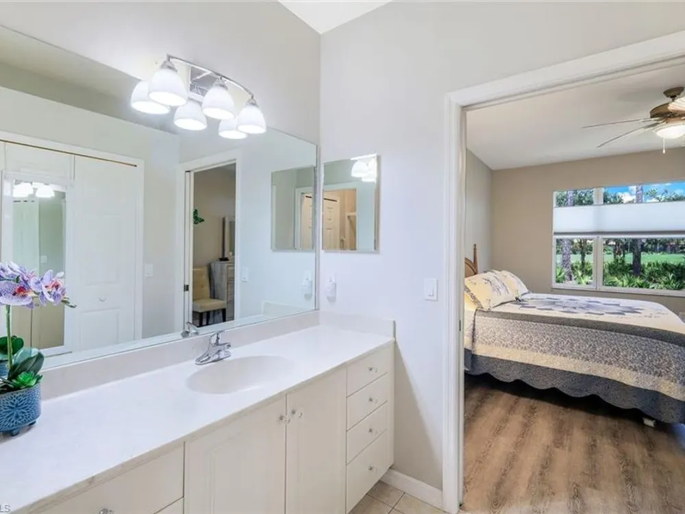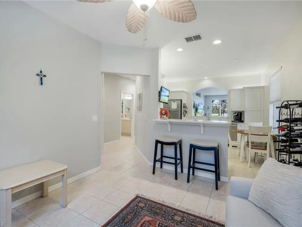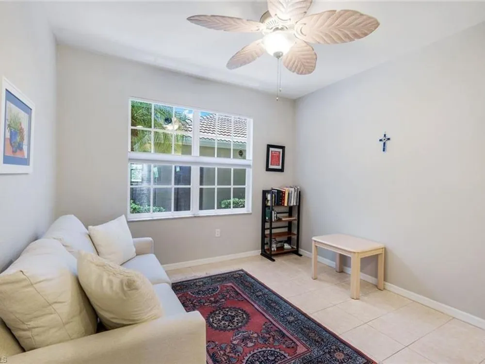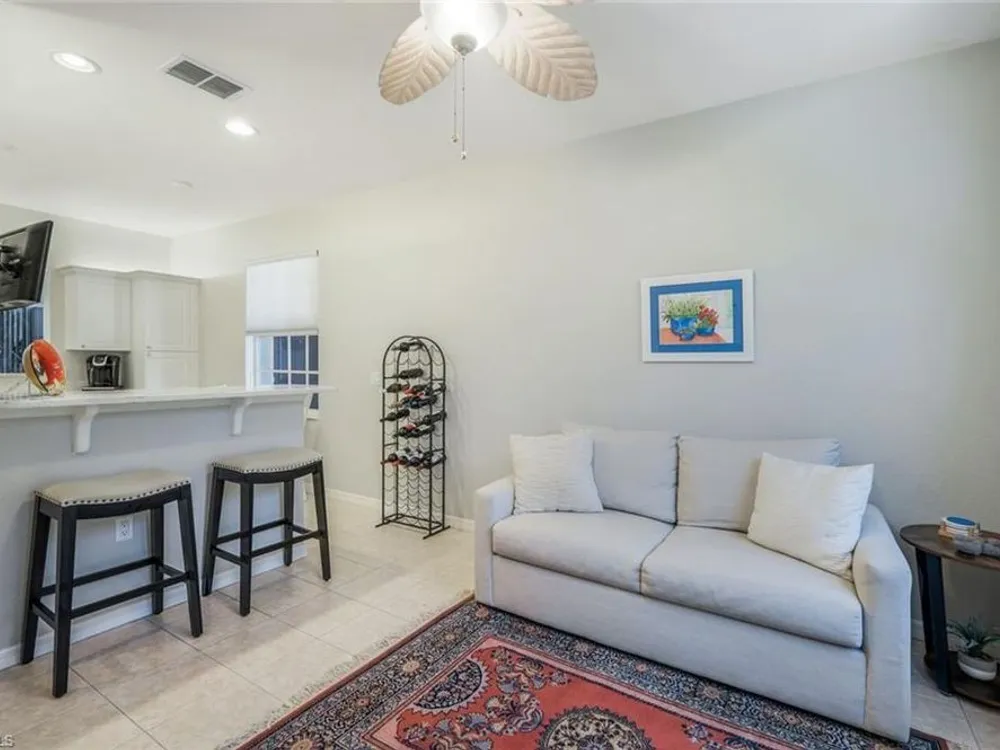 This stunning condominium offers 2 bedrooms, a den, 2 baths, and a detached one-car garage. The den can easily be converted into a home office for those who work remotely. The kitchen is equipped with stainless steel appliances and quartz countertops, adding a touch of sophistication to the space. The upgraded guest shower is sure to impress visitors, providing a luxurious experience during their stay. The main living areas and bedrooms feature new flooring, the AC unit is 6 years old and a new LG washer and dryer. Residents with a social membership have exclusive access to a resort-style pool and spa, a fitness center, tennis courts, basketball, and bocce. Grandezza offers both casual and formal dining options, making it perfect for any occasion. Whether you are looking for a cozy retreat or a place to entertain guests, this condo has everything you need. Don't miss the opportunity to make this stunning condo your new home in beautiful Estero. Schedule a showing today and start living the Florida lifestyle you have always dreamed of!