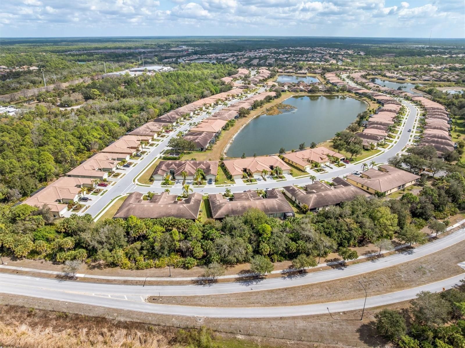 One or more photo(s) has been virtually staged. Welcome to this stunning waterfront end-unit villa in the highly sought-after active Gated 55+ Venetian Falls community! This beautifully maintained 2-bedroom, 2-bath + Den\Office Bella Vista model has had only one owner, and it truly shows pride of ownership throughout. The front entryway and porch is screened in and provides ample space for a nice sitting area. Step inside to a bright, open living and dining space, perfectly designed for both relaxing and entertaining. Sliding glass doors lead you to an extended screened lanai overlooking a tranquil pond, where you can sip your morning coffee while enjoying Florida’s abundant wildlife—your own private retreat. The kitchen is a dream, featuring Granite Countertops, stainless steel appliances, a closet pantry, Breakfast bar, and cozy kitchenette—ideal for casual meals or hosting friends. This unit has a split floor plan. The spacious primary suite is tucked away at the rear of the home for privacy and offers his and hers closets. The guest suite is located in the front of the home. Tile flooring flows through the main living areas, while newer laminate flooring adds warmth to the bedrooms and den. Plantation shutters on every window elevate the home’s style and charm. This home offers full hurricane protection and is located in an X Flood zone (you are not required to have flood insurance) that keeps insurance costs low. Venetian Falls is an Active, premier 55+ resort-style gated community, offering an impressive array of amenities including a grand clubhouse, fitness center, heated lap pool, resistance pool, bocce courts, billiards room, craft and card room, putting green, and hosts many activities. The very low HOA fee covers lawn and shrub care, irrigation, cable, internet, exterior painting (this unit is scheduled for March!), roof pressure washing, and mulching—easy living at its best. Perfectly located just minutes from Venice’s charming downtown and the world-famous beaches along the Gulf, this villa delivers the ultimate Florida lifestyle. Its close proximity to Wellen Park offers Shopping, Dining, Events, and is also the Spring Training Home of the Atlanta Braves! Don’t miss this incredible opportunity—schedule your private showing today!