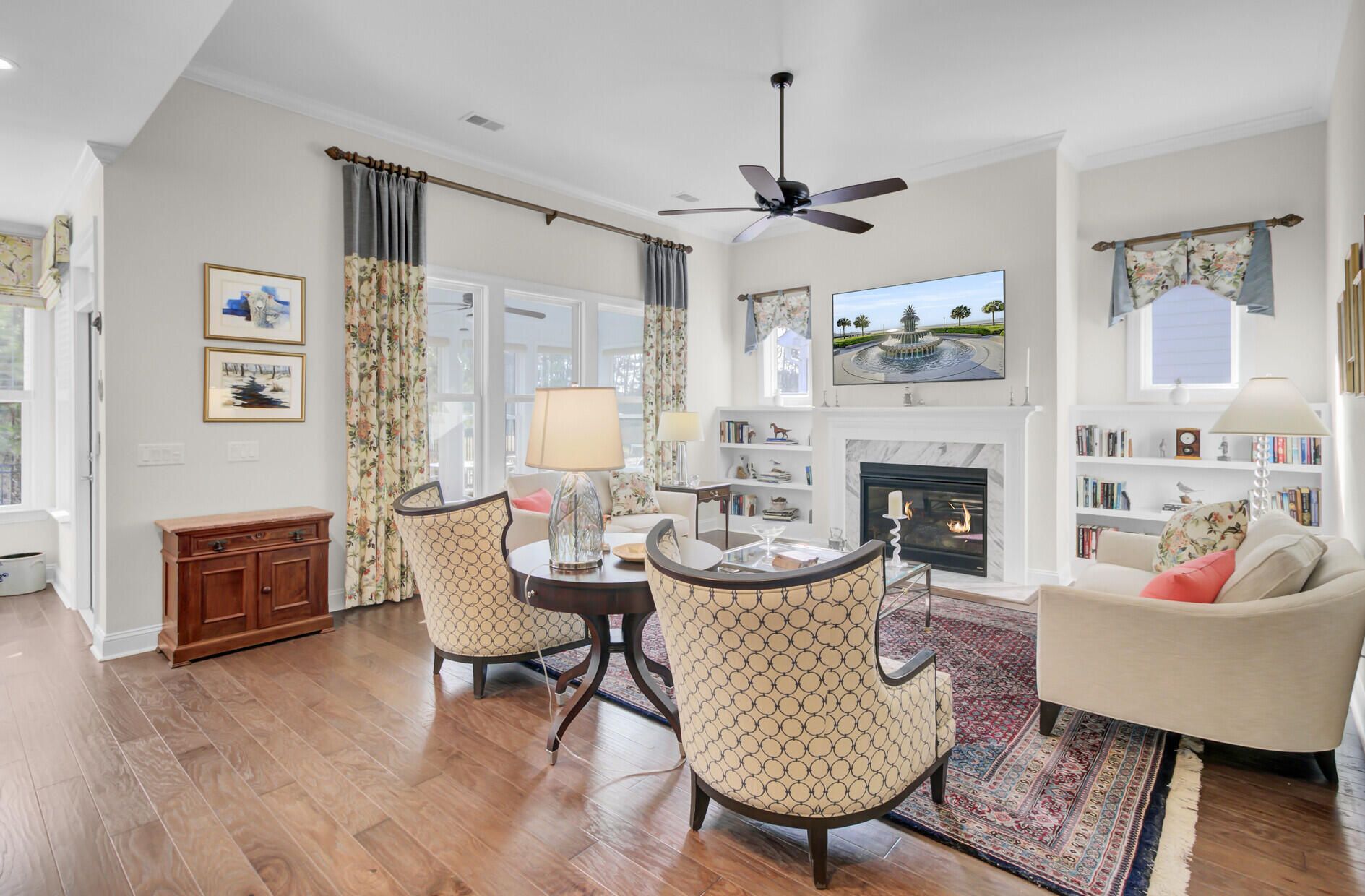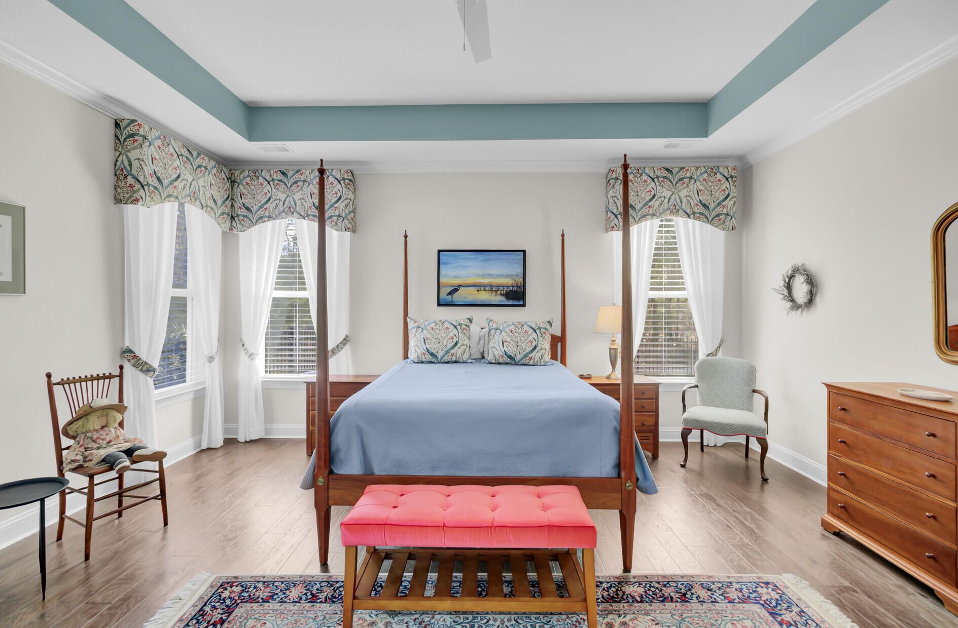 Exceptional home on private lot with woods & water views! This dynamic floor plan features 3 bedrooms & 2.5 Baths on the main floor plus a Second Full Suite up with large Bedroom/Bonus area & Full Bath! Accented with extensive trim work, tray ceilings, & designer touches this one is special. Elegant foyer overlooks private study and open formal dining space. Spacious great room is open to the gourmet kitchen, breakfast nook & formal dining. Rear sunroom is picture perfect with split hvac unit offering year 'round comfort. Split bedroom plan assures privacy to the primary suite with upgraded shower, private water closet, and custom walk-in closet. Both secondary bedrooms are nice sizes with Jack & Jill Bath. Fenced back yard overlooks pond with fountain & tranquil wood. Don't Miss This OneKitchen is well-appointed with 42" cabinets, stainless appliances, expansive center island, granite counters, tile backsplash, under cabinet lighting, gas cooktop and wall oven with microwave. Most base cabinets and pantry have been upgraded with roll out shelving. Custom coffee bar makes this sunlit breakfast nook a standout; and access from the main listing spaces to the sunroom increases both your entertaining and relaxing space! Attached two car garage features finished walls, workshop area, 4 florescent ceiling lights, wall mounted storage cabinets and walk-in storage closet with shelving & organizer hooks for your lawn tools. Extended rear patio provides room to enjoy your surroundings and there is even a natural gas hookup for a grill! Wrought iron look fencing around the backyard provides safe play space and room to garden if you have a green thumb. During their ownership sellers have made the following improvements: Interior & Exterior trim were freshly painted. Wrought Iron Look Fencing with extra small dog guards installed along the bottom was added to the rear yard. Added custom blinds, curtains, cornices and window treatments and they all convey with the home. French Door Refrigerator (new in 2021) in Kitchen conveys with the home. Washer/Dryer set (new in 2022) in laundry room convey with the home. Microwave Oven newly installed in 2025. New front landscaping was installed & additional plants were added throughout the lot. Formal Dining Chandelier was upgraded New ceiling fan was added to the Primary Bedroom. The home offers a deep, rocking chair front porch complete with ceiling fan and flower boxes gracing the front railing. A whole house Generac Generator is in place. Gutters have been installed. Natural vegetation provides privacy to the left side of the home, with undisturbed woods along the back. Plus, you can enjoy the walking trail behind your back yard and absolutely lovey views of a large pond with a fountain, all maintained by the HOA. This home is second to none! Note: The fenced in area of the back yard can be maintained by the HOA for a small additional monthly fee or as the homeowner you have the option to maintain that area yourself. Cresswinds at The Ponds provides a fantastic Active Adult Lifestyle with Large Clubhouse, Outdoor Pool, Hot Tub, Tennis, Pickleball & Bocci Ball Courts, Outdoor Amphitheater, Professional Kitchen, Bar Area, Ballroom with Stage, Billiards Room and more! Join clubs, take cooking classes, play board games. If you have an interest chances are this neighborhood already has a club in place for your enjoyment! The Ponds is set in a Nature Conservancy with Miles of Undisturbed Walking Tails, Kayak/Canoe Launch, Fishing Lake, Dog Park, Open Fields for Sporting Events, Children's Playground & Tree House. Activities Directors in both Cresswinds & The Ponds keep the fun going year 'round with Food Trucks, Festivals, Fishing Rodeas, Barbecue Bashes and more. All this is located just 15 minutes from Historic Downtown Summerville and less than 30 minutes from Historic Downtown Charleston! Forgot to mention...There is a YMCA & a Fire Station located at the front entrance to The Ponds. It doesn't get much better than this! Schedule your private showing today!