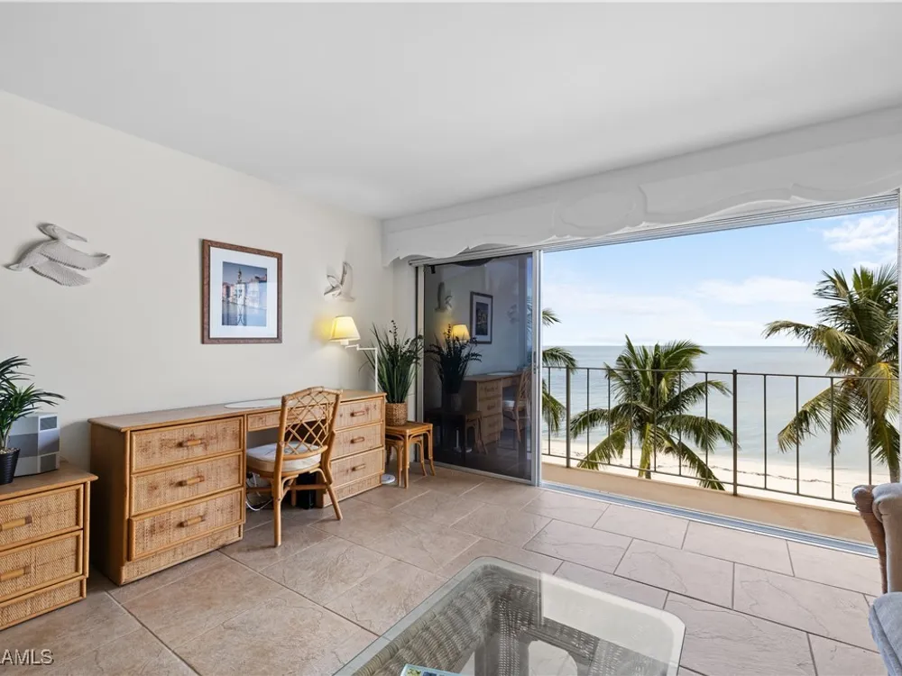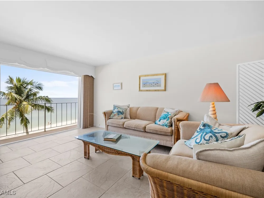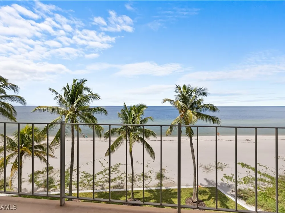 AMAZING VIEW of Naples pristine beach with white sand from this 4th floor condo in the Carriage Club! Two bedroom, 2 full bath condo located in the prestigious Moorings. Newly renovated pool and a courtyard with steps leading right onto the beach. Convenient split bedroom floorplan, a galley kitchen with plenty of storage, spacious living and dining room with a spectacular view from the balcony. Shared lobby on the 4th floor, storage locker for each unit and an assigned covered parking space come with this condo.
