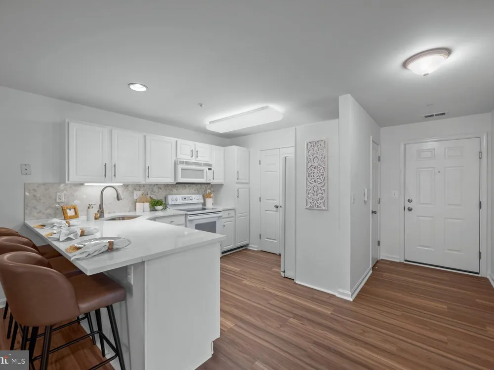 Welcome to Winifred Manor a Beautiful 55+ Independent Living Community in the Heart of Eldersburg! From the moment you enter this well-maintained ground-level unit, you’ll appreciate the thoughtful updates and comfortable design. The home features updated flooring and a well-appointed kitchen with quartz countertops, a stylish backsplash, breakfast bar, and utility closets that include a convenient stackable washer and dryer. Just off the kitchen, the inviting living room opens through French doors to your private patio — perfect for morning coffee or evening relaxation. The spacious primary suite is tucked away at the back of the home for privacy and offers a walk-in closet and full bath with a tub/shower combo. A second bedroom and full bath across the main living area provide the perfect setup for guests or a home office. Community amenities include a community center for social gatherings, games, and activities, as well as a charming gazebo near the entrance that enhances the welcoming atmosphere. The condo fee covers water, sewer, trash, snow removal, lawn and landscaping care, and maintenance of common areas offering truly low-maintenance living. Conveniently located just minutes from shopping, dining, and local amenities, Winifred Manor offers comfort, community, and convenience all in one place. Please verify with your lender, as Winifred Manor does not appear to be FHA-approved. The condominium association will be replacing balconies in the near future, and the community is transitioning to a smoke-free environment.