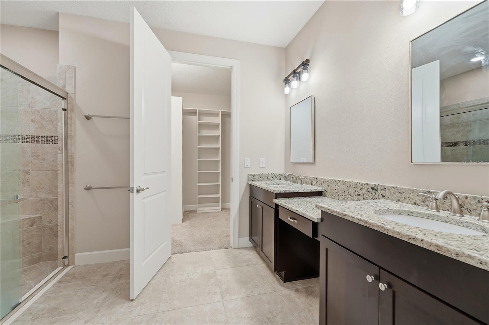 - Ceiling Fan(s), Crown Molding, Main Level Primary, Split Bedrooms, Stone Counters, Thermostat, Tray Ceiling(s), Walk-In Closet(s)
