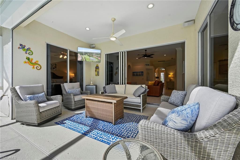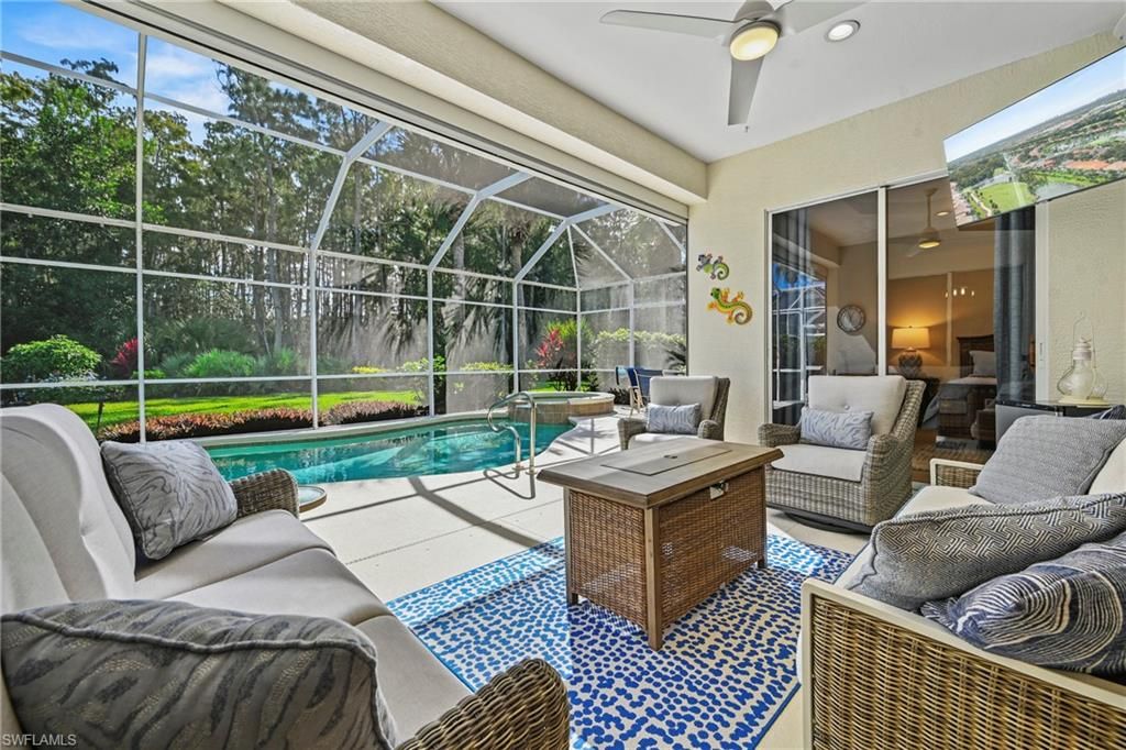 This beautifully maintained home is being sold turnkey furnished and radiates warmth the moment you walk in. Every space feels fresh, clean, and thoughtfully decorated with tasteful furniture and beautiful lighting throughout. It’s the perfect blend of comfort and style.Step outside to the serene lanai with a southeast exposure—ideal for morning coffee, an afternoon swim, or relaxing under the stars. The brand new propane heater and pump (2025) heat the pool and especially the spa in 15 minutes! The view is peaceful and calming, surrounded by mature trees on a quiet street that feels tucked away yet close to everything.Recent updates include a brand-new roof, AC, and water heater, and tile flooring throughout—no carpet anywhere. Electric and accordion hurricane shutters provide extra peace of mind during storms. This home has been lovingly cared for and it shows—it’s truly a place that feels good to come home to.Grandezza is located in the heart of Estero! This home is located within a quick walking distance to Publix, Hertz Arena and Miromar Outlets and yet, this home offers so much peace and quiet. Its very refreshing! RSW and FGCU are within a 10 minute drive as well as countless restaurants and shopping venues.