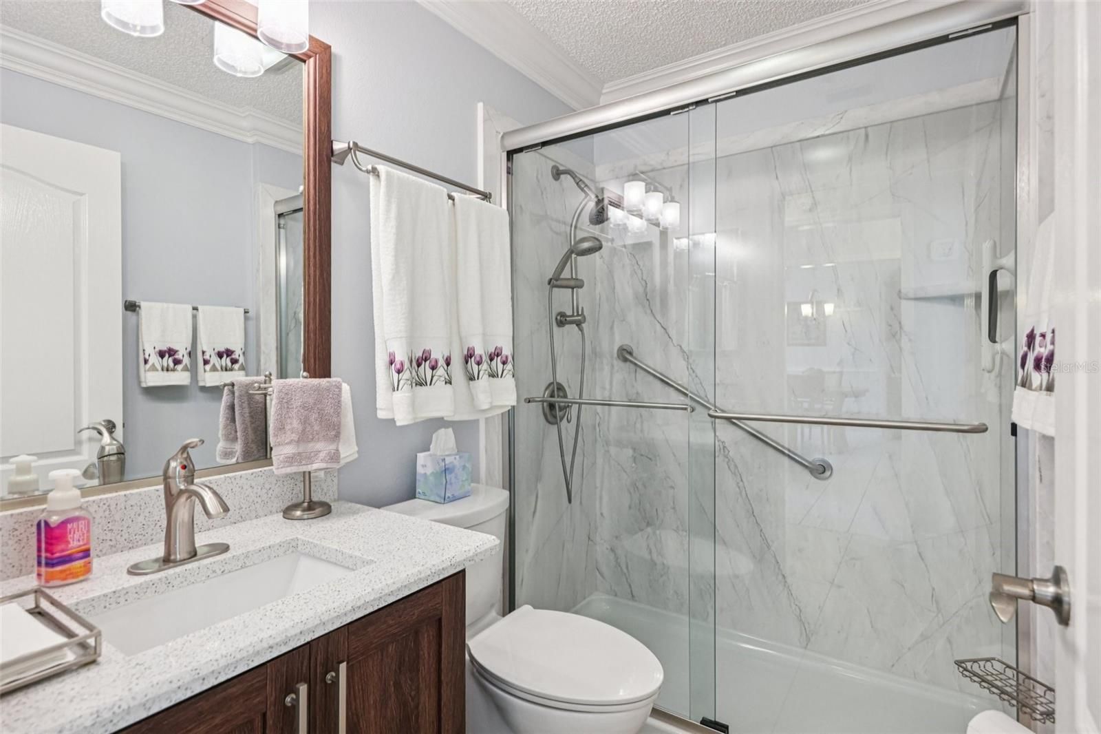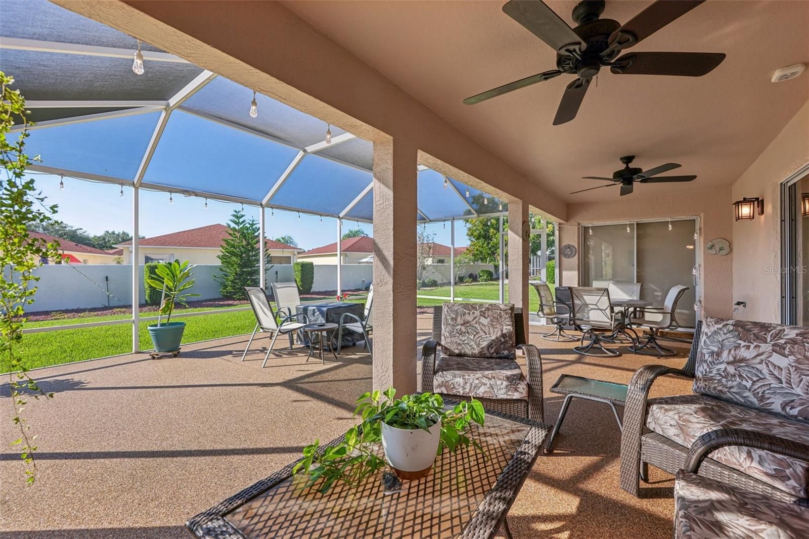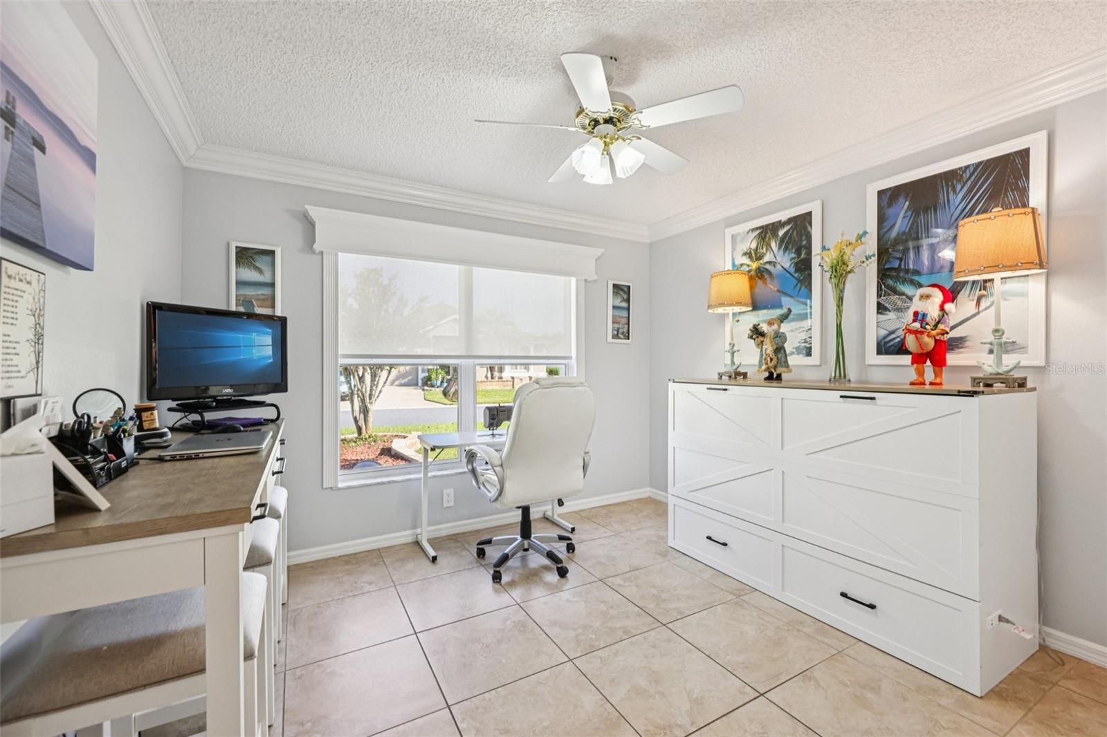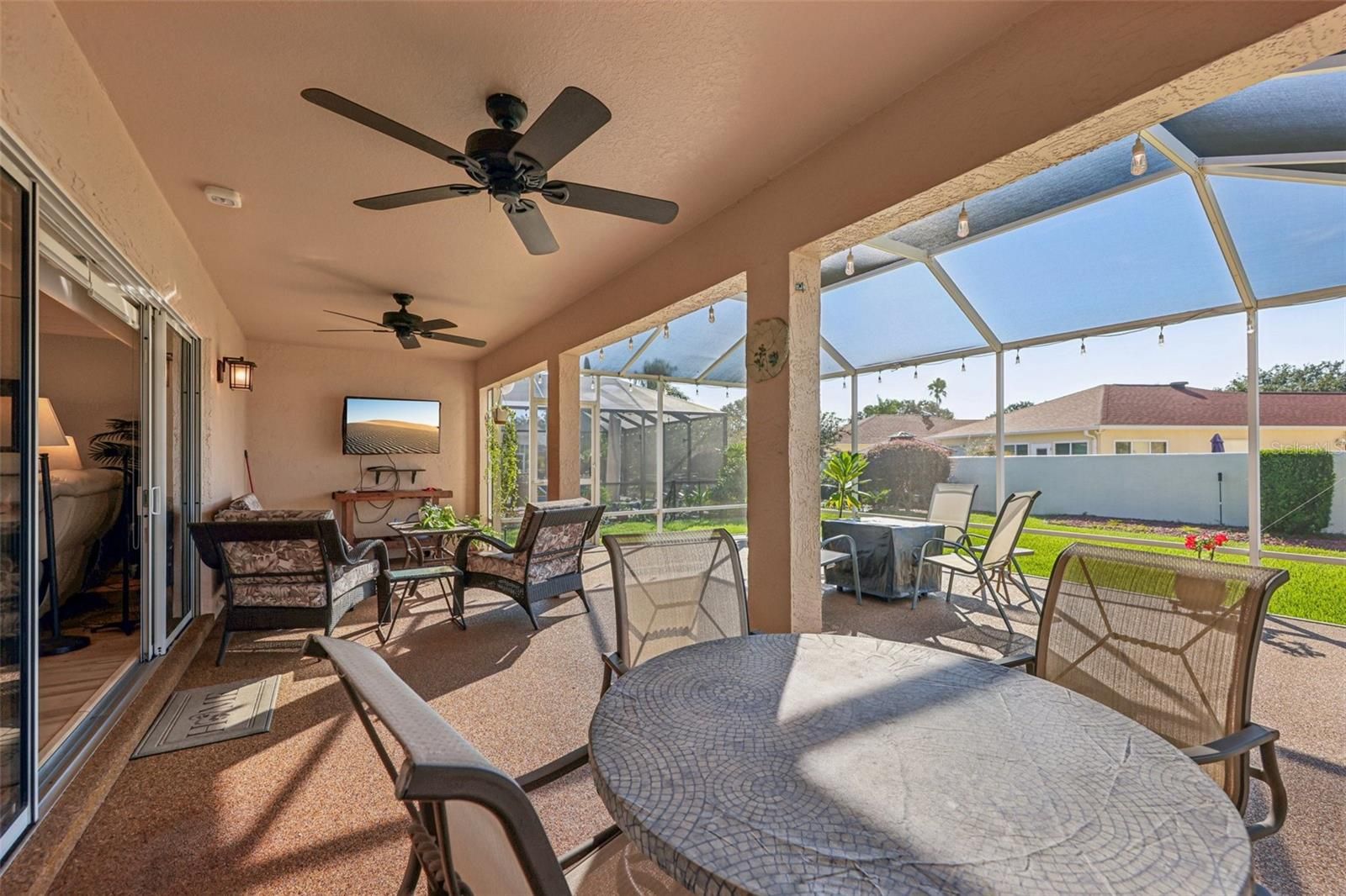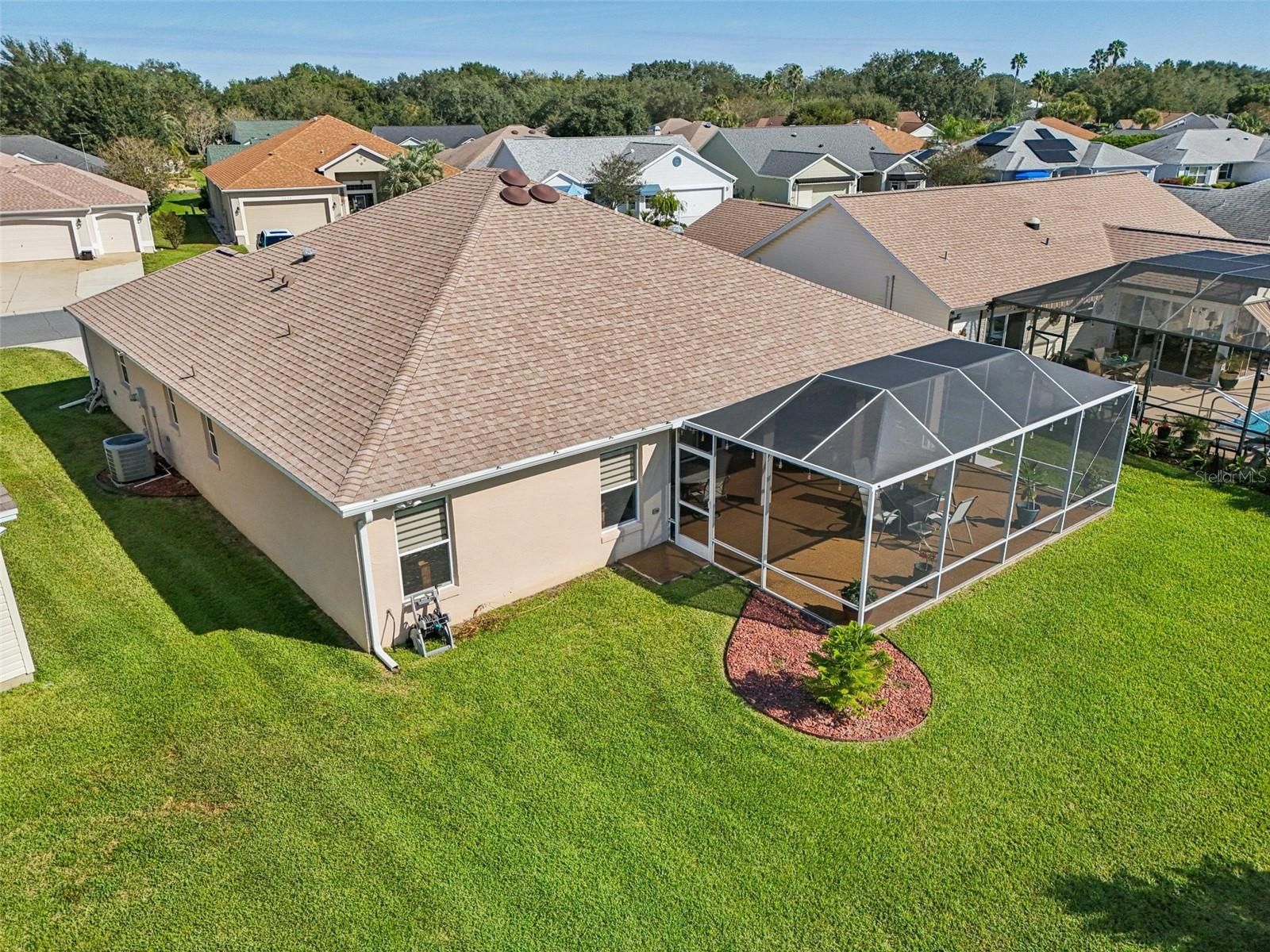 No Bond. This beautiful 3-bedroom, 2-bath Magnolia floor plan is a block and stucco home with major updates including a 2022 roof, 2017 HVAC, and 2023 water heater. The exterior features stacked-stone landscaping, a brick-style driveway and walkway, a pea gravel front porch, and an expansive birdcage lanai with a covered area, commercial-grade lighting, and a privacy wall—offering room for a pool if desired. Interior enhancements include crown molding throughout, laminate flooring with tile in the kitchen, hallways, and baths, and 18” tile flooring in the additional bedrooms. The leaded glass front door and custom window shades add a refined touch. The kitchen offers upgraded cabinetry with pull-outs and soft-close features, along with charcoal stainless steel appliances. The primary bathroom includes quartz countertops and a glass-enclosed shower. The garage is insulated and includes an extra refrigerator, shelving, and a window for natural light. Additional features include three strategically placed solar tubes and updated outlets and switches. Please note the third bedroom does not have a closet. There is a $199/month mandatory Amenity Fee which provides access to all of The Villages’ amenities, and there is no HOA. Conveniently located just minutes from grocery, shopping, dining, banking, and medical facilities. Schedule your private showing today, or request a FaceTime tour if you are not local.