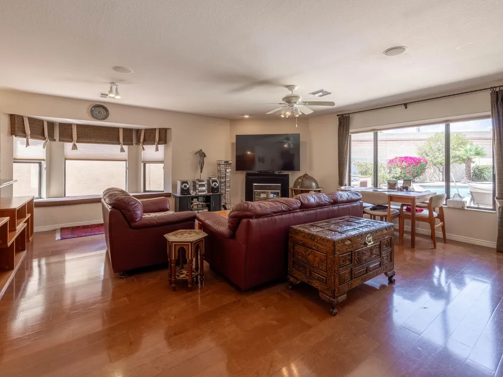 Stunning Home in Highland Hills at Westbrook Village! Welcome to this beautifully maintained 3-bedroom, 2.5-bathroom home boasting 2,666 sq ft of spacious living in this highly sought-after community. This property is packed with upgrades and features that make it truly move-in ready. Enjoy energy efficiency with OWNED SOLAR. The gorgeous updated kitchen is perfect for entertaining, while the main bathroom features dual sinks and a luxurious roll-in curb less shower for added convenience and style. Step into the added Arizona Room and take in serene views of your large lap pool and spa—ideal for relaxation or fitness. Thoughtful updates throughout. This home is a must-see for anyone seeking comfort, style, and resort-style amenities.