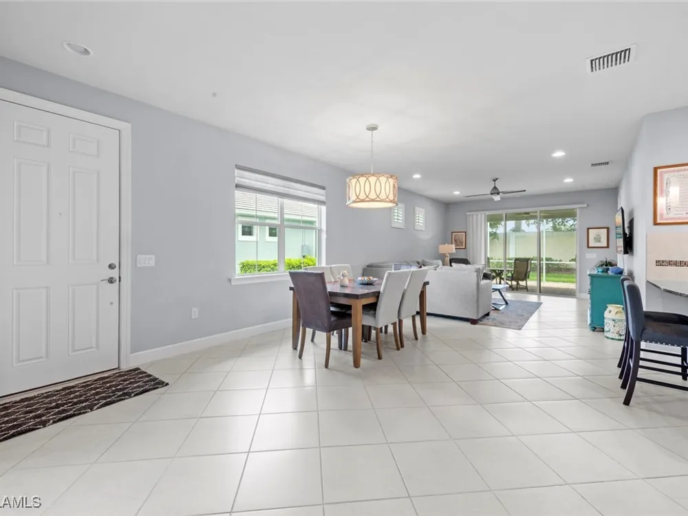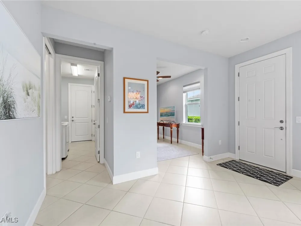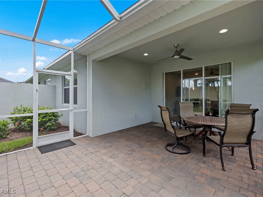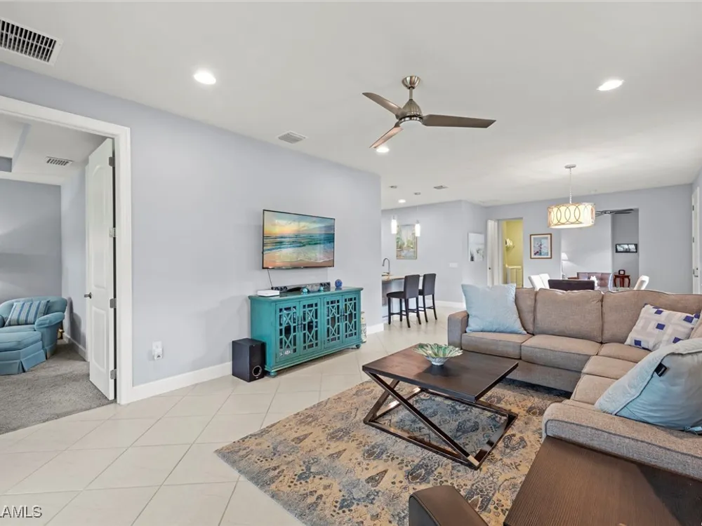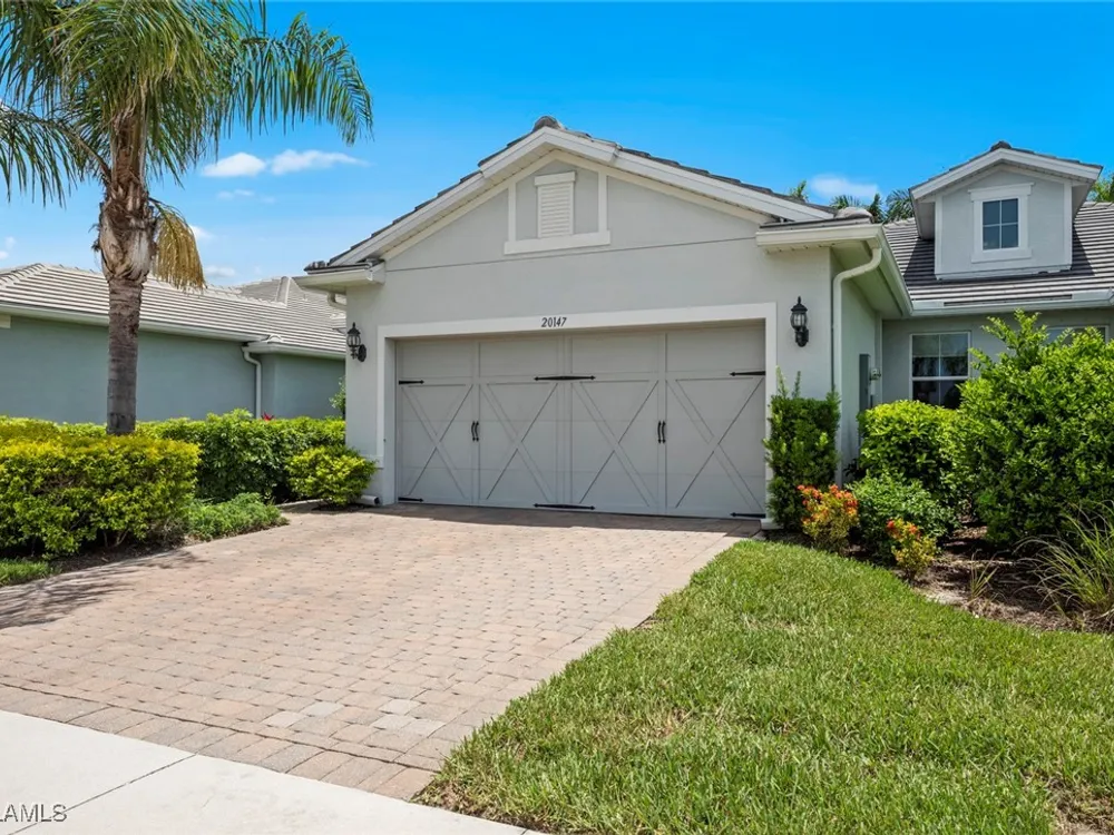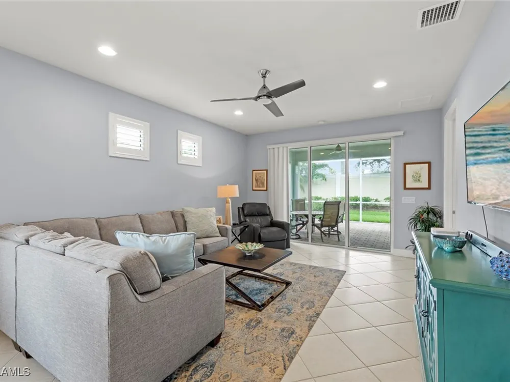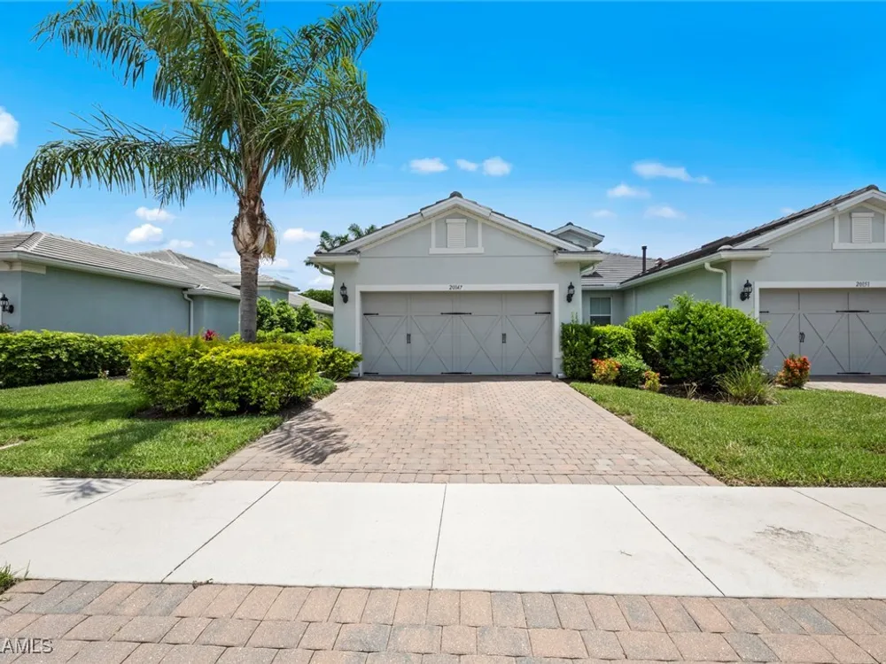 Welcome to Tidewater, where this attached villa by Pulte is located in an active Del Webb 55+ community, in the heart of Estero. Built in 2017, this home has been meticulously cared for, and offers 2 bedrooms + Den, 2 baths, and a 2-car attached garage. Come inside where this open concept spacious living area offers tile flooring on the diagonal throughout the main living area, den, baths and laundry, and carpet in the bedrooms. The upgraded, light/bright kitchen offers granite countertops, tile backsplash, stainless appliances, a pantry and natural gas for cooking. The split bedroom floor plan provides ideal privacy between the guest room and your spacious master suite. The master en-suite has an oversized walk-in shower, dual sinks, linen closet and large walk-in closet. Outside, the expanded screened lanai, offers a covered area to relax or entertain in the shade, and beyond the covered area, the lanai is expanded to enjoy the warm rays of the sun. Tidewater by Del Webb, is in Estero's premier 55+ community! The award-winning amenity center, offers bocce, Pickleball, tennis, a resort-style pool, a full-time social director and more! This active community offers the perfect location in Estero. Close to RSW Airport, Miromar Outlets, Hertz Arena, I-75... and more. Welcome home!