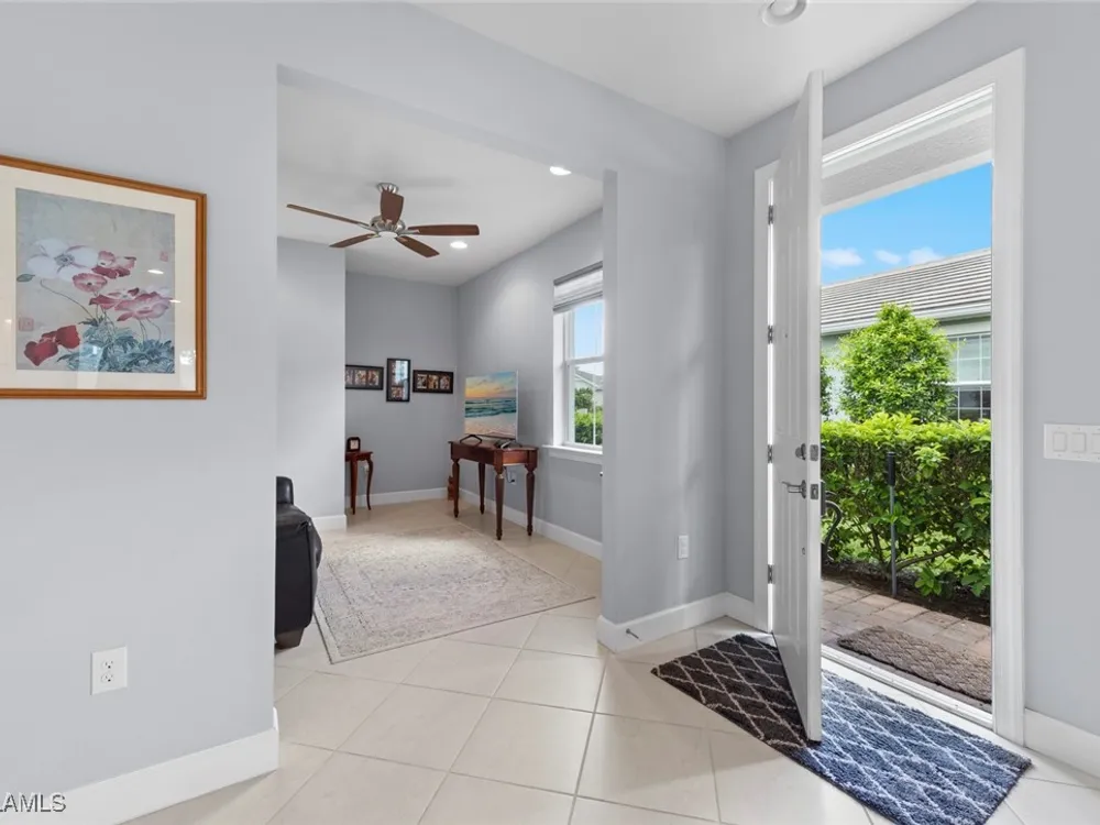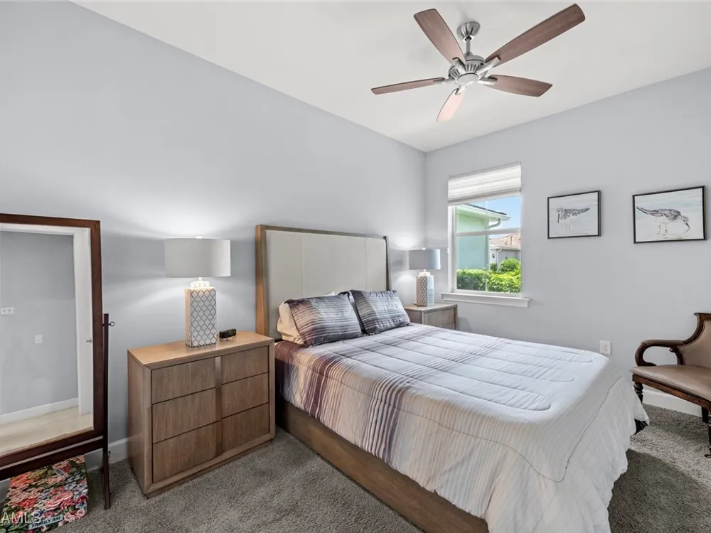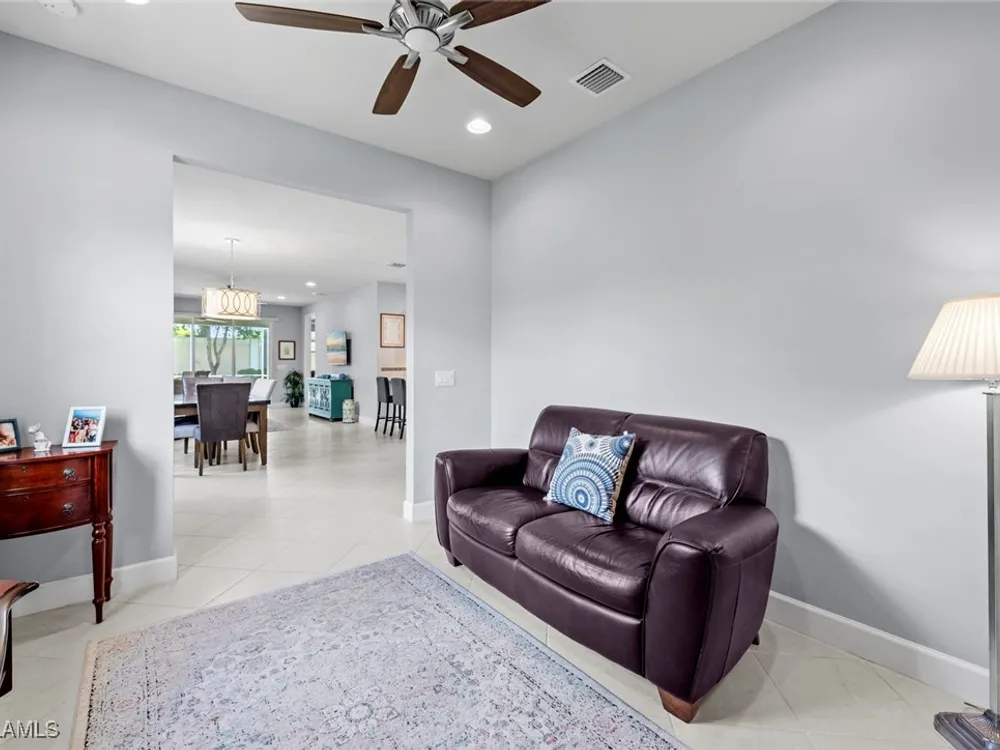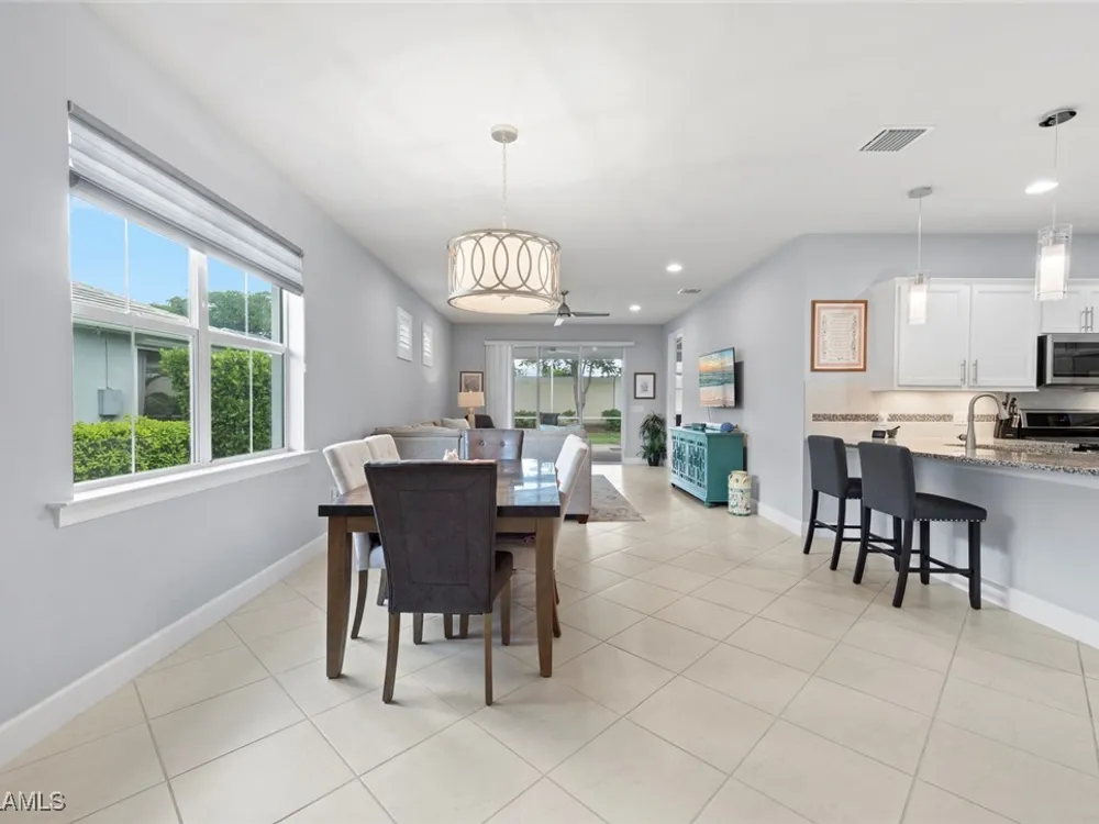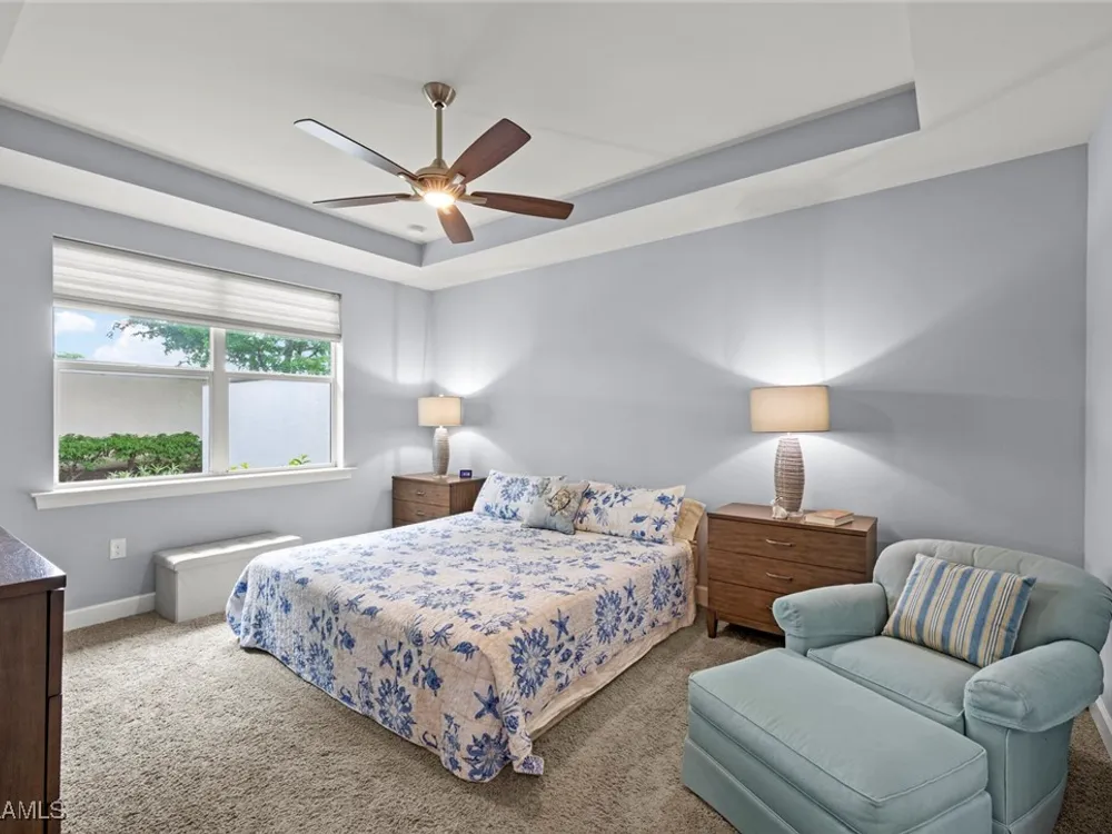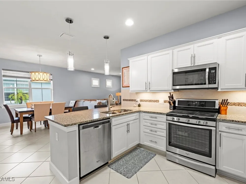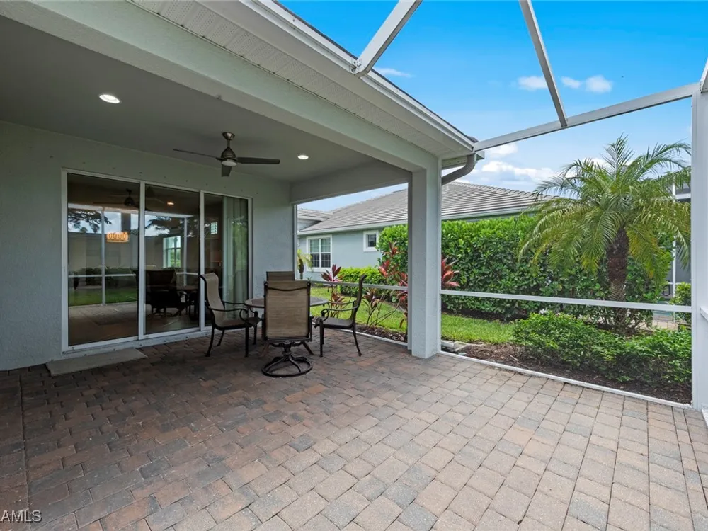Welcome to Tidewater, where this attached villa by Pulte is located in an active Del Webb 55+ community, in the heart of Estero. Built in 2017, this home has been meticulously cared for, and offers 2 bedrooms + Den, 2 baths, and a 2-car attached garage. Come inside where this open concept spacious living area offers tile flooring on the diagonal throughout the main living area, den, baths and laundry, and carpet in the bedrooms. The upgraded, light/bright kitchen offers granite countertops, tile backsplash, stainless appliances, a pantry and natural gas for cooking. The split bedroom floor plan provides ideal privacy between the guest room and your spacious master suite. The master en-suite has an oversized walk-in shower, dual sinks, linen closet and large walk-in closet. Outside, the expanded screened lanai, offers a covered area to relax or entertain in the shade, and beyond the covered area, the lanai is expanded to enjoy the warm rays of the sun. Tidewater by Del Webb, is in Estero's premier 55+ community! The award-winning amenity center, offers bocce, Pickleball, tennis, a resort-style pool, a full-time social director and more! This active community offers the perfect location in Estero. Close to RSW Airport, Miromar Outlets, Hertz Arena, I-75... and more. Welcome home!