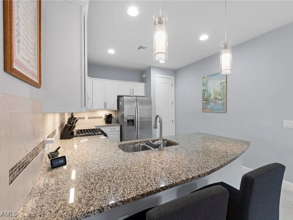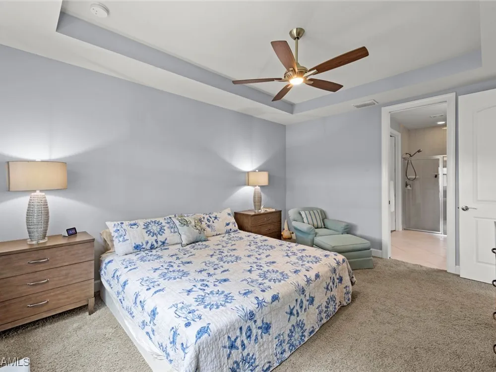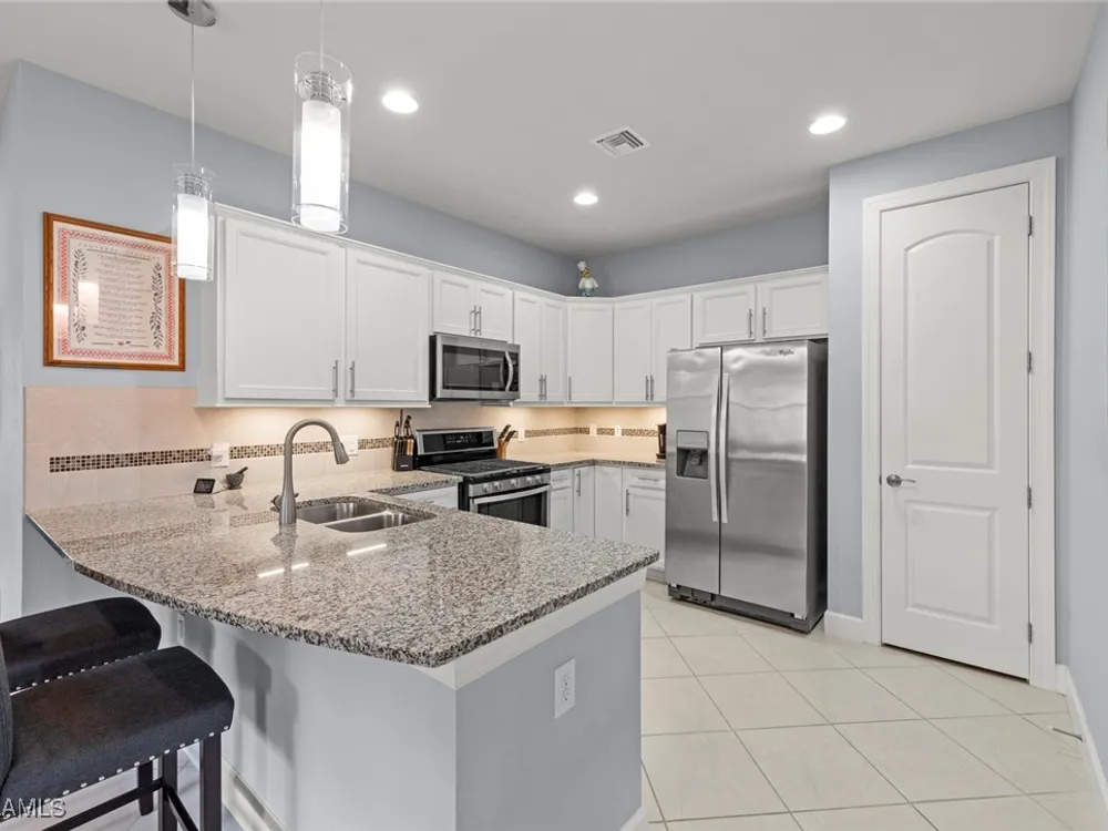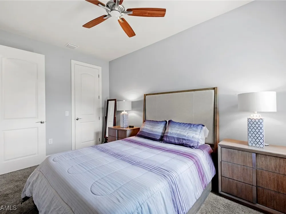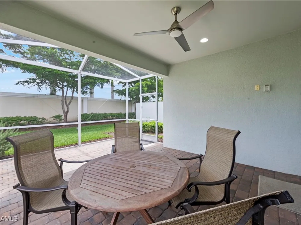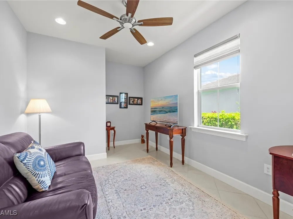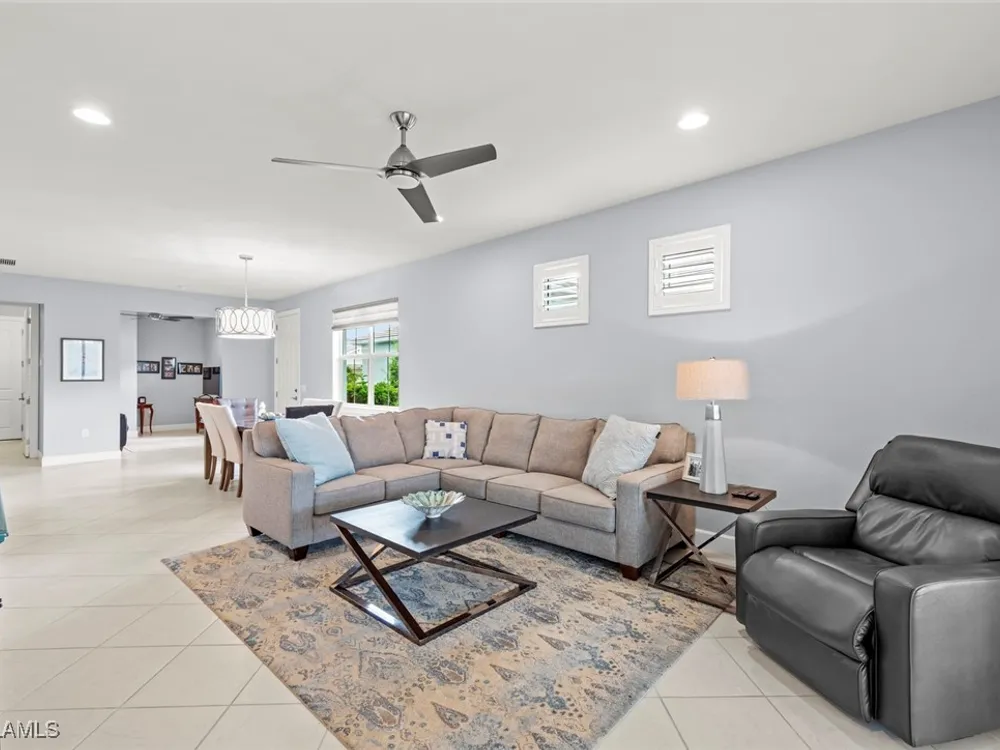 Welcome to Tidewater, where this attached villa by Pulte is located in an active Del Webb 55+ community, in the heart of Estero. Built in 2017, this home has been meticulously cared for, and offers 2 bedrooms + Den, 2 baths, and a 2-car attached garage. Come inside where this open concept spacious living area offers tile flooring on the diagonal throughout the main living area, den, baths and laundry, and carpet in the bedrooms. The upgraded, light/bright kitchen offers granite countertops, tile backsplash, stainless appliances, a pantry and natural gas for cooking. The split bedroom floor plan provides ideal privacy between the guest room and your spacious master suite. The master en-suite has an oversized walk-in shower, dual sinks, linen closet and large walk-in closet. Outside, the expanded screened lanai, offers a covered area to relax or entertain in the shade, and beyond the covered area, the lanai is expanded to enjoy the warm rays of the sun. Tidewater by Del Webb, is in Estero's premier 55+ community! The award-winning amenity center, offers bocce, Pickleball, tennis, a resort-style pool, a full-time social director and more! This active community offers the perfect location in Estero. Close to RSW Airport, Miromar Outlets, Hertz Arena, I-75... and more. Welcome home!