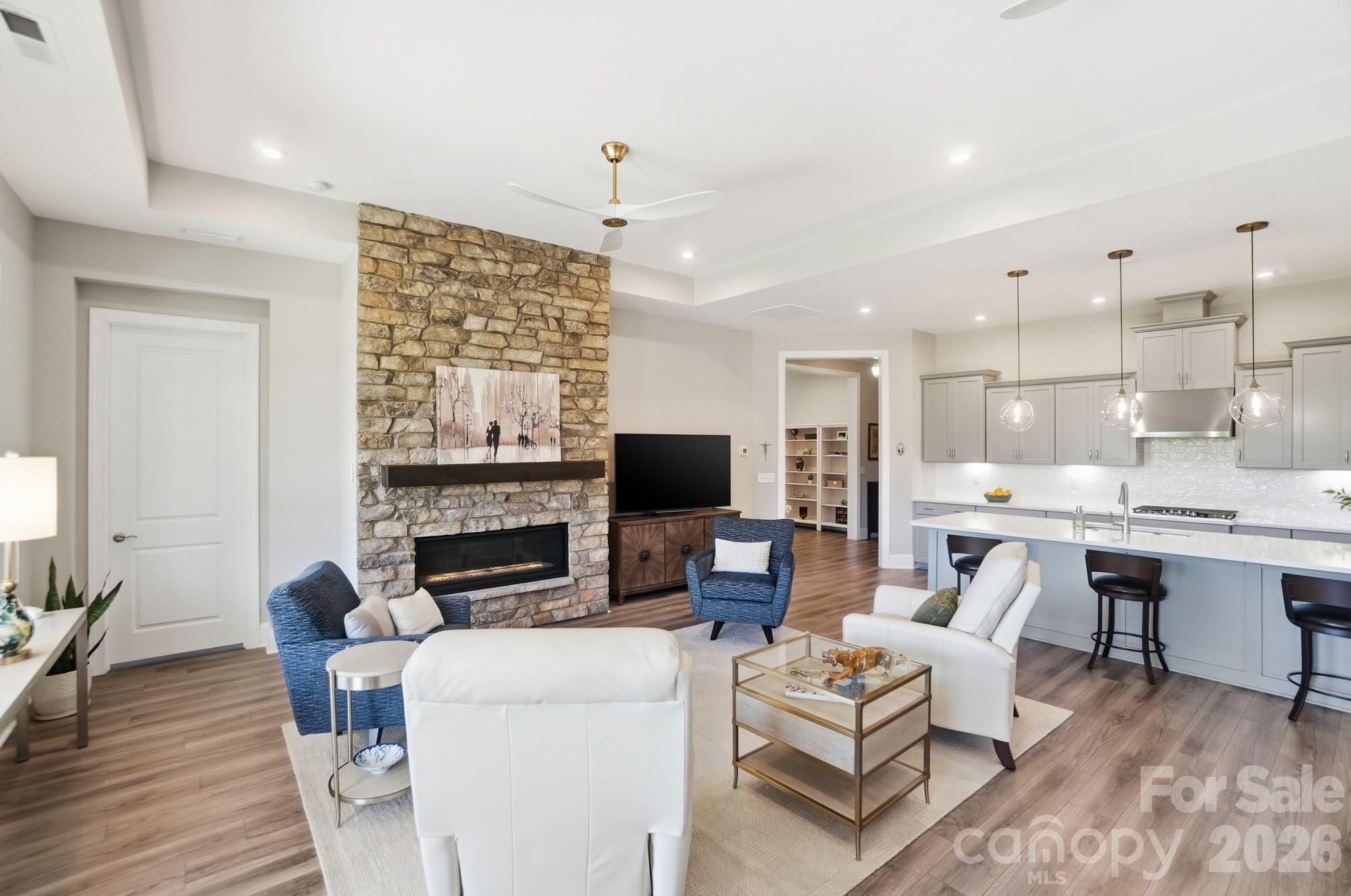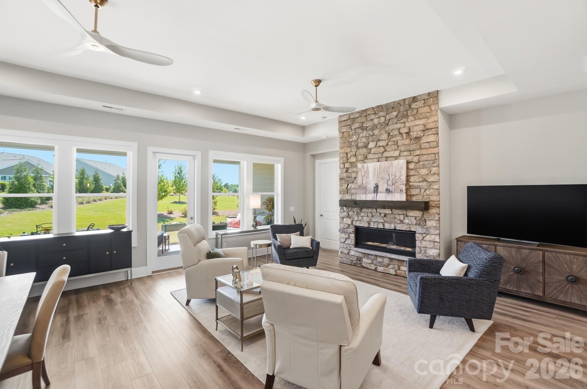 This is the one! Move-in ready and impeccably maintained, this home truly has it all. It shows like a model and is ideally situated on a premium lot with an expansive backyard view of green space—offering more privacy and a sense of openness that originally drew the seller to this homesite. Inside, you’ll find the perfect blend of comfort and luxury. The stunning gourmet kitchen features ample space, high-end finishes, and a custom walk-in pantry—ideal for both everyday living and entertaining. It seamlessly opens to a spacious dining area and inviting great room highlighted by a sleek linear stone fireplace. Abundant windows fill the home with natural light, creating a bright and airy atmosphere throughout. The seller has enhanced the space with automatic motorized shades in the great room and cellular shades throughout the home for added comfort and privacy. A bright, spacious primary suite offers a relaxing retreat, complete with a beautifully designed bath and large custom walk-in closet. A versatile flex space on the main level is perfect for a home office or hobby room. Upstairs, a bonus room/bedroom with new carpet provides additional space for guests or a private retreat. The garage includes a 4-foot extension, offering valuable additional storage. Step outside to enjoy the large covered porch—perfect for relaxing or effortless indoor-outdoor entertaining. Located in the highly sought-after gated, 55+ community of Cresswind at Wesley Chapel, residents enjoy exceptional amenities including a beautiful clubhouse, fitness center with state-of-the-art equipment, art room, kitchen, dog park, tennis and pickleball courts, resort-style pool, and thoughtfully designed spaces for social events, clubs, concerts, and holiday gatherings. All this including, lawn maintenance, high speed internet, alarm monitoring and trash removal. All of this just minutes from charming downtown Waxhaw and the shops, dining, and conveniences of Wesley Chapel. Welcome home!