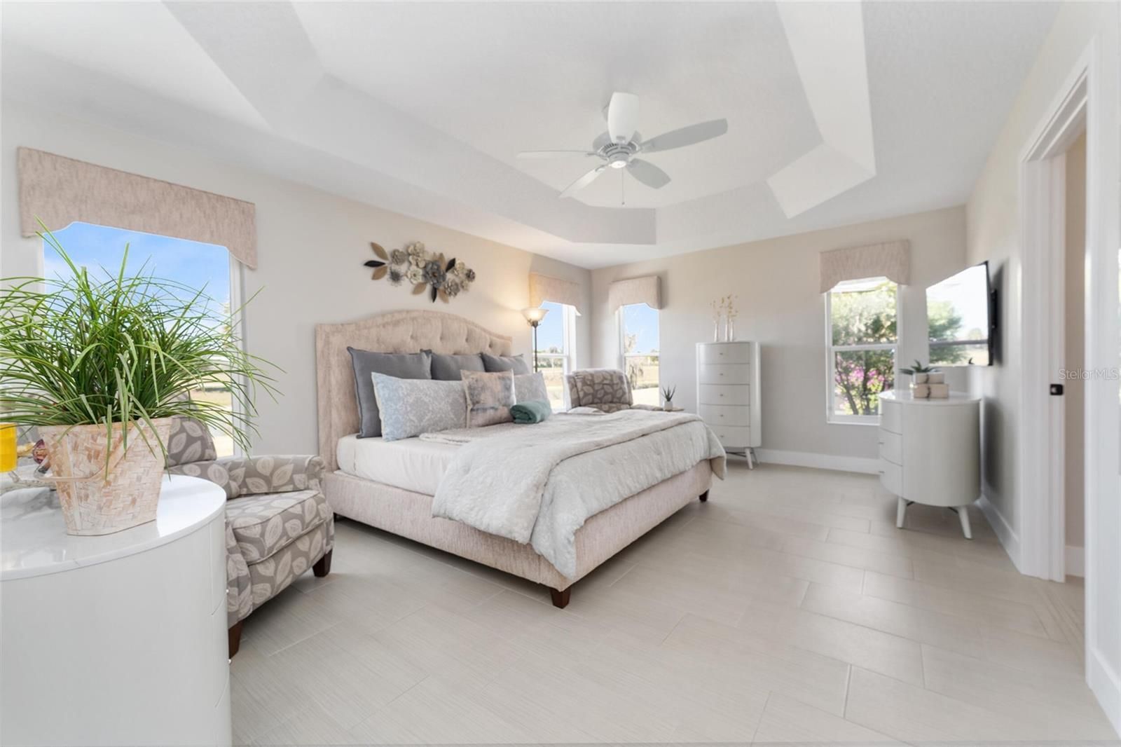 This beautiful Iris Designer home is in pristine condition with 3 bedrooms and 2 bathrooms. It sits on a spectacular view lot bordering a beautiful park on one side and a backyard water view adding unmatched privacy. This home boasts an open floor plan with a large spacious kitchen and expansive, private primary bedroom with a large custom walk-in closet. The guest bathroom is located conveniently near two roomy guest bedrooms and the living room area. This home has tile flooring throughout with no carpeting. It’s professionally landscaped and includes a finished painted garage and lanai floor plus a painted driveway. The property also has room to add a large pool. This stunning home is in The Village of Linden, which is minutes away by golf cart to Eastport, Sawgrass Marketplace, Everglade Recreation Center, Riverbend Recreation, and multiple Executive and Championship golf courses. It is also located minutes away from Magnolia Plaza. Talk about location!