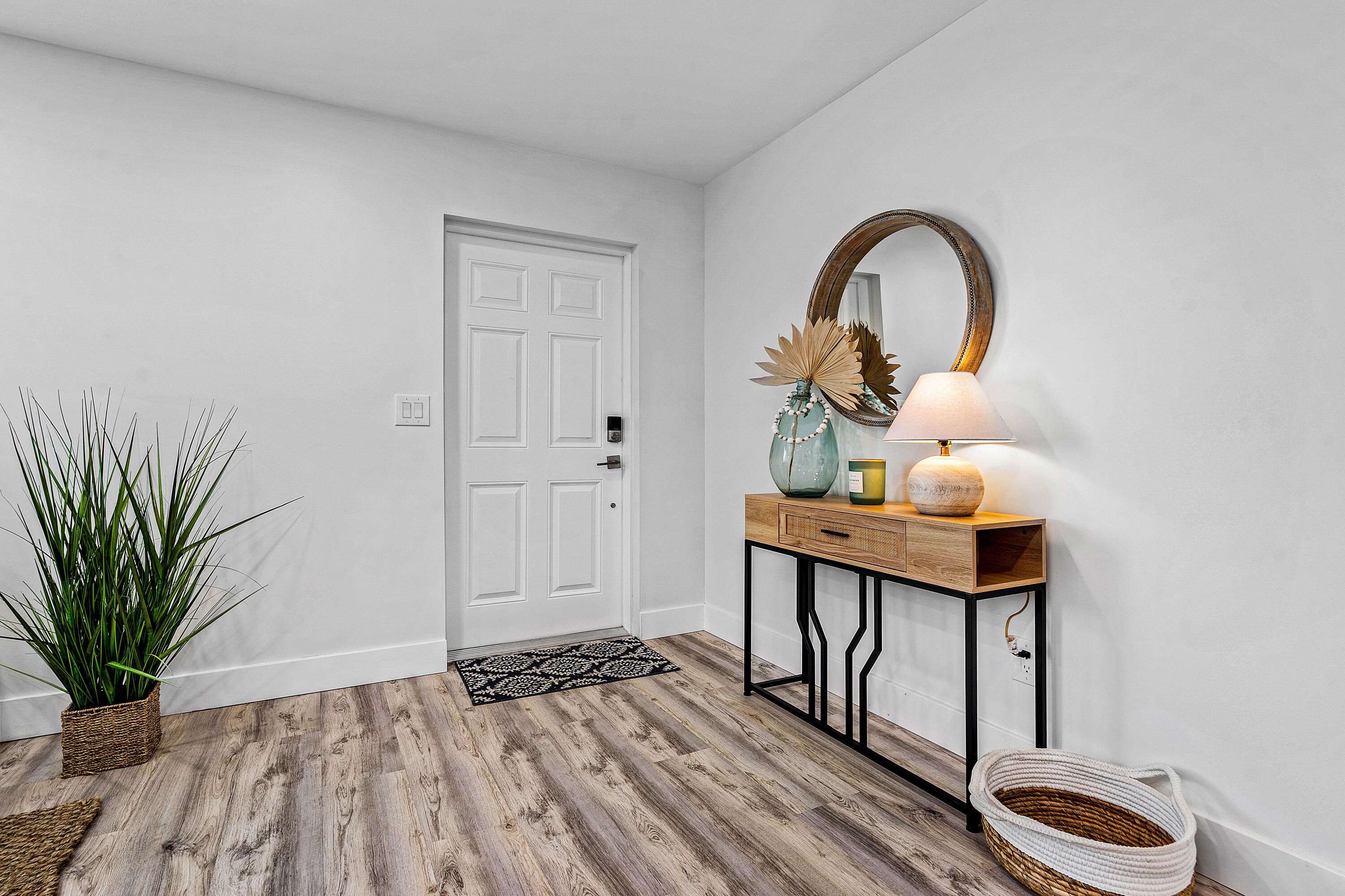 Totally and professionally refurbished. Move in ready. 3 bedrooms and 2.5 baths. Many high end materials used. High quality flooring, cabinets and appliances. New A/C with halo air purification system, tankless water heater, new HVAC ducting, new lighting and electrical panel. Impact windows and doors This has to be seen to be appreciated. A third bedroom and 1/2 bath were added, and totally redesigned floor plan makes this a true open concept home.
