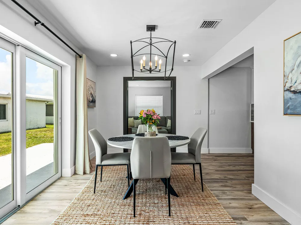 Leisureville Reimagined - a Stunning full renovationFully rebuilt 3BR/2.5BA + family room in Leisureville--more than a remodel, this is a ground-up renovation. New A/C with air purification system, all new ductwork, drywall, high-end laminate flooring. Added 3rd bedroom and half bath. Family room added as well. Modern kitchen with upscale cabinetry, convection/air-fryer oven, and premium appliances. Impact windows and doors, tankless water heater, smooth ceilings, woodgrain tile in baths. Freshly painted inside/out and new landscaping. Move-in ready and fully furnished--must be seen in person to fully appreciate the quality and attention to detail.