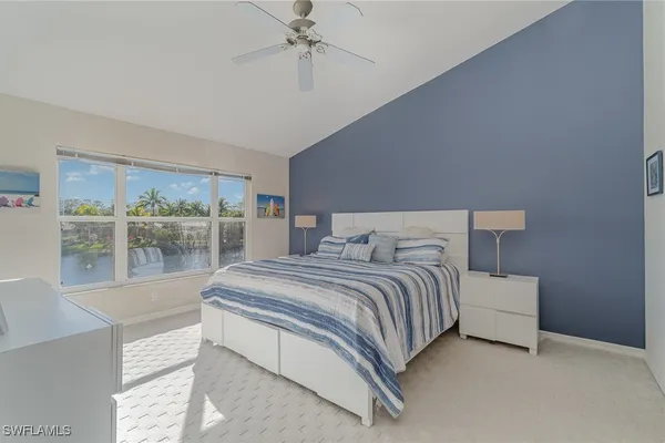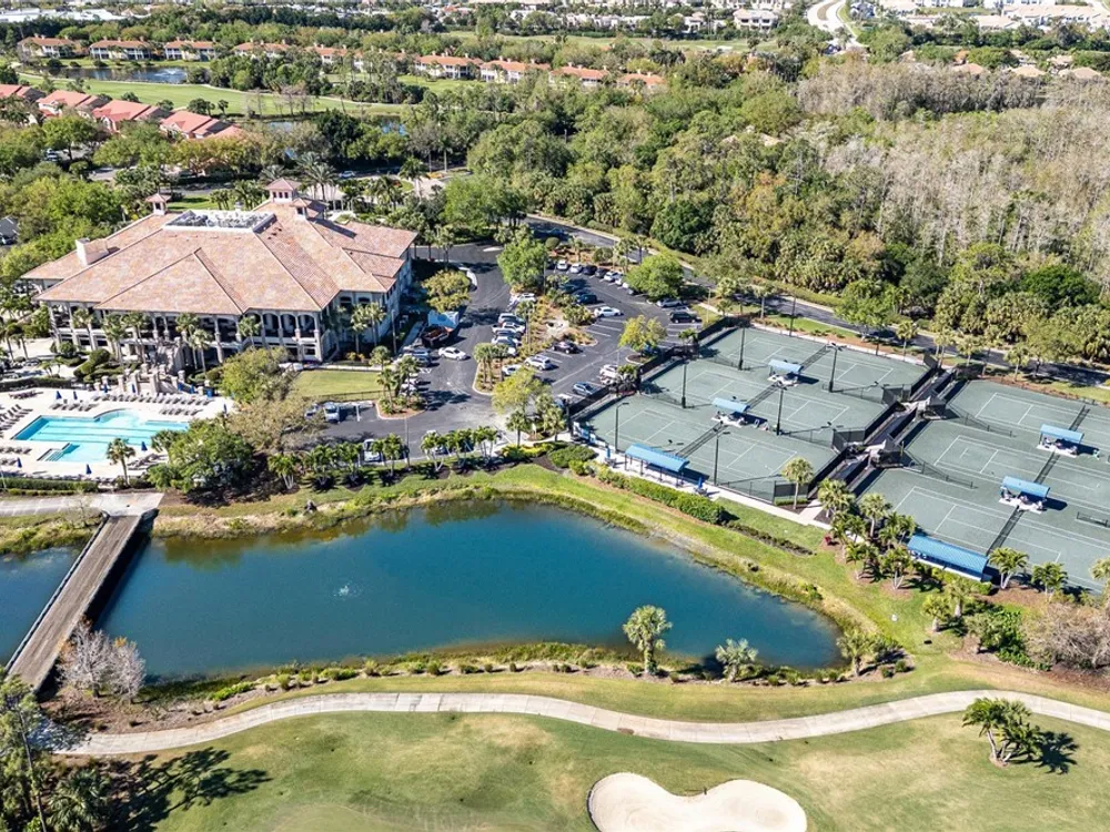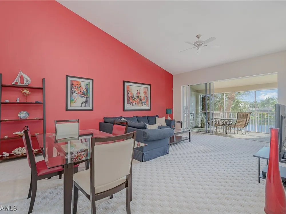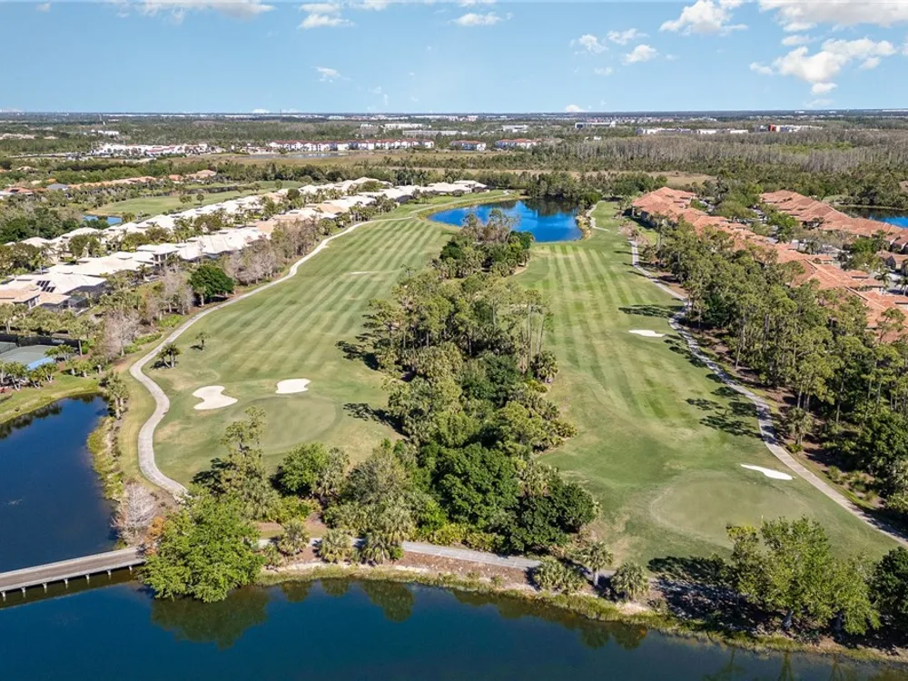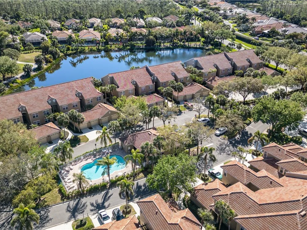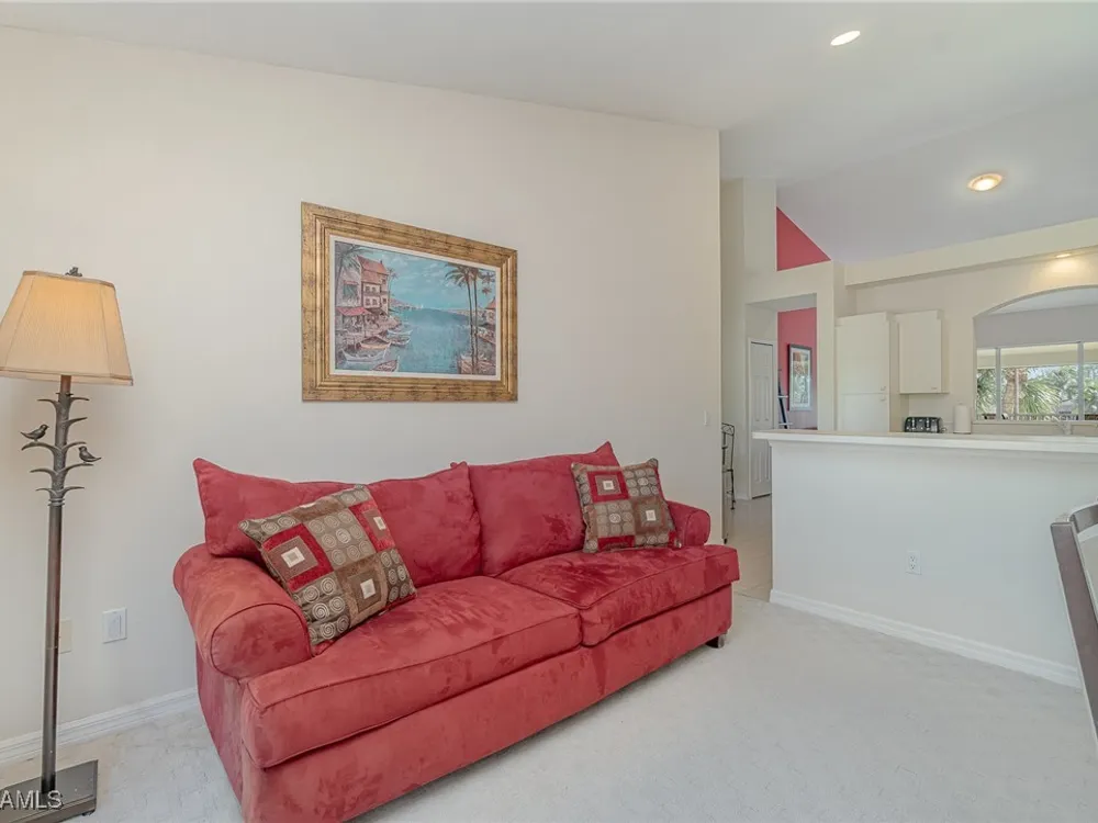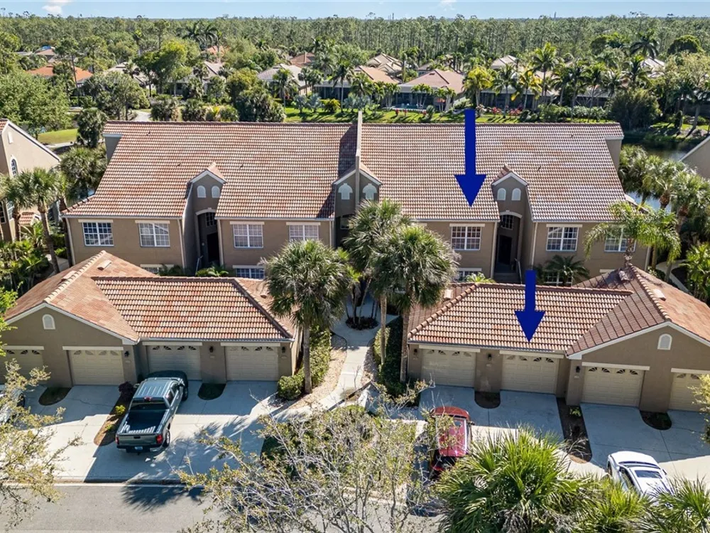 Welcome to this beautifully maintained home in the highly sought-after Sabal Palm neighborhood of Grandezza. Set within a gated golf community known for its stunning 53,000-square-foot clubhouse, this second-floor residence offers a tranquil and elevated lifestyle in the heart of Estero. This spacious home features 2 bedrooms, 2 bathrooms, and a versatile open den—all within 1,473 square feet of thoughtfully designed living space. High ceilings and an open-concept layout create an airy, inviting atmosphere, while the den offers flexibility as a home office, reading area, or additional TV room. Offered turnkey furnished, this property allows for a seamless move-in experience. The large, screened lanai provides peaceful, eastern-facing views of the lake and is accessible from both the great room and the primary bedroom, making it a perfect spot to unwind or entertain. Additional highlights include a detached garage for convenient parking and extra storage. Ideally located just minutes from Miromar Outlets, Hertz Arena, Publix, Florida Gulf Coast University, Gulf Coast Town Center, Coconut Point Mall and Southwest Florida International Airport, Grandezza places you close to top-tier shopping, dining, and beautiful Gulf Coast beaches.