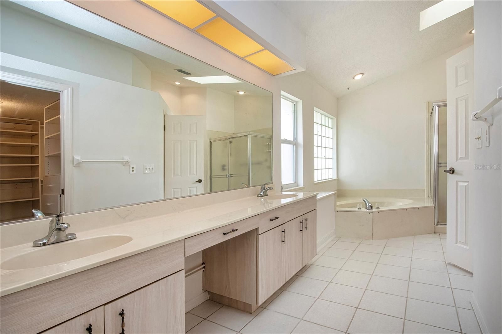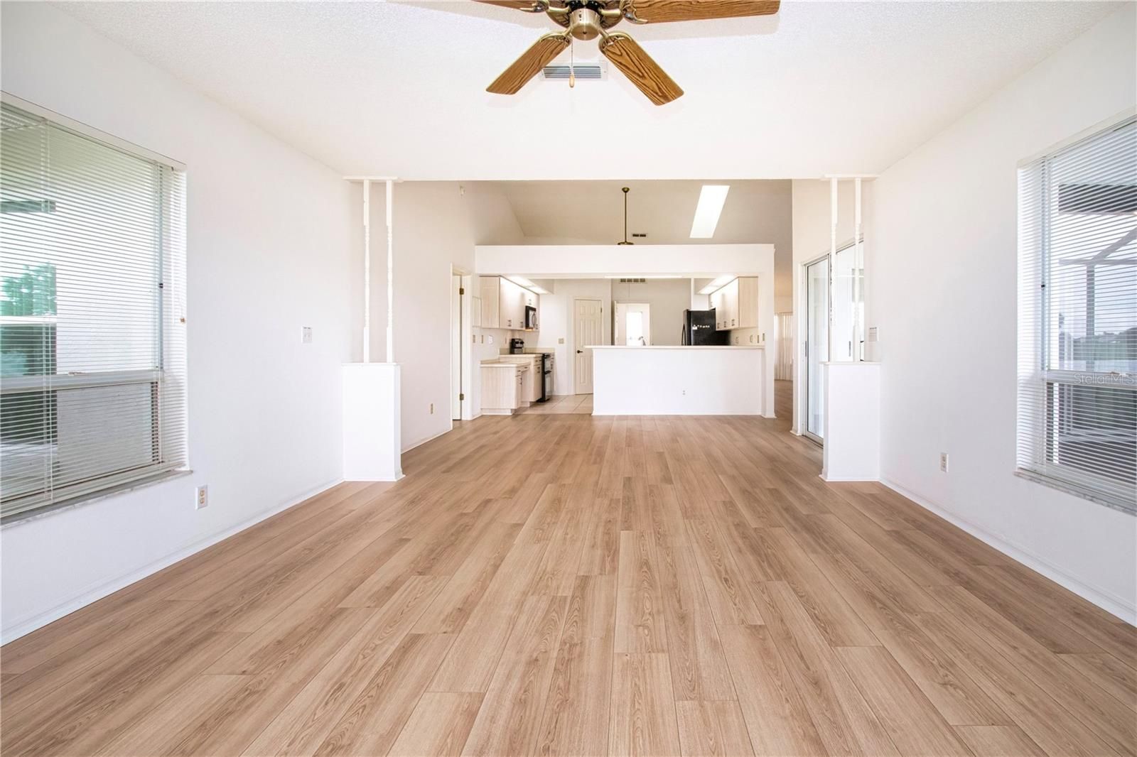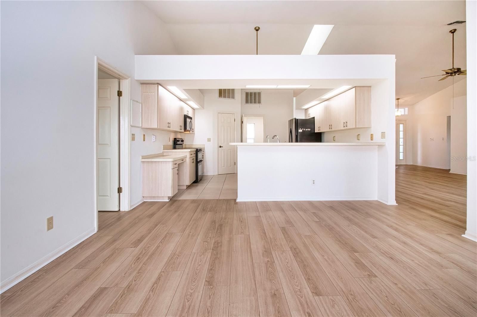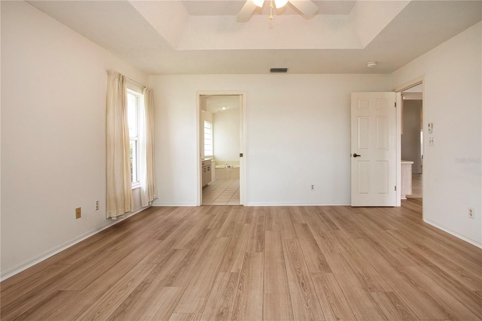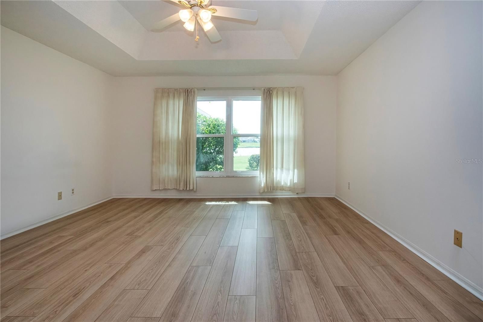 - Ceiling Fan(s), High Ceilings, Kitchen/Family Room Combo, Main Level Primary, Split Bedrooms, Tray Ceiling(s), Walk-In Closet(s)