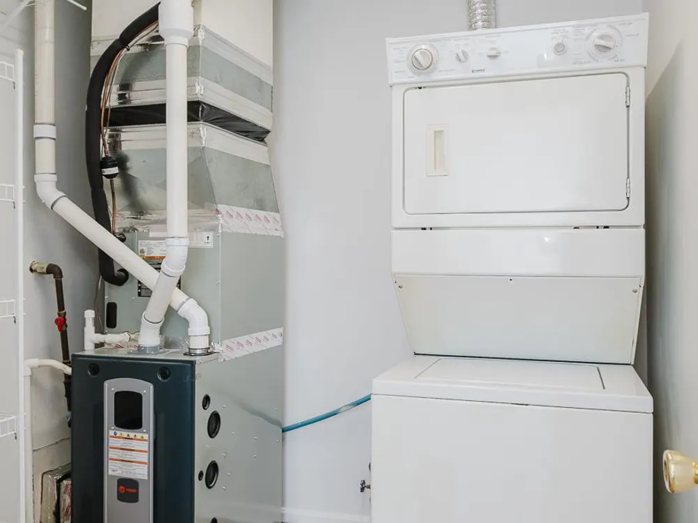 - Built-In Microwave, Dishwasher, Disposal, Oven/Range - Electric, Refrigerator, Washer/Dryer Stacked, Dryer - Front Loading, Dryer - Electric, Washer, Water Heater