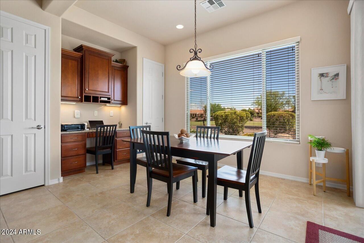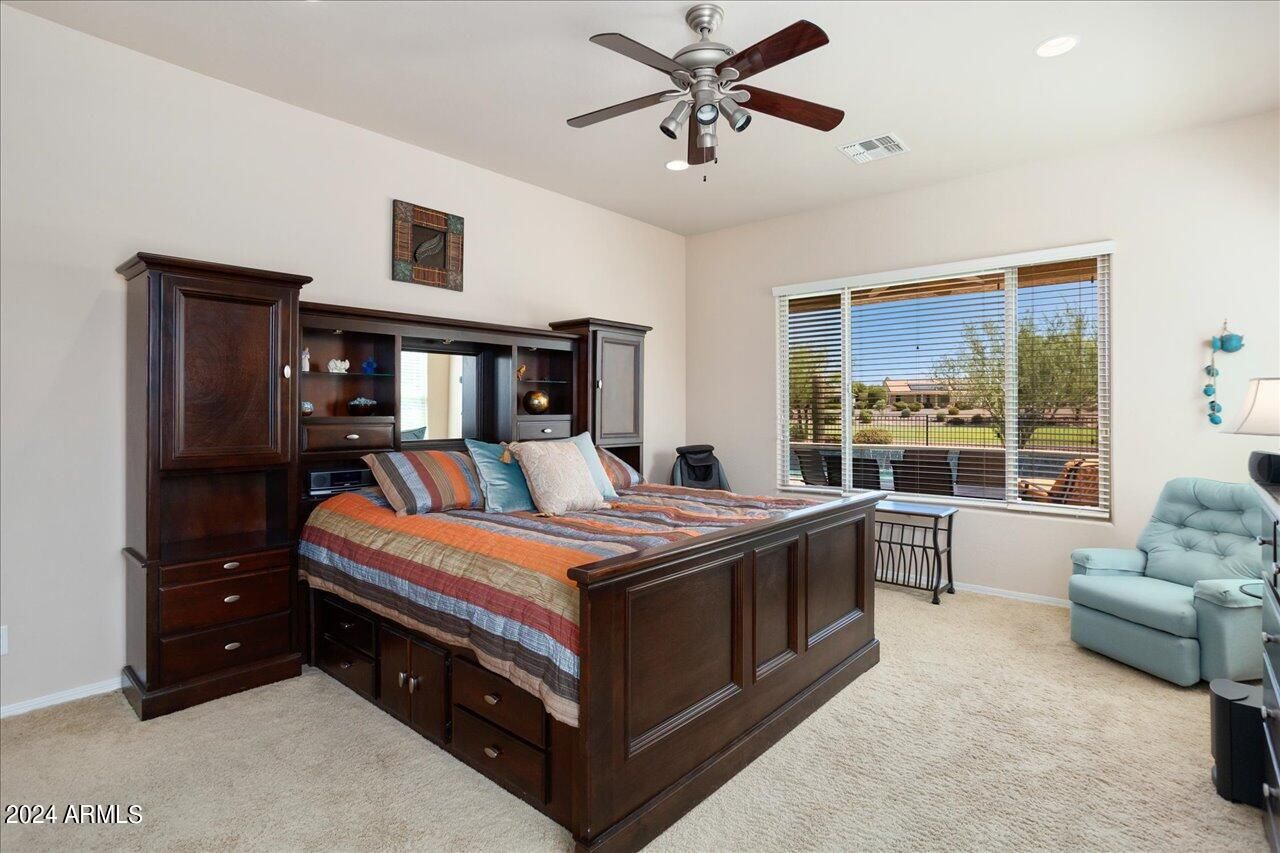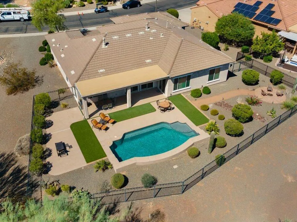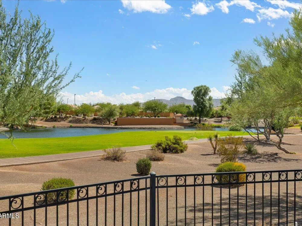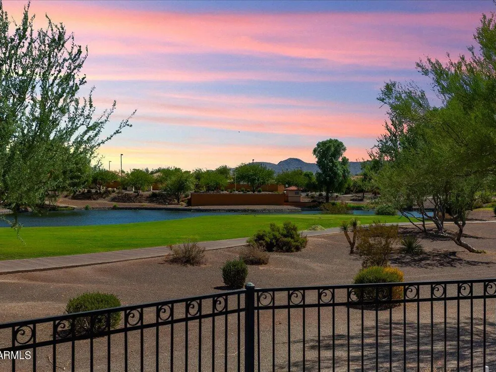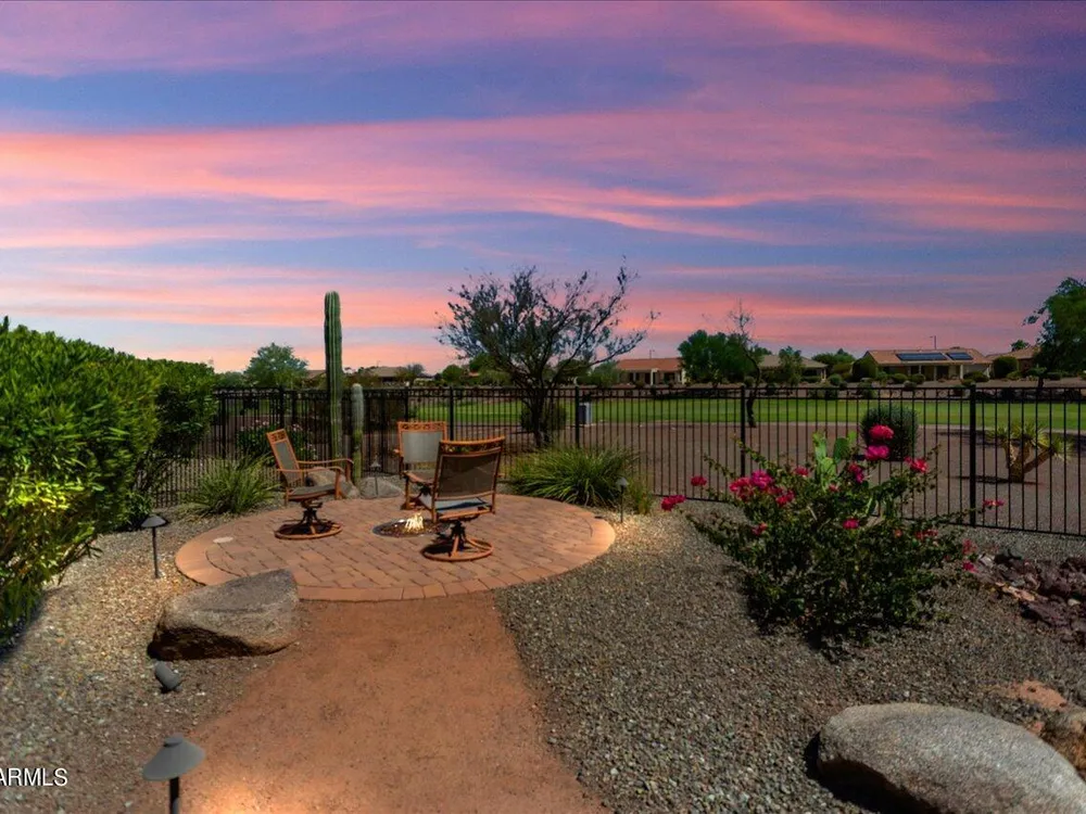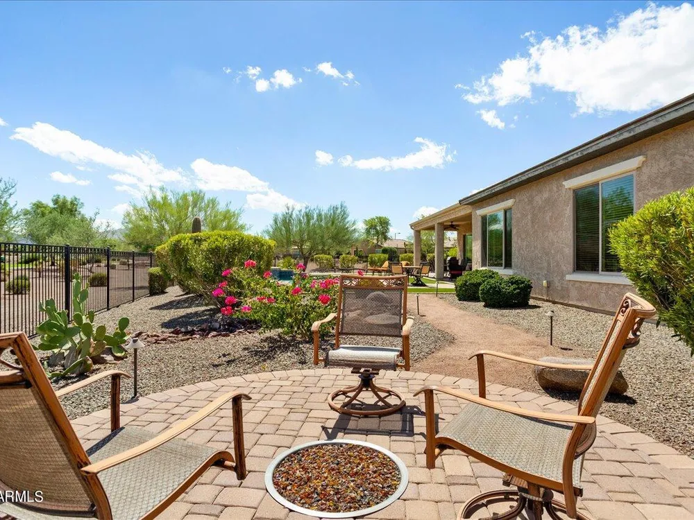 This is a very unique property in Sun City Festival, a 55+ active adult community with incomparable amenities! This 3-bed, 2.5 bath home features a formal dining area and a billiards room. AND the list price includes ALL furnishings. The best part is the east-facing backyard, nestled against the 5th hole on the Vista course, with a lake, fountain and mountain views! This oasis-like setting includes a pool with a heater and cooler and in-ground firepit, all perfect for entertaining. The spacious kitchen includes SS appliances and a gas cooktop. The master suite features dual vanities, shower and tub. The full-size 3-car garage includes built-in cabinets. Other special features include a Bose sound system, Brinks security, in-house vac and a new 2023 AC unit. This home is a MUST see!