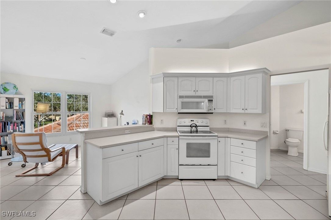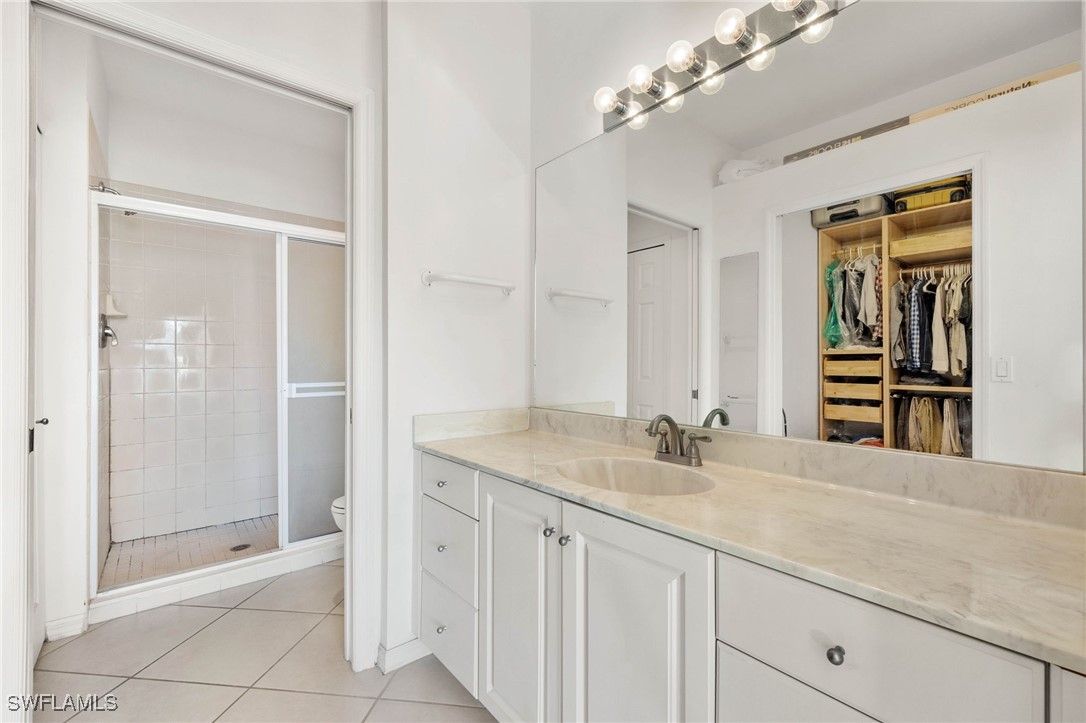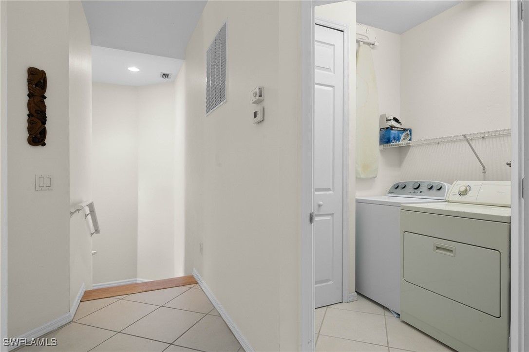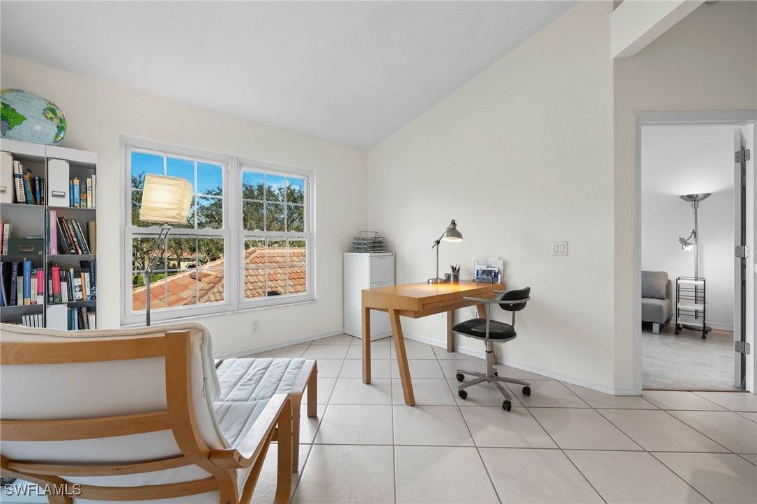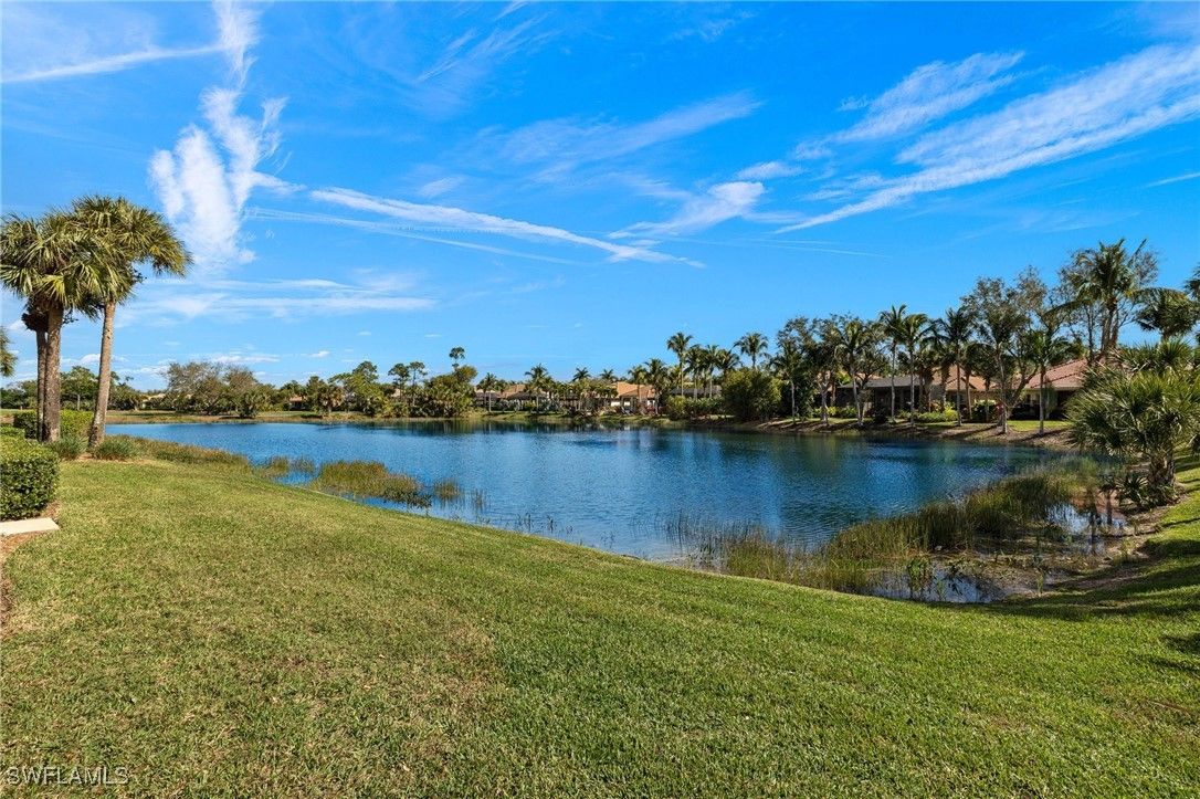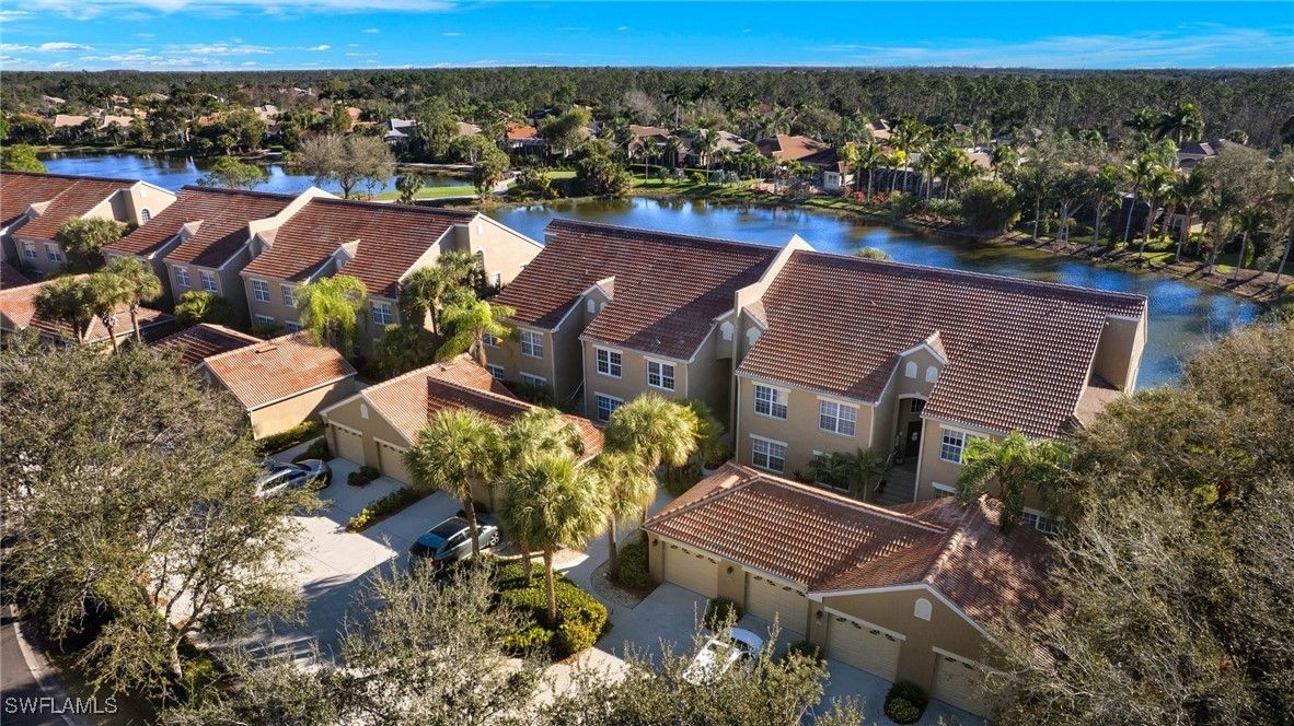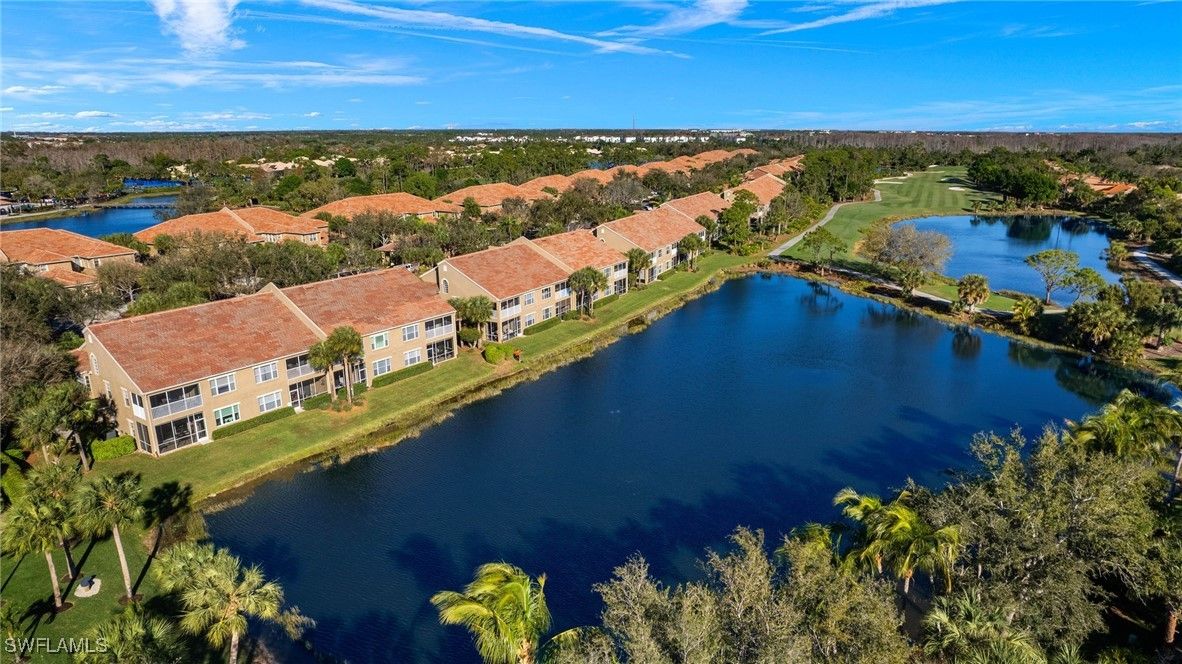 Look no further; this is the lowest-priced condo in Grandezza, a GATED GOLF COURSE community with a LAKE view. This condo features IMPACT hurricane-rated WINDOWS, AC is 2021, and WATER HEATER 2022. This unit also features a 1 CAR Detached GARAGE. As you climb the stairs, you have a large, great room with high cathedral ceilings and plenty of light. The kitchen is open to the great room with plenty of cabinets and natural light if you love to be in the kitchen. The den is adjoining to allow you also to enjoy the sunshine. The master bedroom is located separately from the guest bedroom to give you extra privacy. You have a large window that allows you to look out over the lake. The master bathroom has dual sinks with a large walk-in shower and a walk-in closet for storage. You have a lovely covered lanai to drink coffee and look out onto the lake in the great room. You have a social membership that allows you to enjoy the restaurants, bar, and amenities that come with the community and the 53,000 sq ft clubhouse that has been renovated. You also use the fitness center, resort-style pool & spa, and an additional pool nearby the condo. This community has many great amenities, including being close to I-75, shopping at Miromar outlets, GulfCoast Town Center, Coconut Point Mall, Hertz arena for events and hockey, and near the airport.