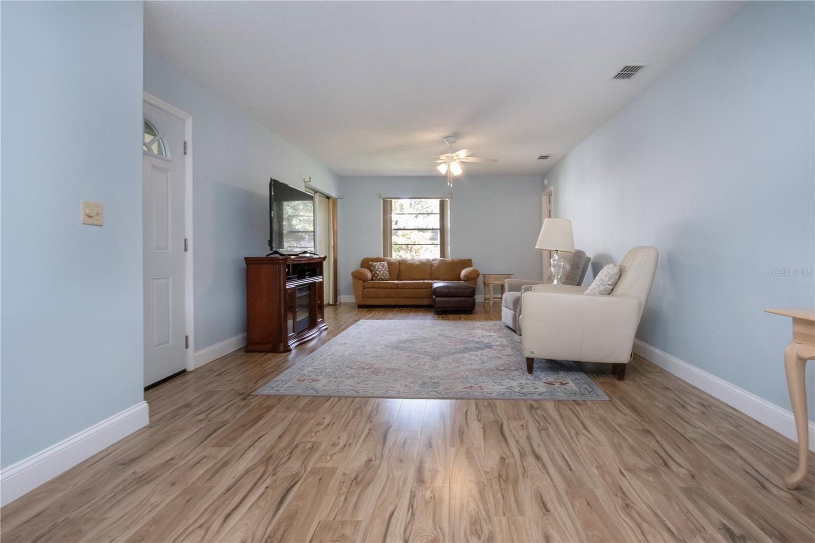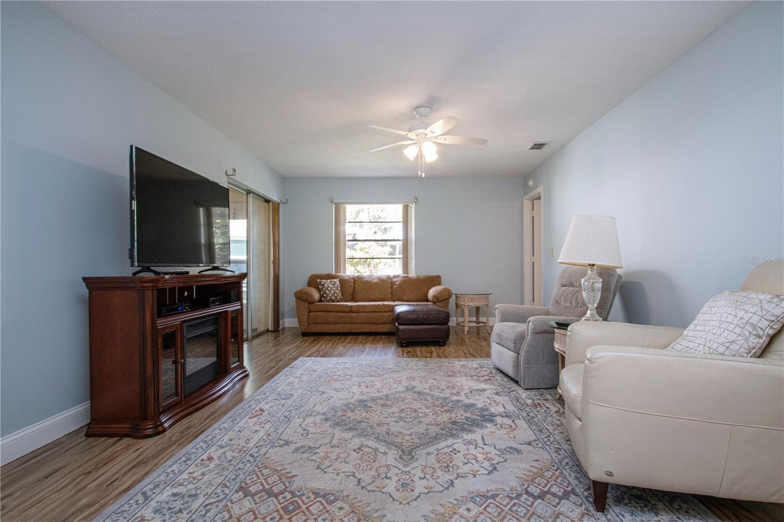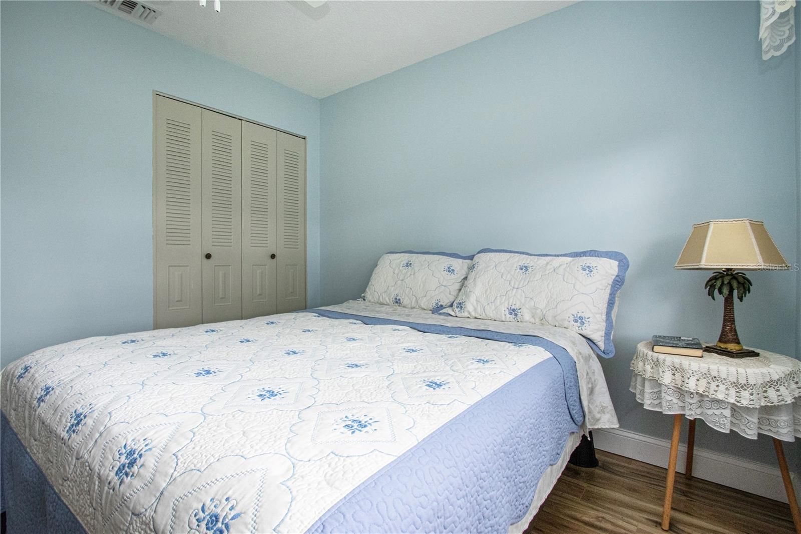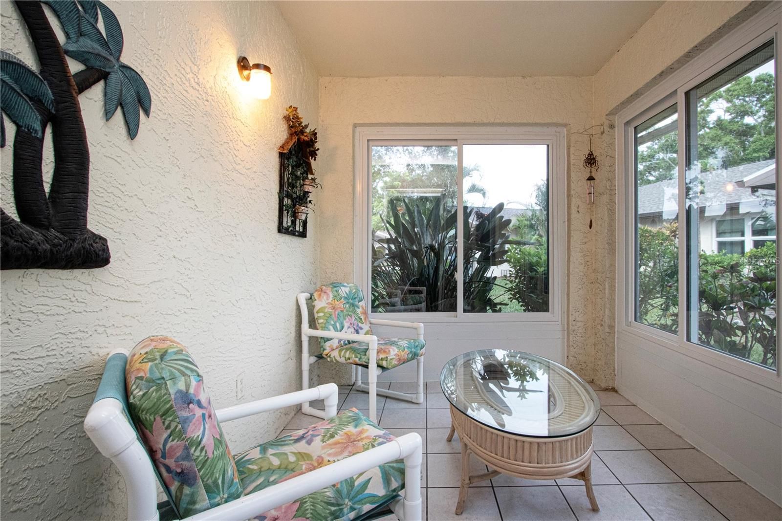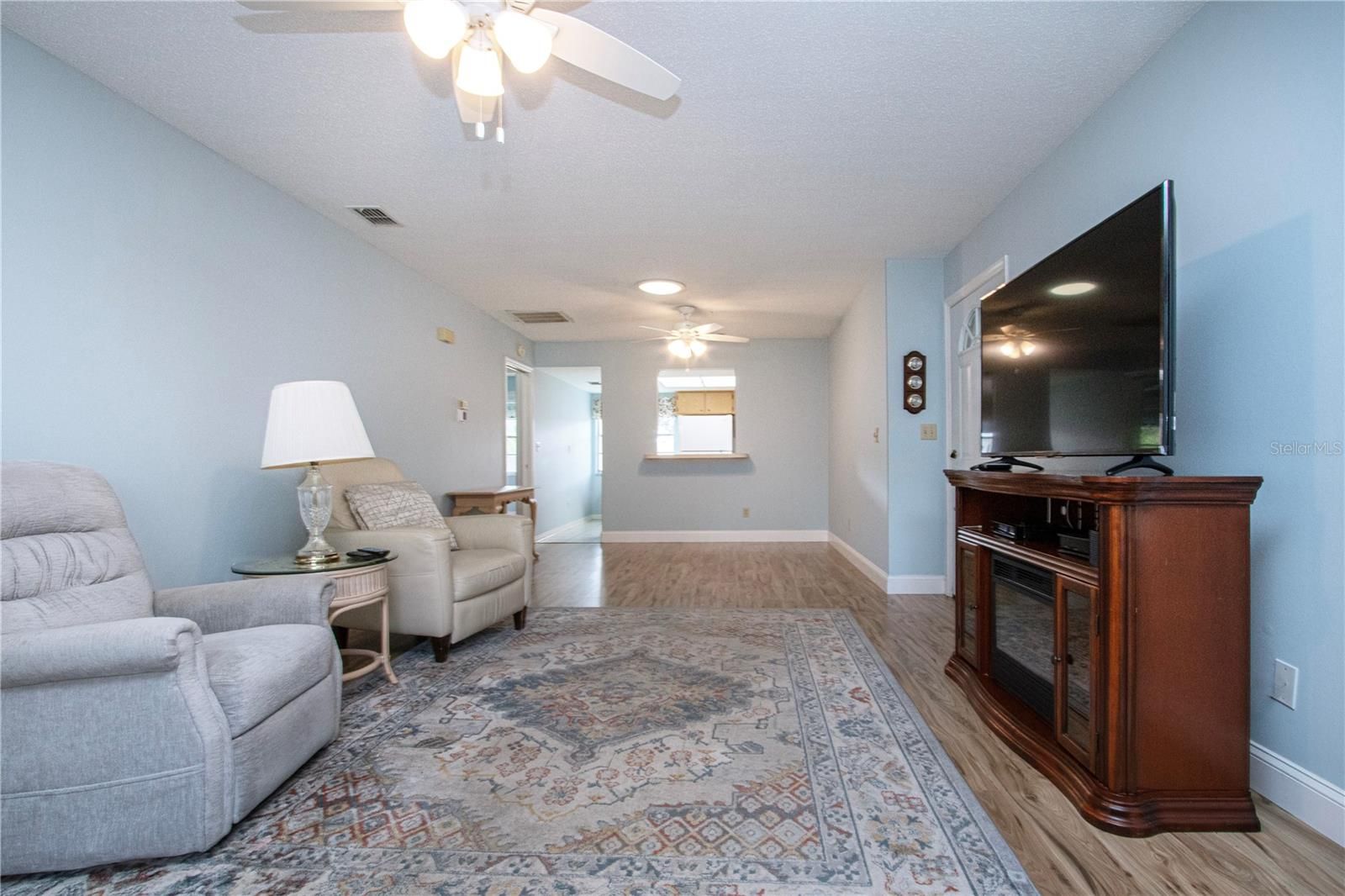 Move into this lovely 2 bedroom, 2 bath home and enjoy the peace and quiet it offers. Located in the heart of Kings Point premier retirement community in a quiet neighborhood **** Away from the hustle and bustle of society.**** This home offers spacious rooms to relax and enjoy. There is a covered carport to keep your vehicle out of the Florida sun. When you enter the home, the expansive living room, dining room combo makes the home feel open and light. The kitchen has a pass-through window that opens up to the dining room. Kitchen is bright and roomy, perfect size for effortlessly preparing meals. Split bedroom plan. *BONUS* Pocket door can be closed to give the entire guest area privacy! The primary bedroom has a walk-in closet and ensuite bathroom with a walk-in shower. New Pergo floors throughout the home, tile in the kitchen. No carpet anywhere in the home. There is a nice Florida room in the back of the home with easy open windows to bring in the Florida fresh air on the cool days. On the side of the home is a small golf cart storage room. HVAC was replaced in 2024, water heater replaced in 2016, and an updated electric panel. Partially furnished if the buyer wants it. Kings Point is a private resort style retirement community that offers many amenities - indoor/outdoor pools, fitness center, 2 clubhouses, theater, sports bar and restaurant, a spa to get your hair and nails done or enjoy a massage. There are many sports to participate in and entertainment to enjoy. Clubs for just about anything that interest you. You can get around in Sun City Center with your golf cart, shopping, dining, doctors, and places of worship are plentiful. Short drive to beautiful Florida beaches or to the airport. Come and see why this is a great place to retire and make new friends! ***Association will be pressure washing the exterior once the water restrictions are lifted***