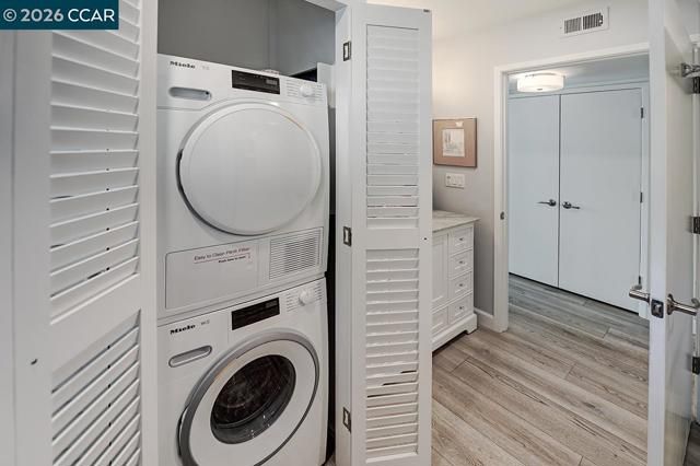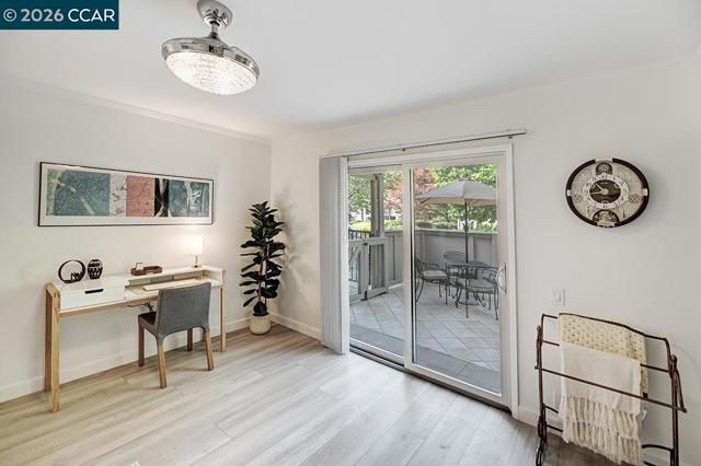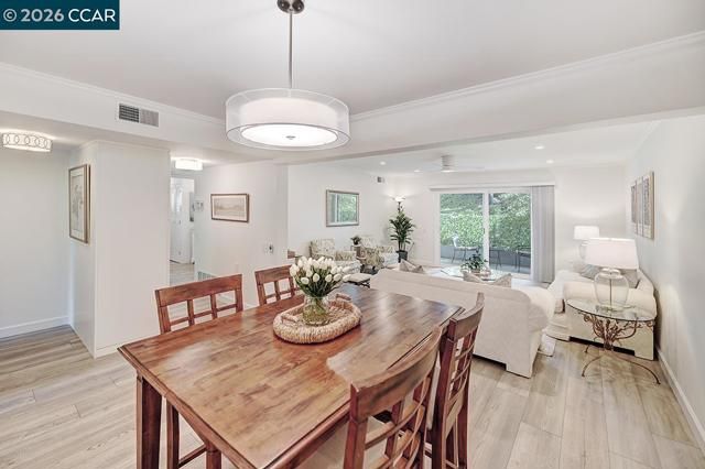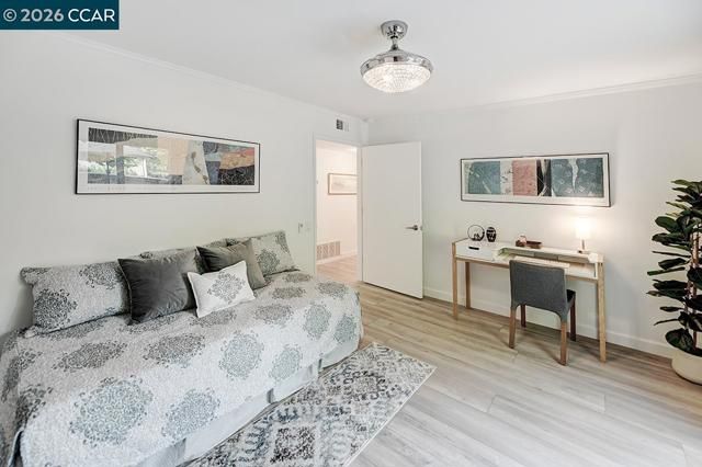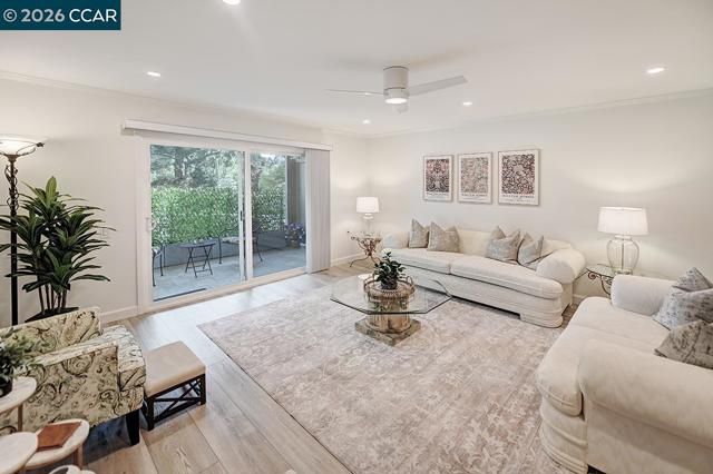 Stunning level-in Carmel model end-unit, beautifully renovated by Gregory R. Brown Custom Builders and ideally situated in a serene, private setting. Enjoy inviting front and rear patios, including a spacious tiled entry patio shaded by a graceful maple tree with direct access to the versatile front bedroom or den. Inside, refined finishes abound—luxury vinyl plank flooring, smooth ceilings, recessed lighting, crown molding, and dual-pane windows with custom treatments. The elegant bath features a designer walk-in tile shower, Bosch washer, ventless dryer, and ample linen storage. Both bedrooms offer custom Elfa closets, designer lighting, and discreet crystal lights with hidden ceiling fans. The chef’s kitchen shines with granite countertops, stainless steel appliances, induction cooktop, and custom cabinetry. Conveniently located near carport parking with extra storage. Just a short stroll to Rossmoor’s community centers, farmers market, and world-class amenities, This rare level access private home with the adjacent grassy courtyard setting makes the perfect ambiance to be your new home located in Rossmoor’s premier active 55+ gated community.