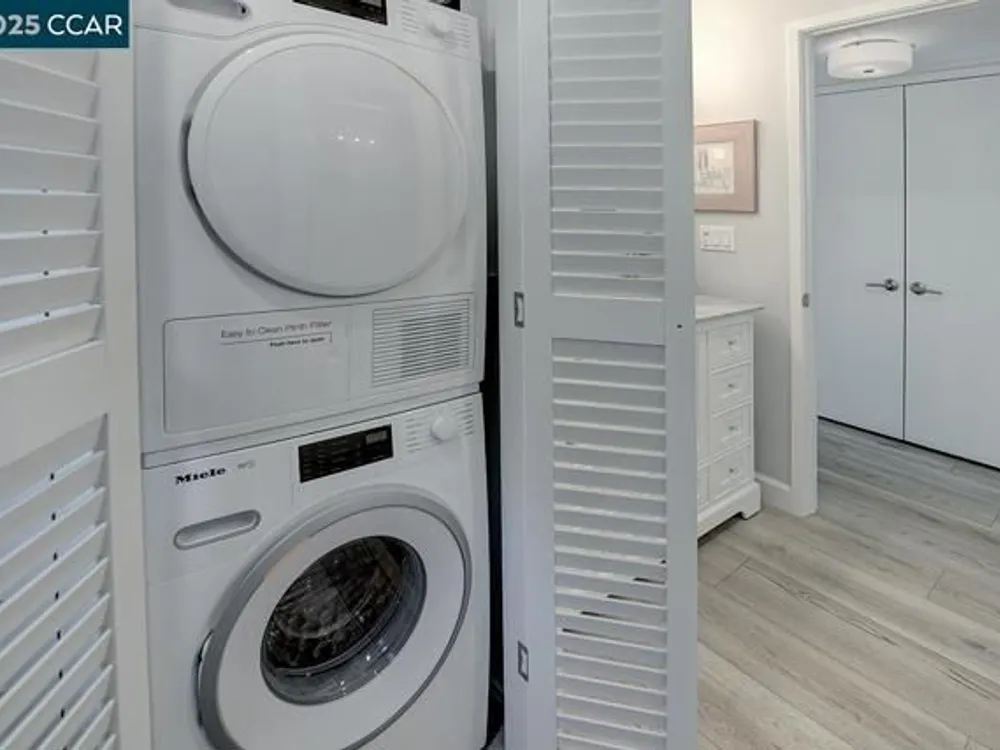 Stunning Level-In (no steps) Full Manor Renovation! Experience luxury living in beautifully remodeled Carmel model end-unit by Gregory R. Brown Custom Builders. Located in a serene setting w/front & rear patios and near Rossmoor’s main community centers/amenities. Front entry opens to a spacious tiled patio w/lovely maple tree and has access from dbl pane slider to front bedroom/den. Inside, enjoy vinyl wood floors, smooth ceilings, recessed lighting, crown moulding and double pane windows w/custom window treatments. Elegant bathroom features custom tiled stall shower, stacked Bosch washer/ventless dryer (w/plumbed drainage), and linen closet. Both bedrooms include full-wall designer closet "Elfa-organizers" and beautiful crystal light fixtures w/hidden ceiling fans. Chef’s kitchen boasts granite countertops, SS appliances includes induction cooktop, side-by-side stainless refrigerator, custom cabinetry, recycle/trash drawer, built in microwave, and dishwasher. Steps to covered carport #4 w/storage closet, this gem is ready to be yours! Home is located in the prestigious 55+ Rossmoor gated community, this home provides access to an array of luxurious amenities and a vibrant social scene, fitness cntr., trails, 5 community centers, game/hobby rms, 200+ clubs & organizations.