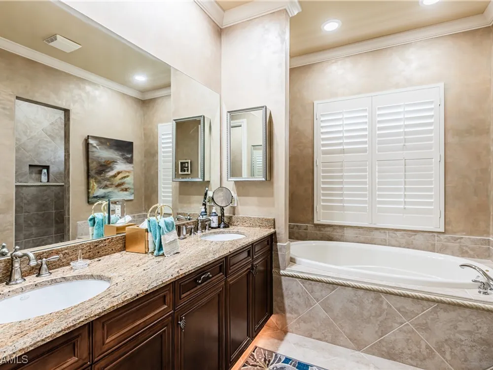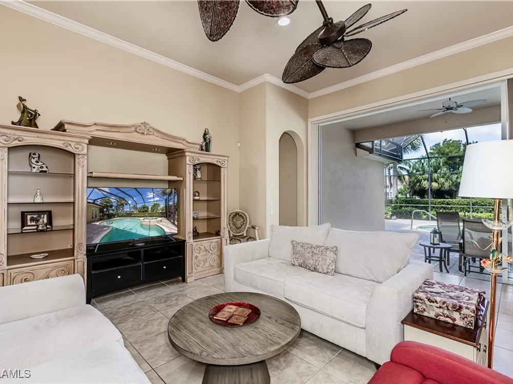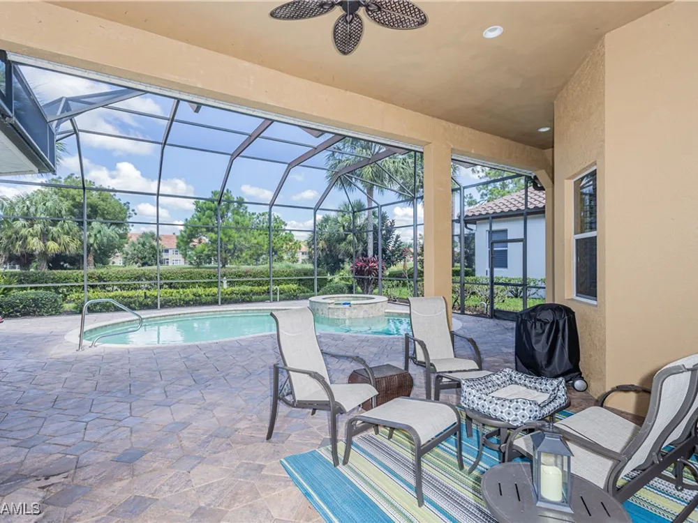 Enjoy golf & pond views from your paver lanai w/pool & spa in the Villa Grande section of Grandezza. This desirable 3 car garage home has the most popular great room "Paloma" floor plan by Empire Builders on the street. Some of the upgrades include plantation shutters, crown molding, Bosch & LG stainless steel appliances, tile laid on the diagonal, a lot of storage areas & more. All within Grandezza, an active year-round social community. The excellent golf course is not mandatory to join. You have outside cabana dining, inside grill room dining, or upstairs formal dining...but life is casual in Grandezza! There are many groups to enhance your lifestyle such as the Girlfriend's Club, Tennis Groups, Golf Groups, Card Groups, you name it! And Grandezza is pure location, location, location! Sporting events & Entertainers have appeared across the street at Hertz Arena. Miromar Outlet Mall is across the street. FGCU is next door. The airport is about 15 minutes away. Grande Oak Shopping Center is next door, and you are a short ride to malls, restaurants, hotels and more to come in booming Estero!
