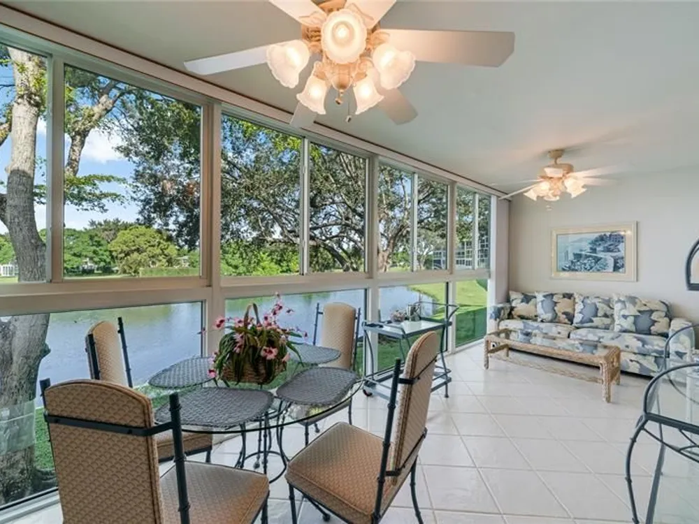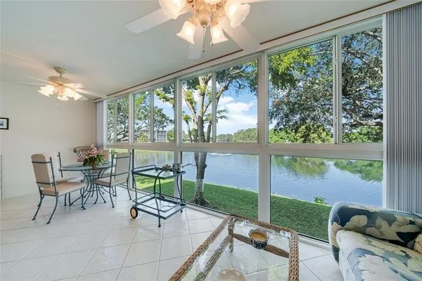 Enjoy serene lake views from this spacious 2-bedroom, 1.5-bath condo, designed for ultimate relaxation in a desirable senior living community. This partially remodeled unit features generously sized rooms with ample closet space and a large enclosed balcony with hurricane-impact windows overlooking the peaceful lake. Additional perks include a private storage unit and convenient washer/dryer facilities located on the same floor. The community offers a vibrant lifestyle with a clubhouse full of activities, perfect for staying active and connecting with neighbors.