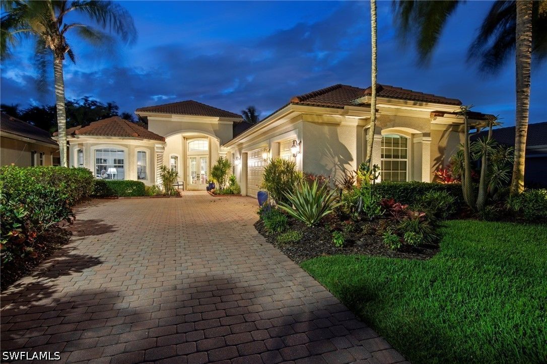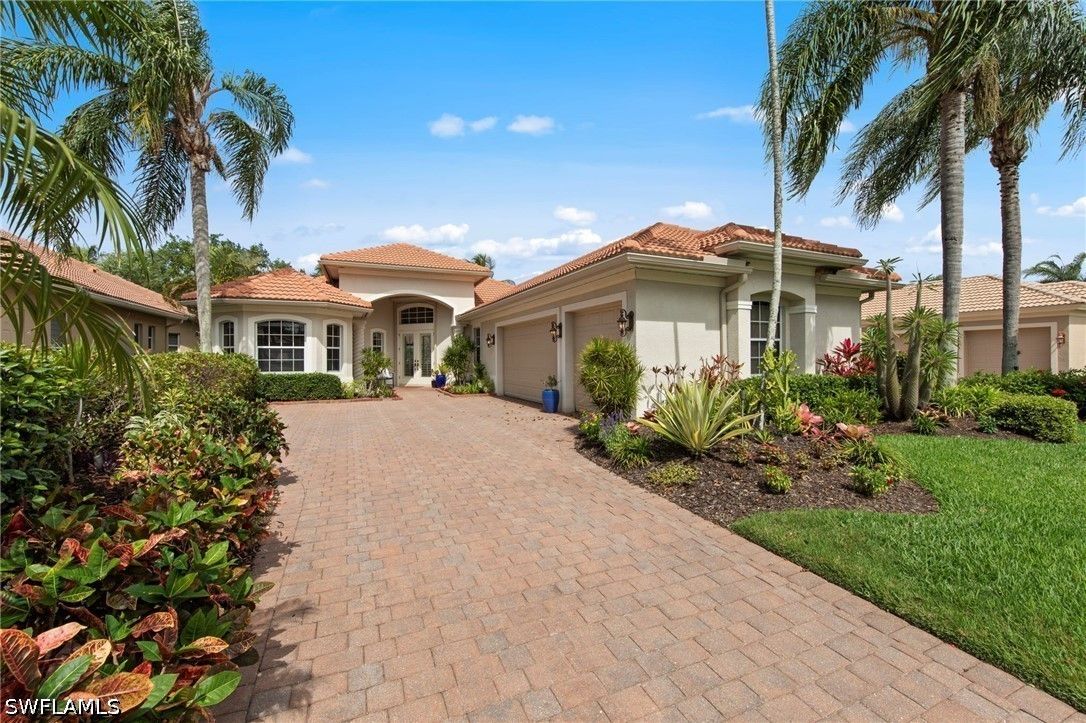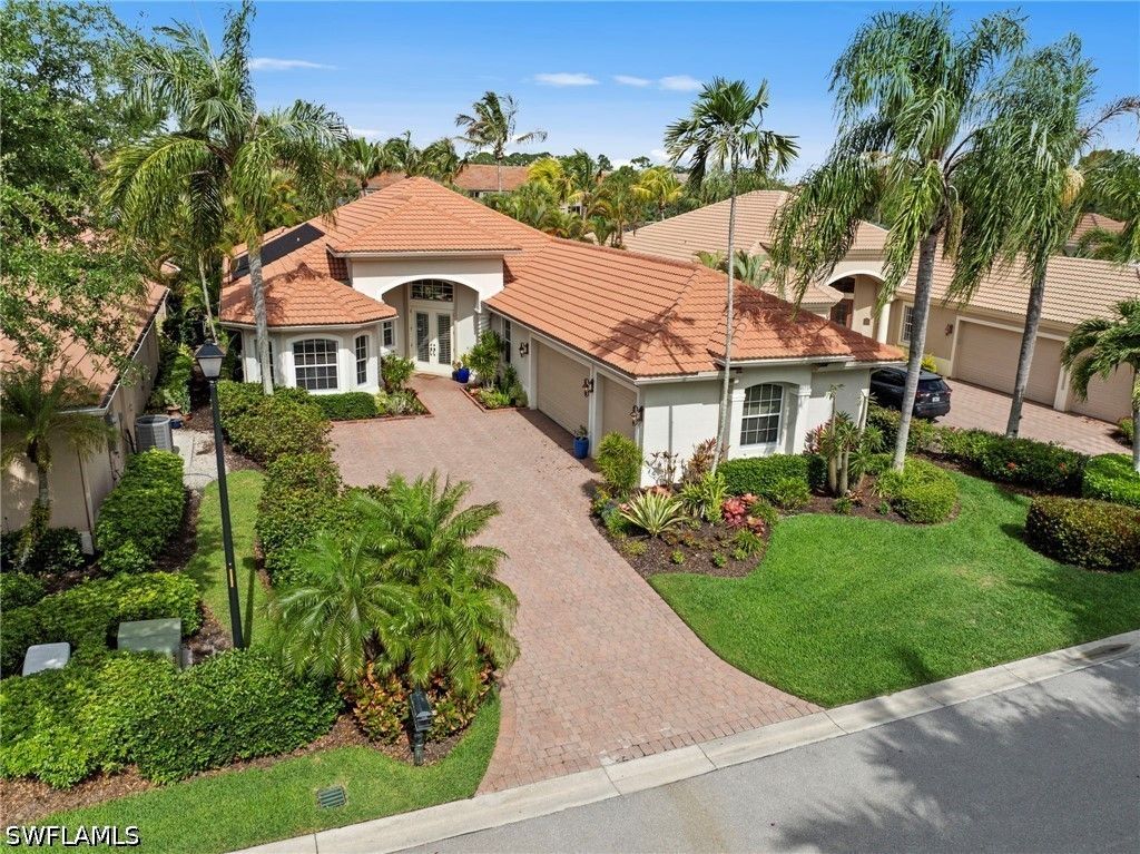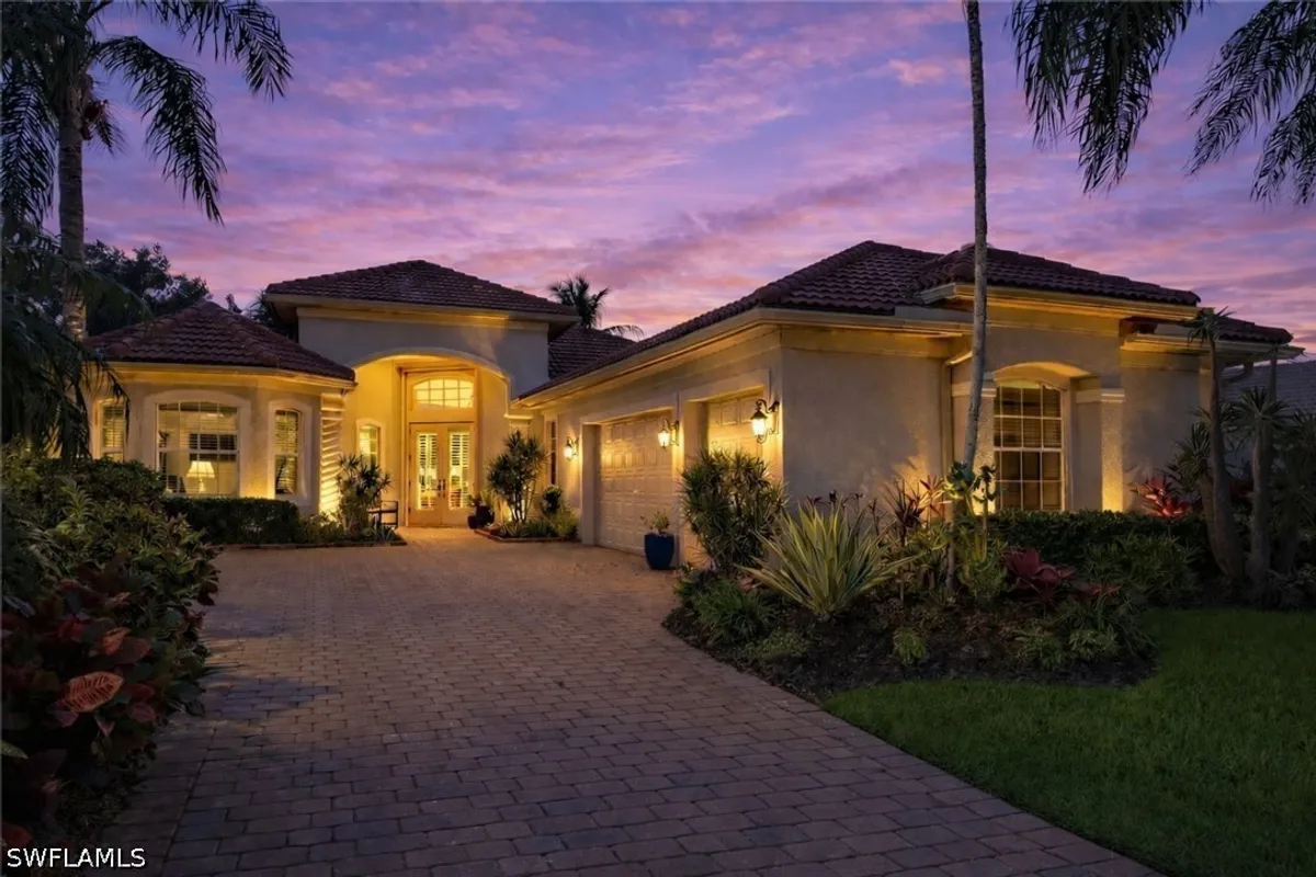 Welcome to 20194 Markward Crossing, nestled within the desirable Villa Grande enclave of Grandezza. This beautifully updated 3 bedroom + den, 3 bath residence offers a serene, low-maintenance lifestyle with picturesque lake and golf course views that capture the essence of Southwest Florida living. With a spacious 3-car garage and the option to be offered turnkey furnished, this home presents an effortless, move-in ready opportunity. A complete kitchen remodel anchors the home, featuring modern finishes, upgraded cabinetry, a brand-new glass top range (2026), new refrigerator (2025), and microwave (2024)—perfectly designed for both everyday living and entertaining. The open, light-filled floor plan flows seamlessly into the main living areas and out to the expansive screened lanai, where a private pool and spa create the ideal setting to relax, entertain, and enjoy tranquil views and stunning sunsets. Thoughtfully maintained and enhanced, the home includes a new roof with added gutters (2020), air-conditioning system (2019), water heater (2019), solar pool heater (2021), and a whole-house water filtration system (2023), along with comprehensive storm protection featuring both manual and electric shutters—providing efficiency, protection, and peace of mind. Residents of Grandezza enjoy access to a private championship golf course, fitness center, tennis, and a resort-style pool with poolside food and beverage service, all complemented by an active social calendar. Ideally located near shopping, dining, Hertz Arena, and Southwest Florida International Airport, this home offers both convenience and a vibrant lifestyle.
