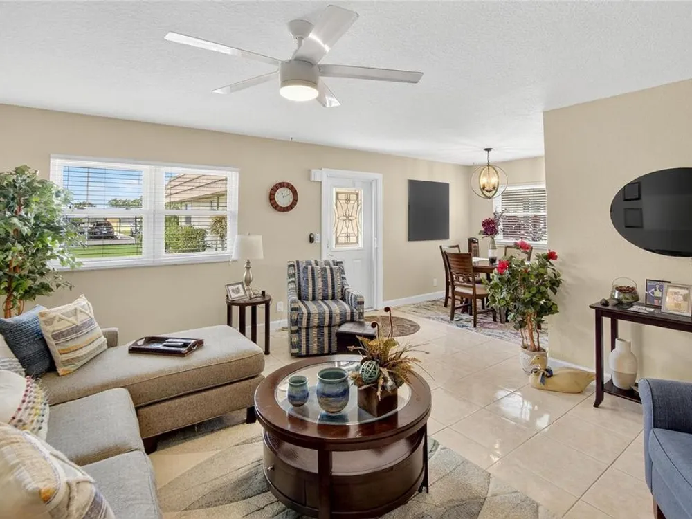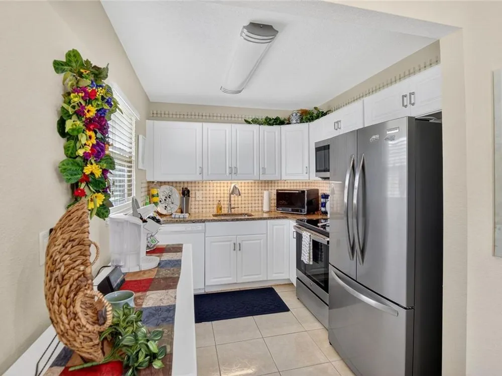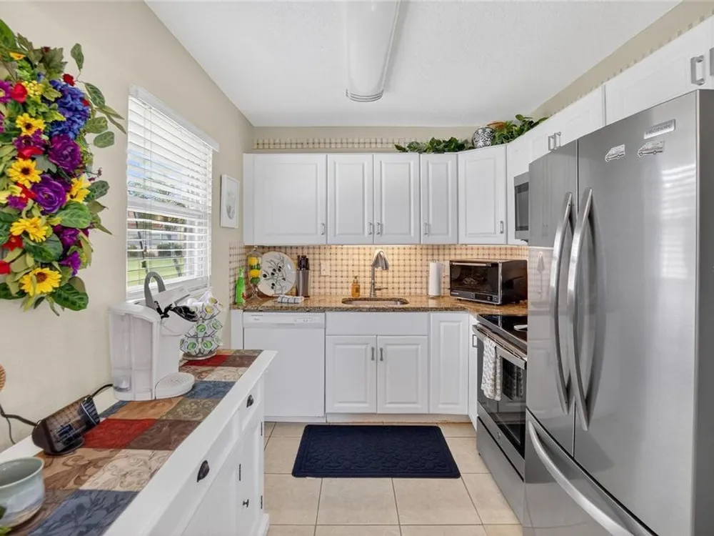 Beautifully updated, move-in ready 2BR/2BA condo in Kings Point’s fabulous 55+ active lifestyle community! This exceptional home blends comfort, style, and functionality, boasting a long list of upgrades that set it apart. The modern kitchen is a true centerpiece with granite countertops, a designer tile backsplash, newer stainless-steel appliances, abundant cabinetry with under-cabinet lighting, and a sleek, contemporary feel. Glossy ceramic tile floors flow throughout, creating an elegant, low-maintenance living space. Both bathrooms have been tastefully renovated with fresh, modern finishes, while custom-crafted closets in both bedrooms provide exceptional storage. Additional highlights include hurricane-impact windows, a striking front door with retractable screen, modern ceiling fans, recessed lighting, stylish window treatments, and resurfaced ceilings. Sliding glass doors lead to an extended Florida room, adding 150 sq ft of versatile living space to the open floor plan. A unique inside utility room includes a full-size washer/dryer and water heater. Outside, lush Florida landscaping and beautifully finished walkways enhance the charm of the standout Bedford C community, which even offers a convenient shared storage area. The Bedford C HOA welcomes emotional support and service animals. Kings Point delivers a true resort lifestyle with golf courses, pools, fitness centers, restaurants, clubs, and endless social activities—all in a secure, gated setting. Condo fees cover high-speed internet, premium cable, building insurance, roof, exterior maintenance, water, sewer, trash, pest control, and landscaping. Plus, low taxes and affordable insurance make it even more appealing. Conveniently located near beaches, Tampa’s cruise port, Disney, shopping, the very best healthcare, and everyday essentials, much of which is accessible by golf cart. Kings Point even has it's own free transportation system. Book your private showing today and see firsthand why this community is ranked among Florida’s best places to live. Centrally located minutes from an assortment of Florida's best beaches, Tampa's convenient cruise port, and Disney World, Kings Point is an award-winning community and one of Florida's best places to live!