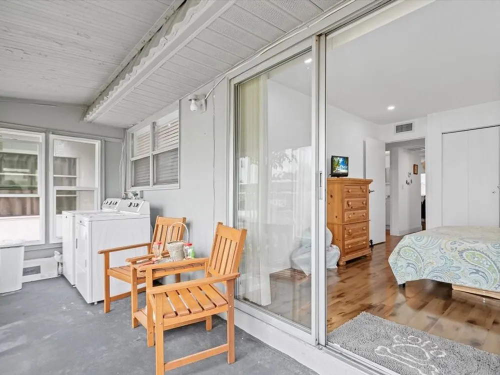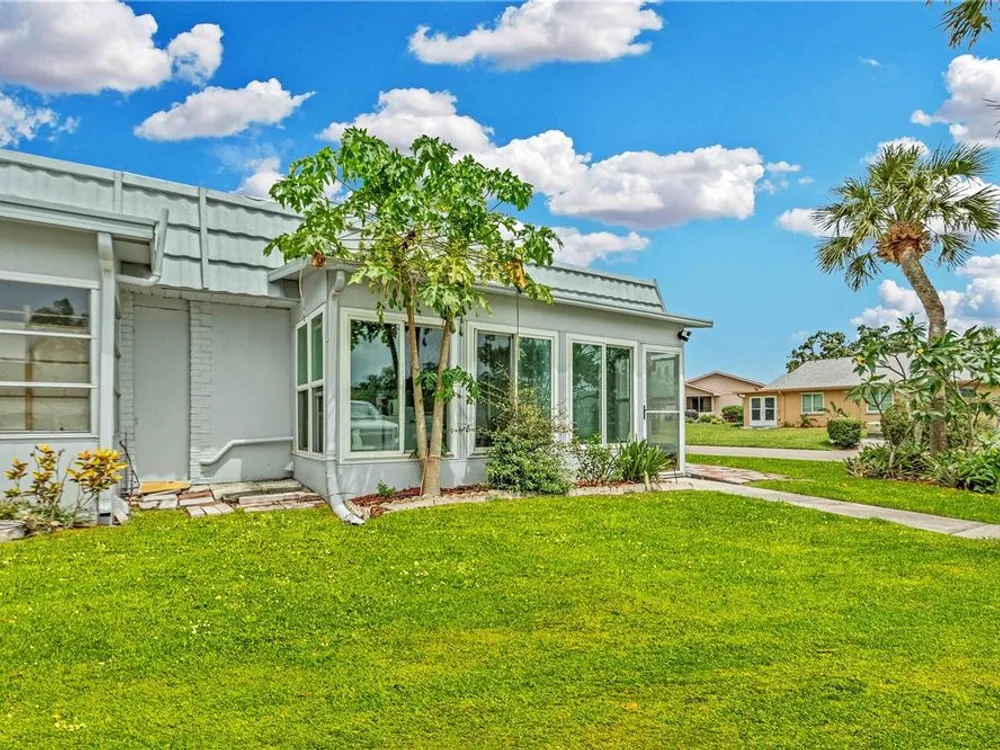 Updated Corner Villa in Sun City with Modern Finishes! Welcome to this beautifully updated end-unit villa located in the heart of Sun City Center! This light and bright 2-bedroom, 2-bathroom home offers stylish updates and low-maintenance living in a vibrant 55+ community. Step inside to find laminate floors throughout, newer baseboards, recessed lighting, and an refreshed kitchen with shaker cabinets, stainless steel appliances, and adjacent eating area. Both bathrooms have been renovated with modern finishes, each featuring a walk-in shower. Additional updates include insulated windows, a new front door, and more. Enjoy your morning coffee on the screened porch, complete with a private washer and dryer. A dedicated carport space is conveniently located just steps from your front door. Residents enjoy access to Sun City Center and Kings Point amenities, including pools, fitness centers, golf, clubs, dining, and more—all in a golf cart-friendly community with easy access to shopping, dining, and medical care. Move-in ready and full of charm—come experience the carefree Florida lifestyle today!