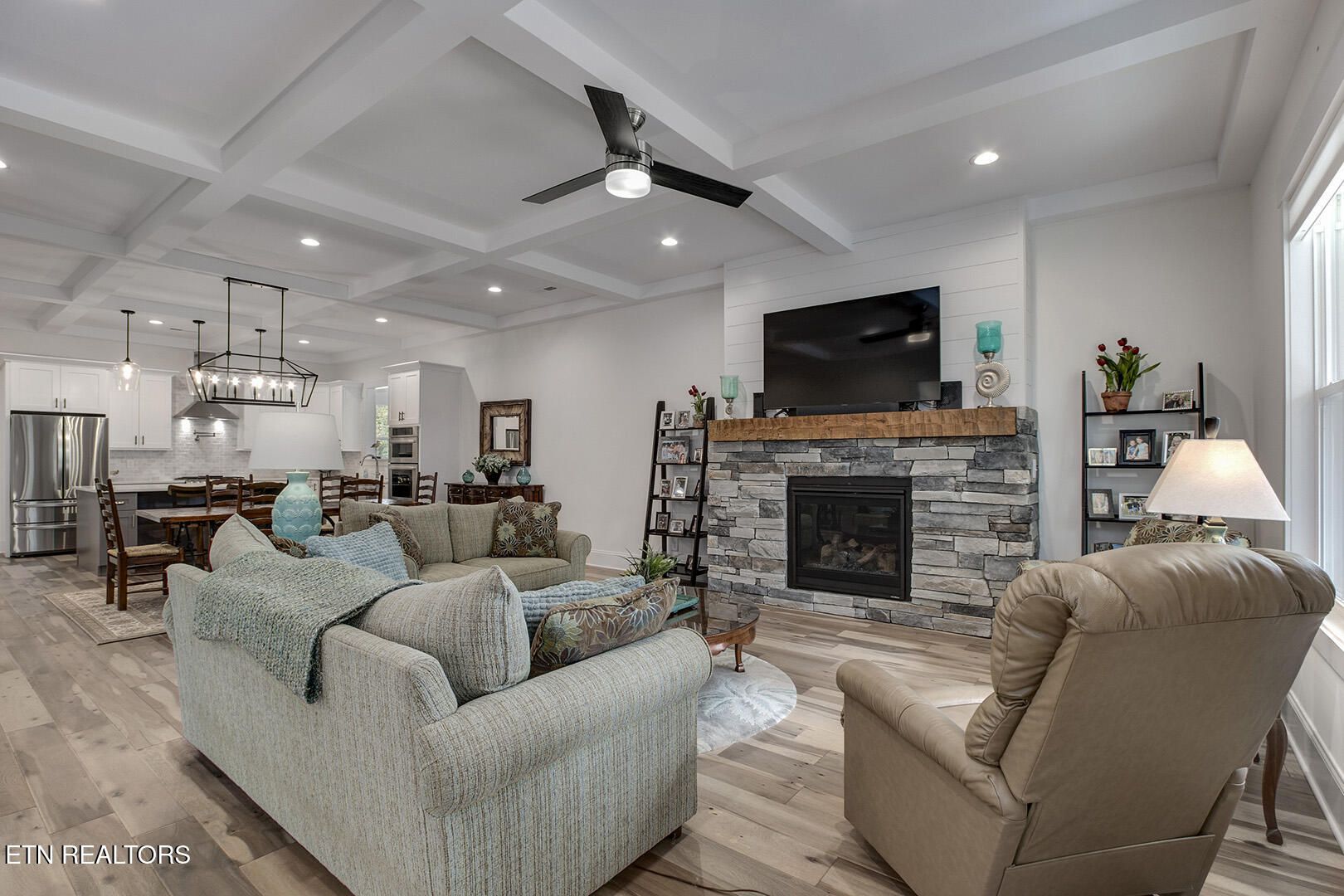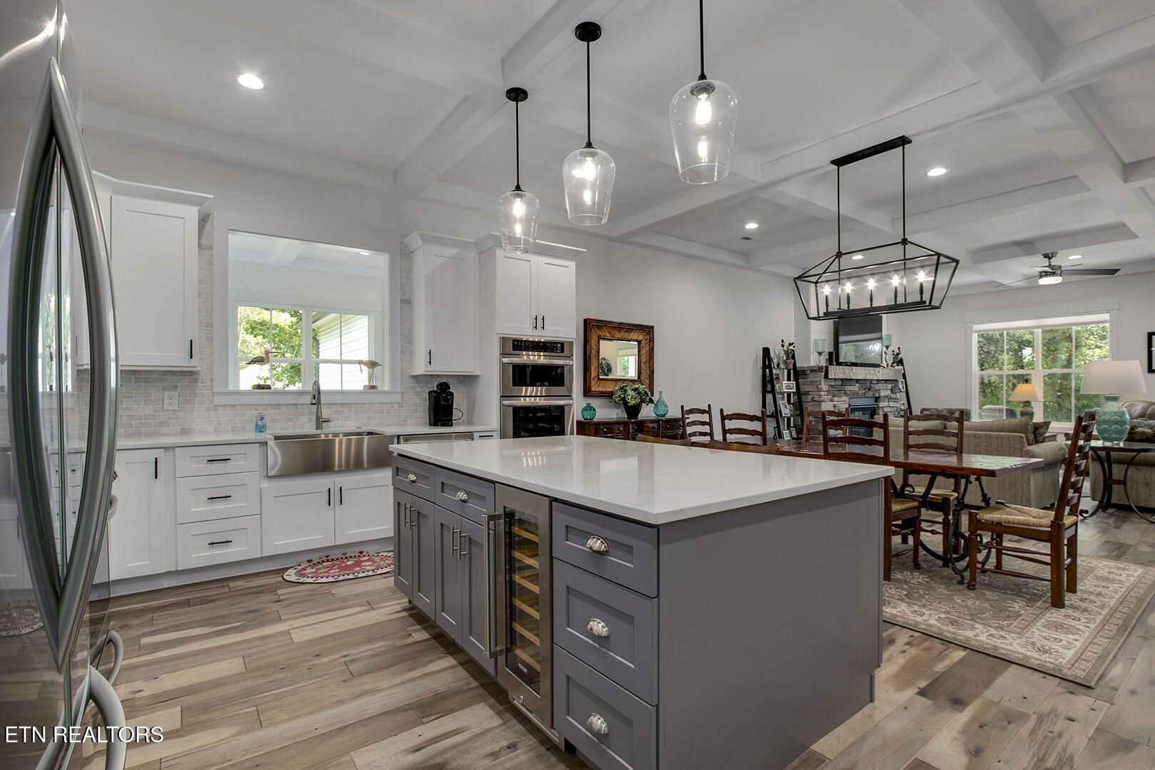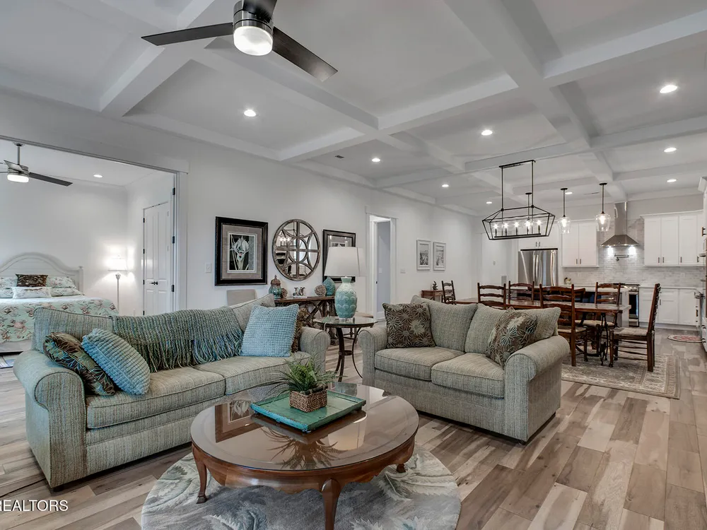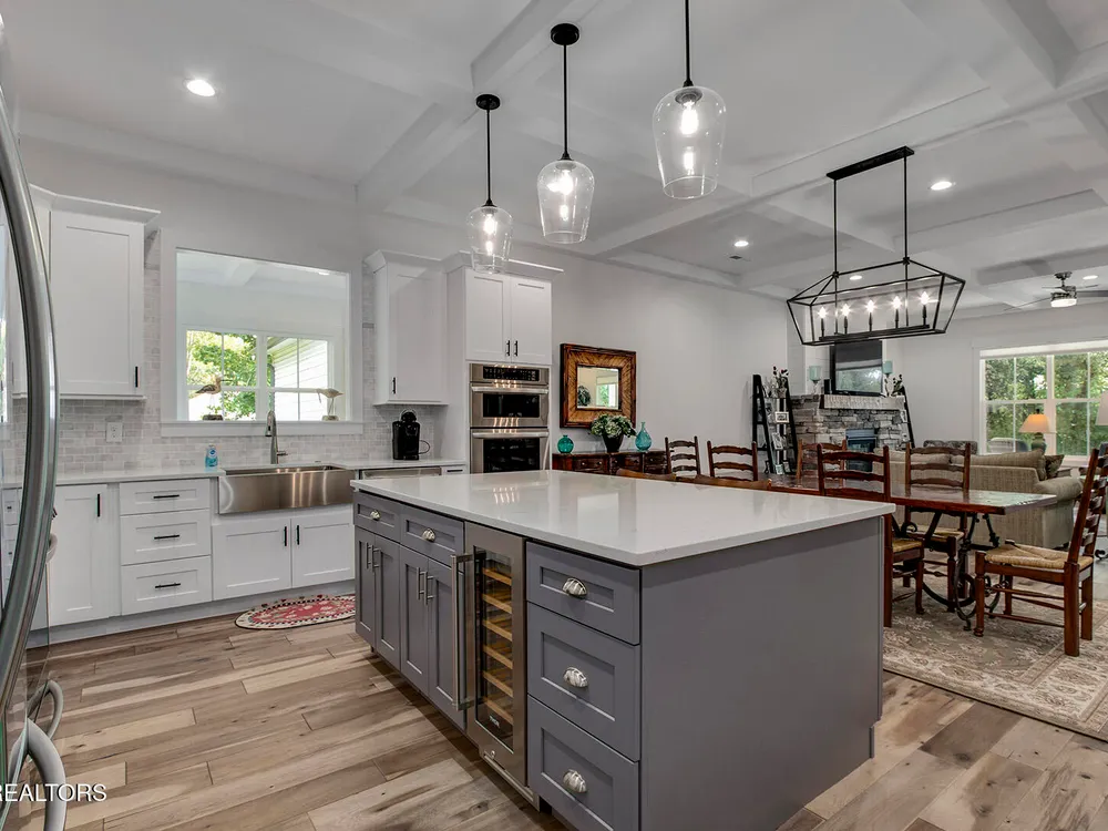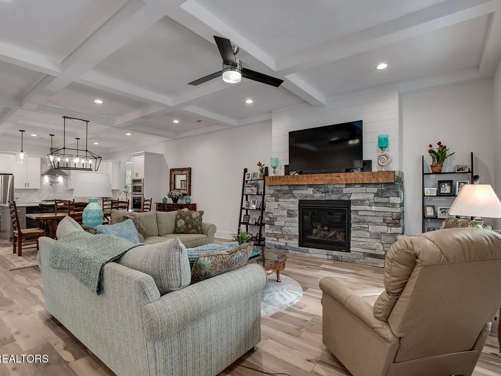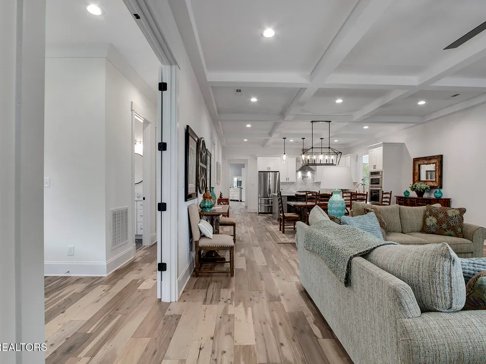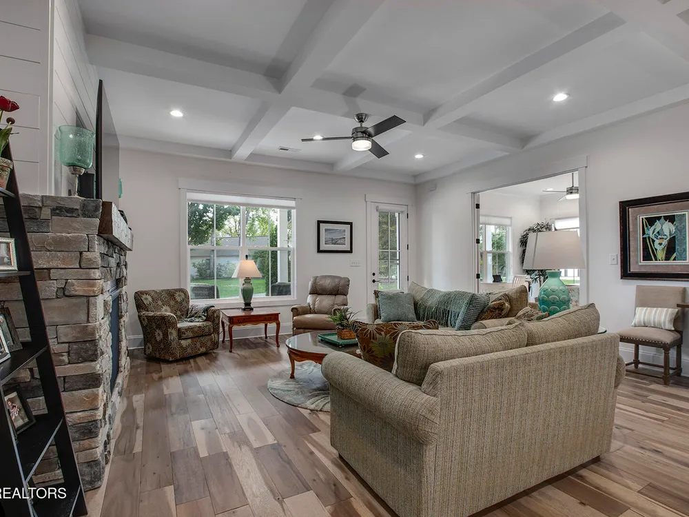 It FEELS LIKE HOME as soon as you open the front door. OPEN CONCEPT living/dining/kitchen with coffered ceilings. Ten foot ceilings and eight foot doors throughout home accentuate the spaciousness. Beautiful hardwood and tile floors. Stone fireplace. CHEF'S KITCHEN with quartz counter tops, pot filler, two ovens, beverage refrigerator, stainless steel vent hood and apron sink, and large prep island with bar stool seating. The primary bedroom offers an owner's retreat with large walk-in closet, ensuite bath, and roomy walk-in shower. Generous laundry room with lots of storage. Cozy SUNROOM adjoining private deck. SPACIOUS BONUS ROOM would be great private space for guests or a great hobby/craft room. All this and two guest bedrooms and baths on the main level. Owners have enlarged two front windows and added two additional windows to the sunroom. Tellico Village is a waterfront community with lake and mountain views, low taxes, a low monthly assessment, and low-cost amenities including three championship golf courses, a wellness center (with indoor swimming pool, state of the art exercise equipment, walking track, and rooms for aerobics and fitness classes), outdoor swimming pools, tennis as well as pickleball courts, a medical building with full-time doctors, hiking trails, a dog park, a Yacht Club and three marinas. All these amenities and over 200 social clubs make it a very affordable and exciting place to live.