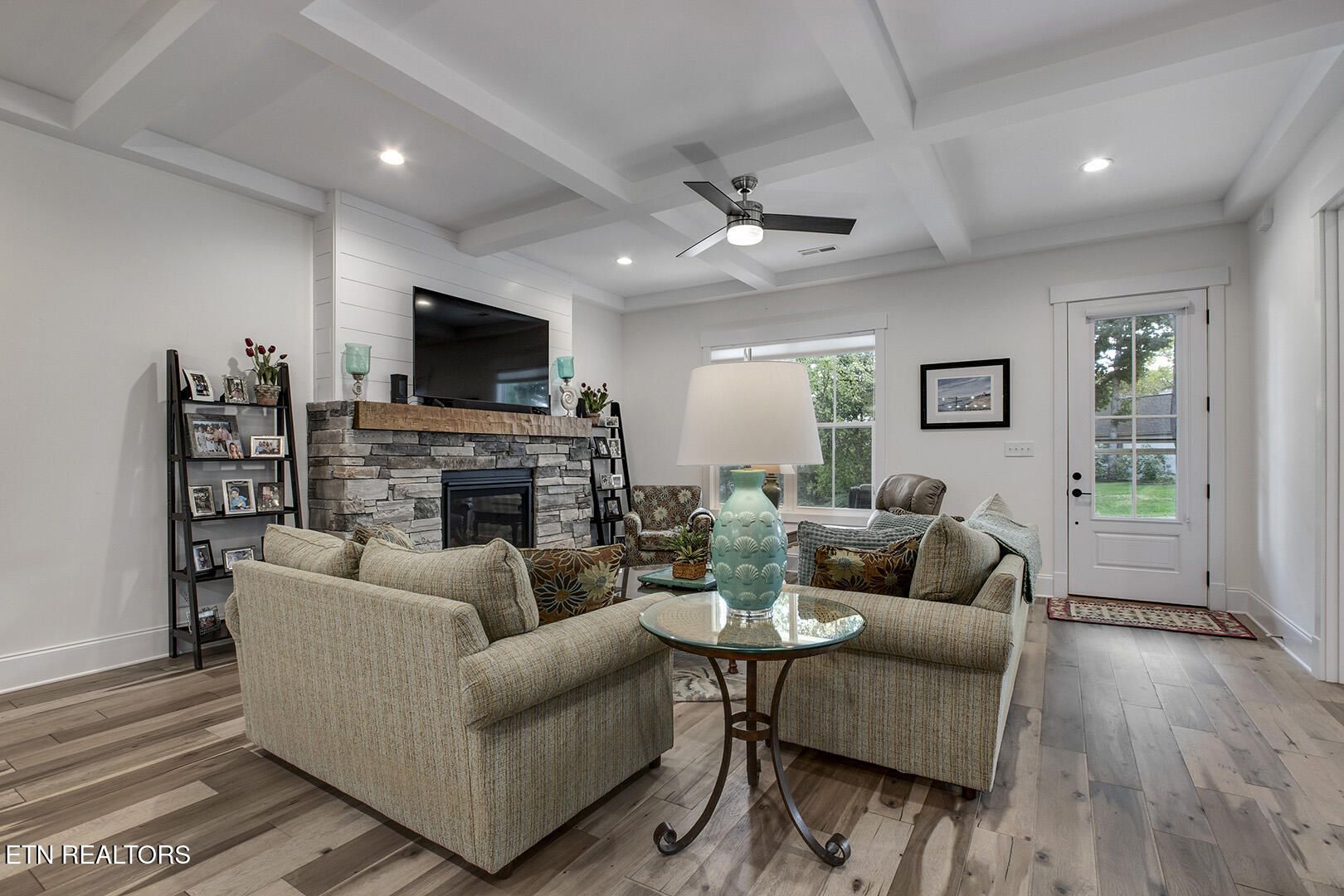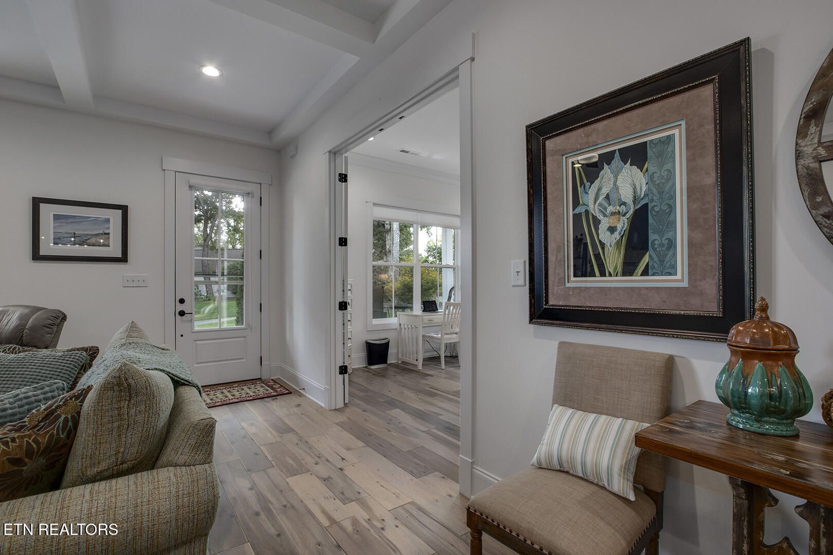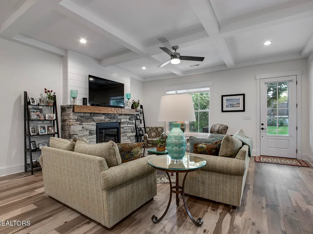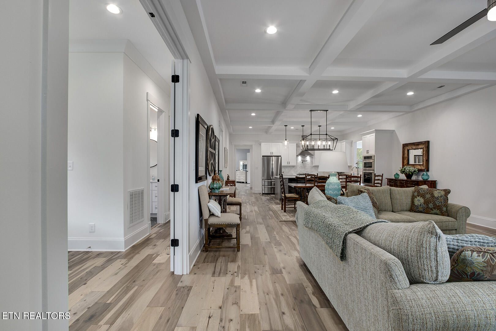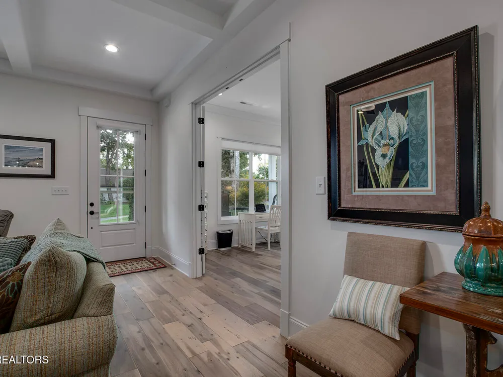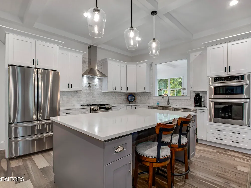 It FEELS LIKE HOME as soon as you open the front door. OPEN CONCEPT living/dining/kitchen with coffered ceilings. Ten foot ceilings and eight foot doors throughout home accentuate the spaciousness. Beautiful hardwood and tile floors. Stone fireplace. CHEF'S KITCHEN with quartz counter tops, pot filler, two ovens, beverage refrigerator, stainless steel vent hood and apron sink, and large prep island with bar stool seating. The primary bedroom offers an owner's retreat with large walk-in closet, ensuite bath, and roomy walk-in shower. Generous laundry room with lots of storage. Cozy SUNROOM adjoining private deck. SPACIOUS BONUS ROOM would be great private space for guests or a great hobby/craft room. All this and two guest bedrooms and baths on the main level. Owners have enlarged two front windows and added two additional windows to the sunroom. Tellico Village is a waterfront community with lake and mountain views, low taxes, a low monthly assessment, and low-cost amenities including three championship golf courses, a wellness center (with indoor swimming pool, state of the art exercise equipment, walking track, and rooms for aerobics and fitness classes), outdoor swimming pools, tennis as well as pickleball courts, a medical building with full-time doctors, hiking trails, a dog park, a Yacht Club and three marinas. All these amenities and over 200 social clubs make it a very affordable and exciting place to live.