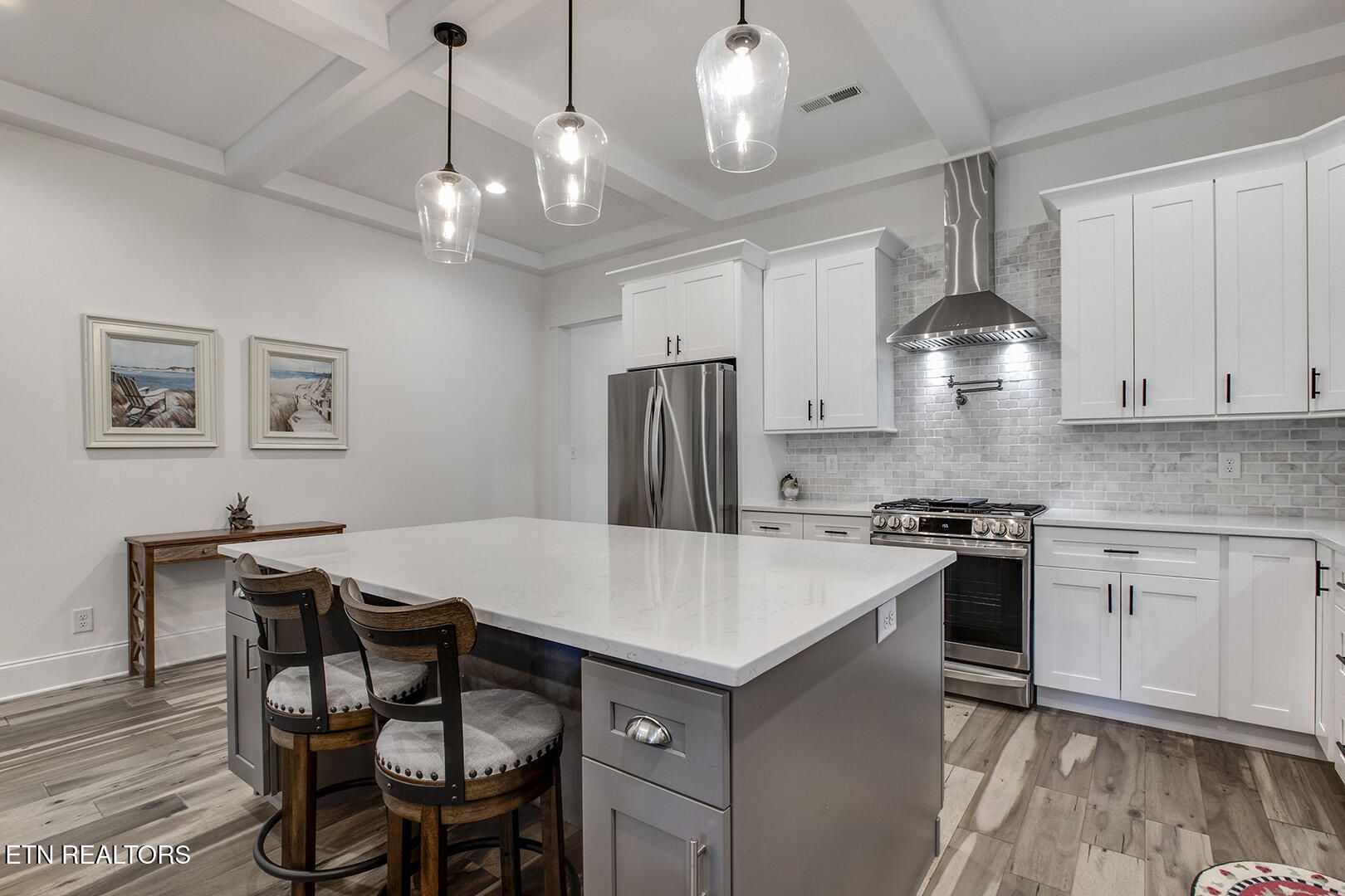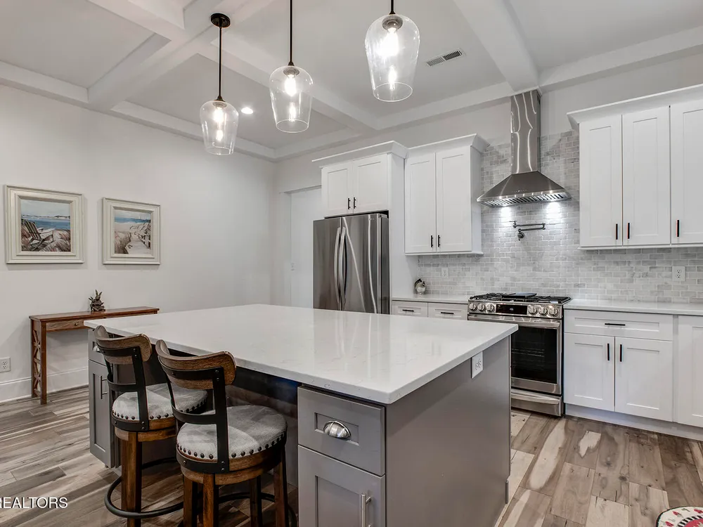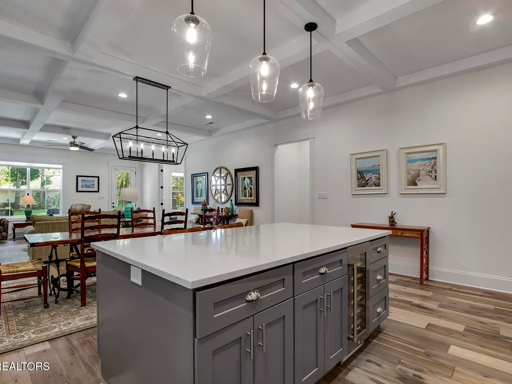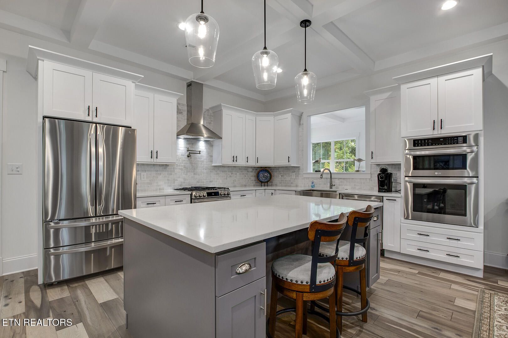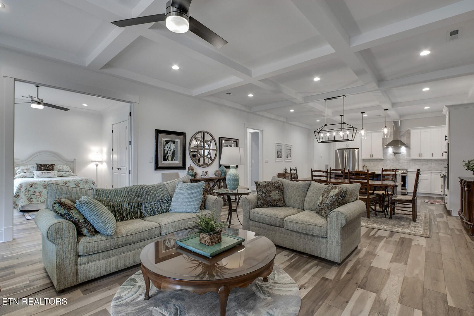 It FEELS LIKE HOME as soon as you open the front door. OPEN CONCEPT living/dining/kitchen with coffered ceilings. Ten foot ceilings and eight foot doors throughout home accentuate the spaciousness. Beautiful hardwood and tile floors. Stone fireplace. CHEF'S KITCHEN with quartz counter tops, pot filler, two ovens, beverage refrigerator, stainless steel vent hood and apron sink, and large prep island with bar stool seating. The primary bedroom offers an owner's retreat with large walk-in closet, ensuite bath, and roomy walk-in shower. Generous laundry room with lots of storage. Cozy SUNROOM adjoining private deck. SPACIOUS BONUS ROOM would be great private space for guests or a great hobby/craft room. All this and two guest bedrooms and baths on the main level. Owners have enlarged two front windows and added two additional windows to the sunroom. Tellico Village is a waterfront community with lake and mountain views, low taxes, a low monthly assessment, and low-cost amenities including three championship golf courses, a wellness center (with indoor swimming pool, state of the art exercise equipment, walking track, and rooms for aerobics and fitness classes), outdoor swimming pools, tennis as well as pickleball courts, a medical building with full-time doctors, hiking trails, a dog park, a Yacht Club and three marinas. All these amenities and over 200 social clubs make it a very affordable and exciting place to live.