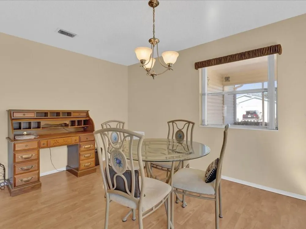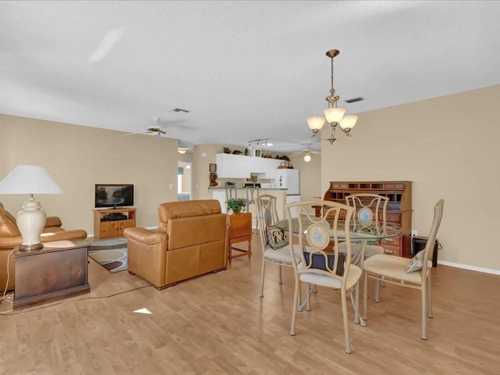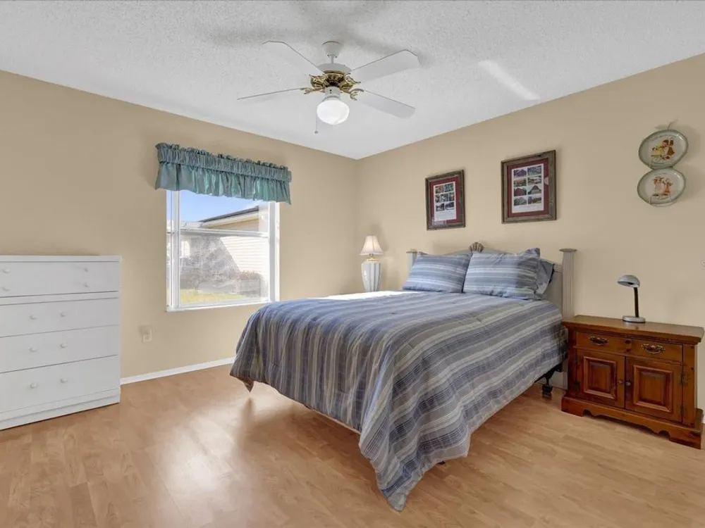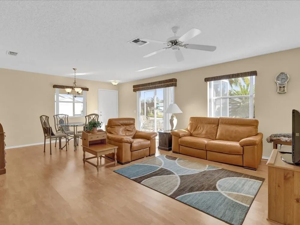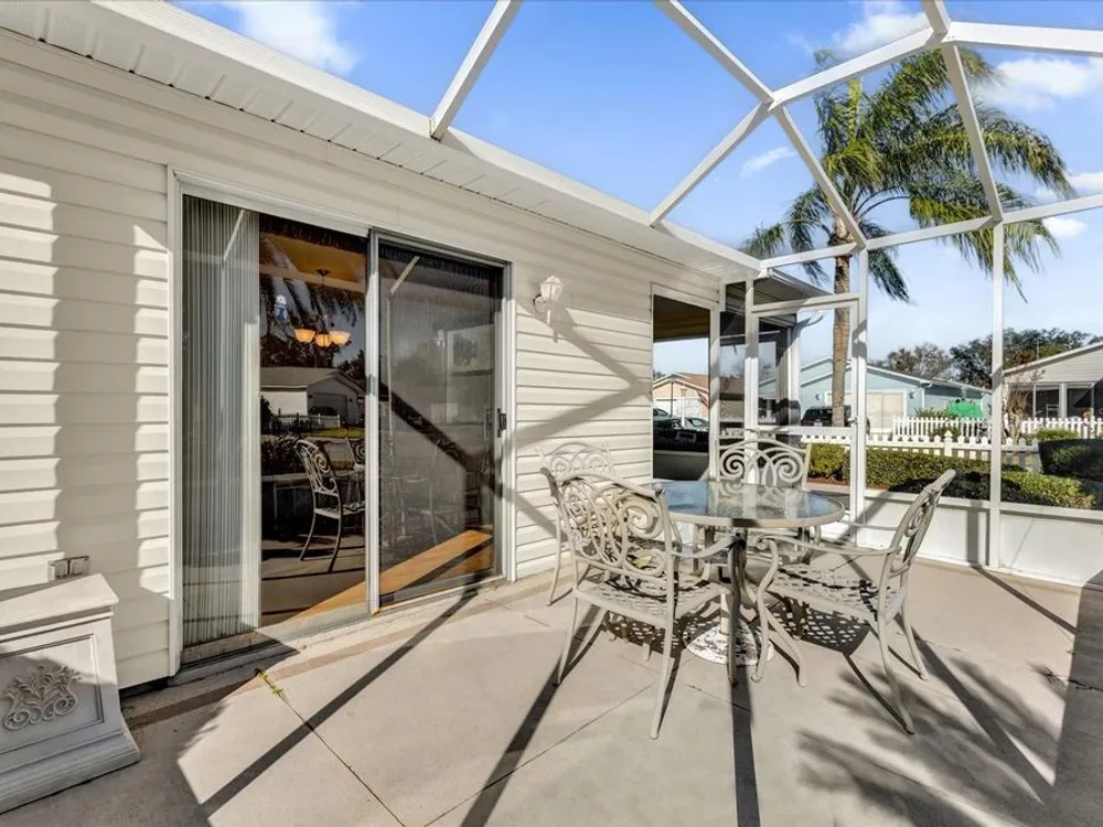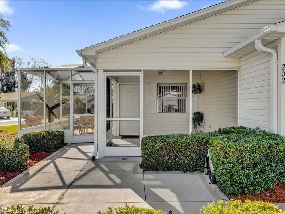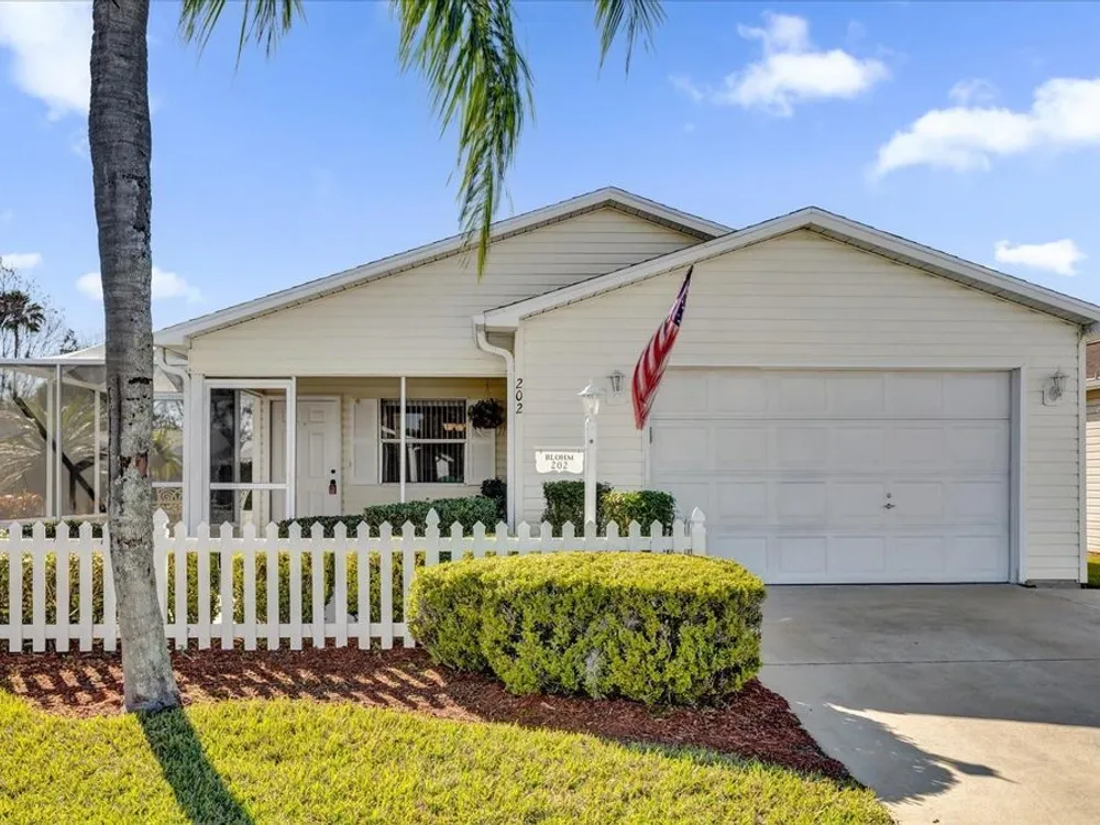 Your Florida vacation retreat awaits! Come see this beautifully landscaped corner homesite villa with front covered lanai and side birdcage lanai great for all your outdoor entertaining! Inside, the very popular Colony floorplan offers 2 bedrooms and 2 bathrooms with a great eat-in kitchen featuring a pantry closet and additional cabinets for storage. The laminate wood floors are an ease to clean along with the tile floors in the kitchen and bathrooms meaning no carpet at all. 3 solar tubes add natural light to the kitchen and bathrooms. The villa comes furnished and almost completely turnkey to get you ready to start enjoying the lifestyle from day 1! HVAC was replaced in 2013. No bond adds an even bigger value! The garage features shelving to keep your belongings off the ground. Come see this villa!