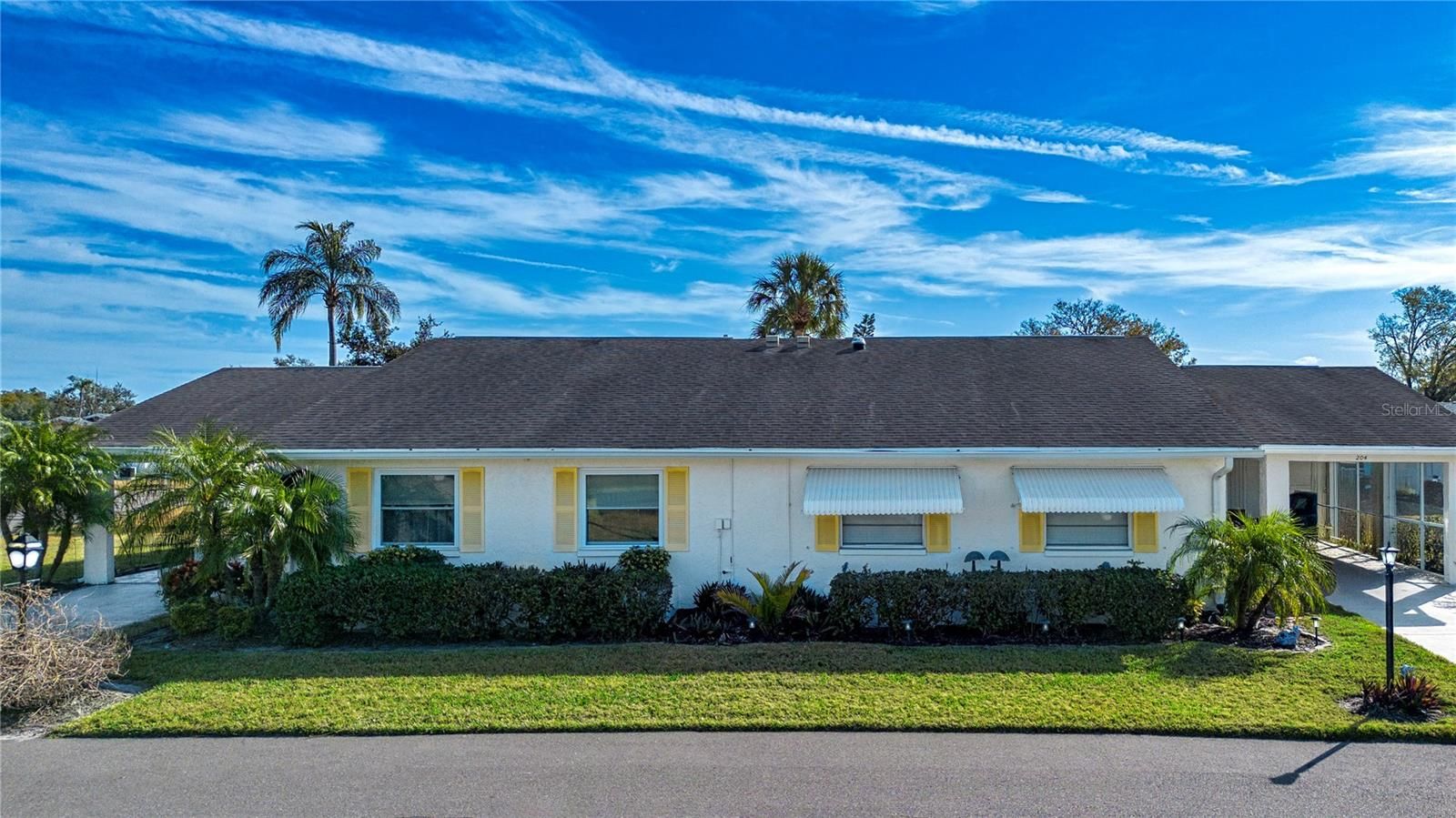 Welcome home to this bright and beautiful EXPANDED Hampton model, boasting of 1,168 actual square footage under heat and air due to the upgraded Florida room. Turn-key ready! This furnished home has been well cared for, with freshly painted rooms, updated bathrooms with new modern lighting, new raised vanities and new raised toilets. The en suite bathroom has a convenient walk-in shower, and the guest bathroom has a shower/tub combo. The kitchen has a little breakfast bar area, which could be opened up if you choose to do so. The wall is not loadbearing. All the bottom cabinets have pull-out drawers for the hard-to-reach items. Carpet is brand new and only in the bedrooms. Some ceiling and light fixtures are new. Newer windows in the bedrooms. All the furniture is included; however, seller will remove it if it is not wanted. Home is currently under the KPW warranty and HVAC, and water heater has had regular maintenance and function properly. Outside you have an attached carport and a separate laundry room with lots of storage space, including room for your golf cart. Shelves will stay for the buyers convenience. Off the Florida room there is a large outdoor patio for your enjoyment. Great space to cookout and enjoy the Florida sunshine! Kings Point is a premier retirement community with exceptional resort style amenities for you to enjoy! State-of-the-art fitness center, pickleball and tennis courts, indoor and outdoor heated pools, sports bar, restaurant, billiards, theater, just to name a few. There are many clubs and sport activities for you to participate in. Kings Point also offers fantastic music events and theater shows. You can be as active as you like. Kings Point is located in Sun City Center - halfway between Tampa and Sarasota. The area offers shopping, restaurants, medical facilities, and places of worship. This is a wonderful community! If you haven't been here, call for a personal tour of the community and the home, you will see why so many people love it here! Start enjoying the carefree Florida lifestyle! It's waiting for you!
