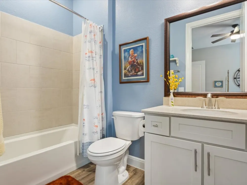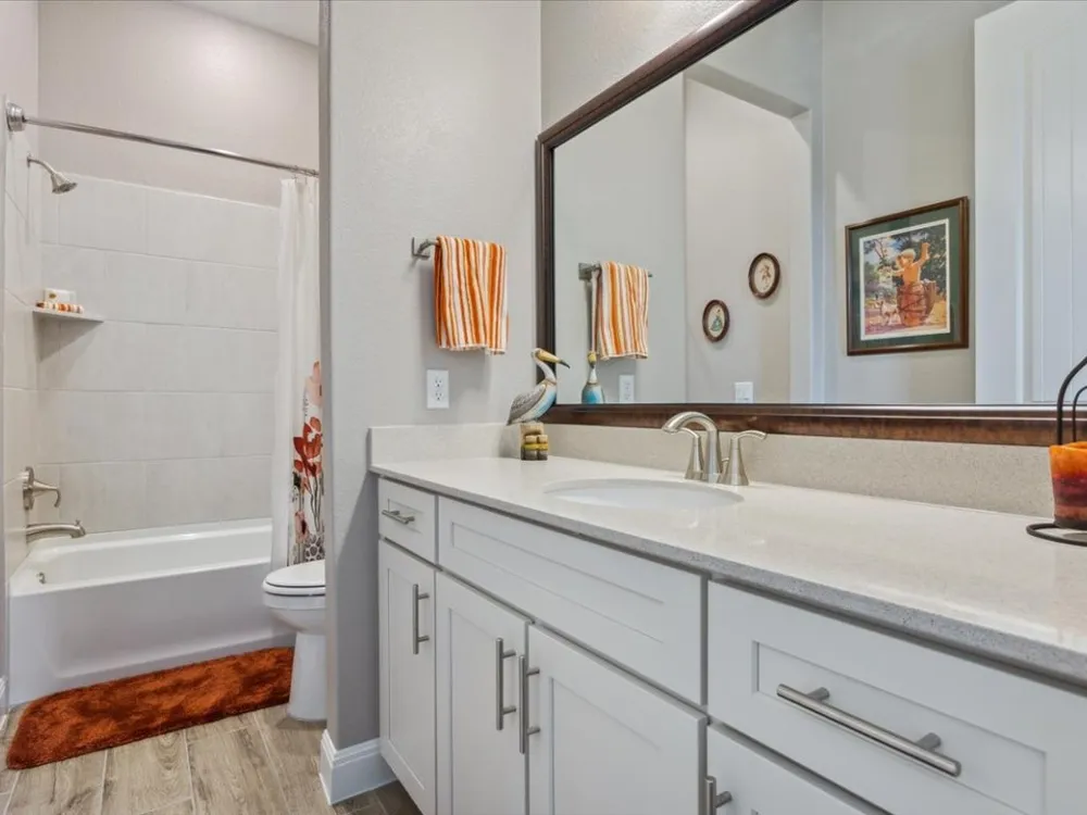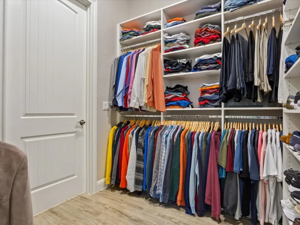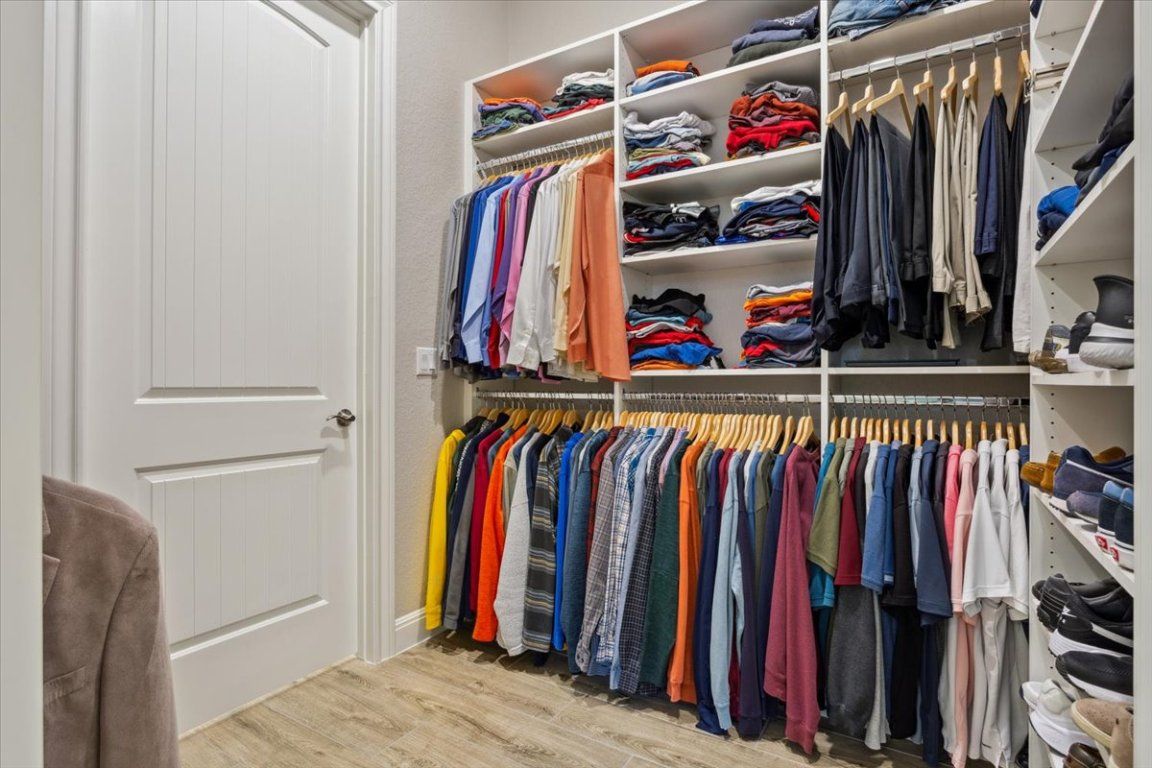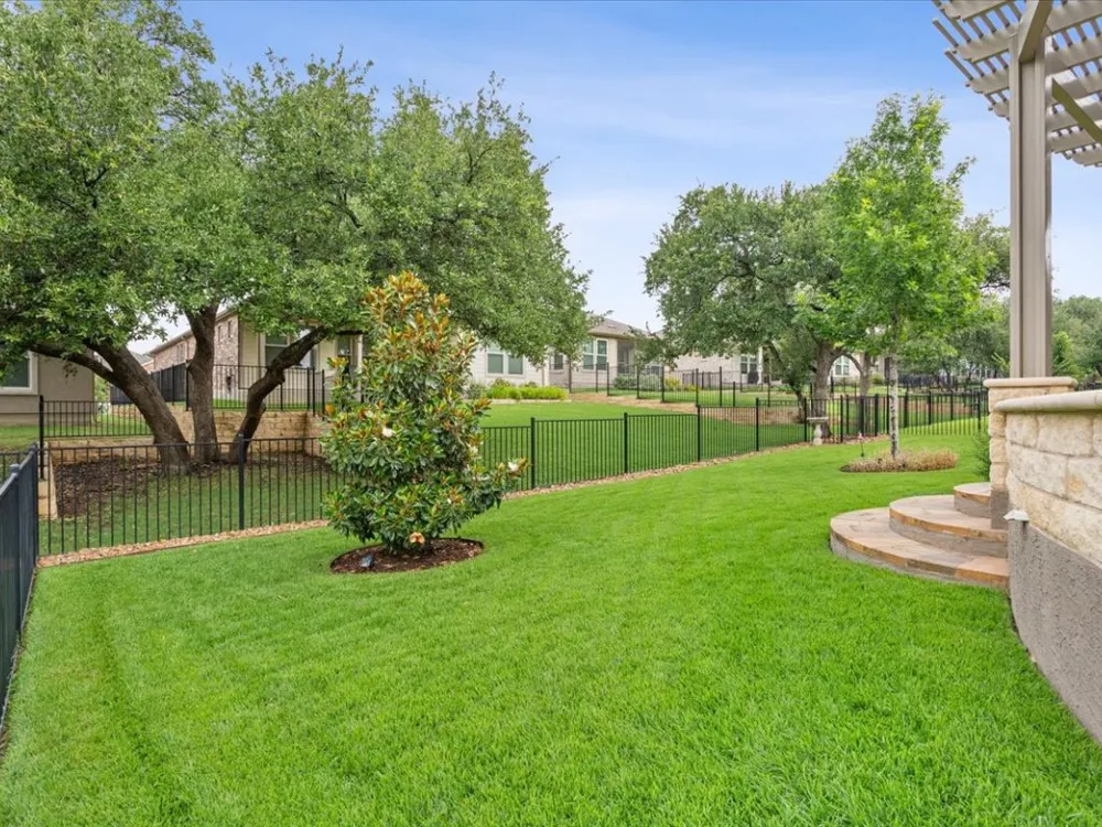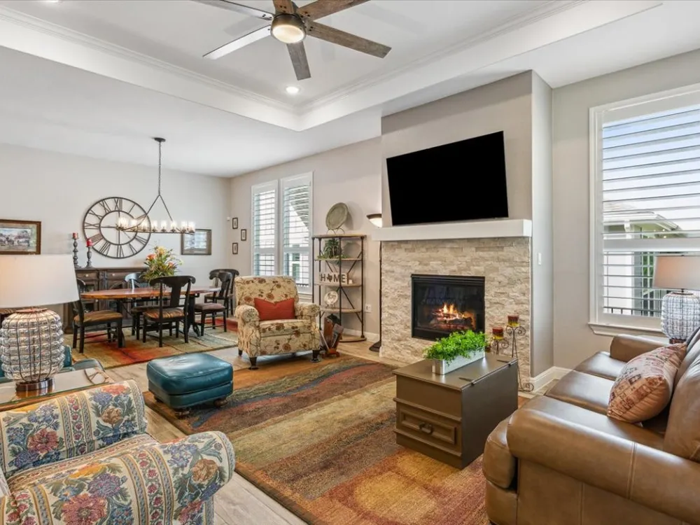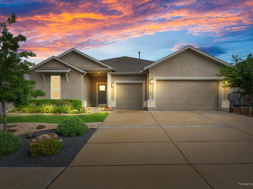 Stunning Renown floor plan in Sun City, Georgetown, offering an exceptional blend of luxury, comfort, and thoughtful upgrades throughout. This meticulously maintained home is ideal for both everyday living and effortless entertaining, with an open-concept design flowing seamlessly from the gourmet kitchen to the formal dining area and spacious gathering room. The chef’s kitchen is a standout with quartz countertops, upgraded stainless appliances including two ovens, an upgraded sink and faucet, self-closing dovetail cabinetry throughout, and pull-out shelving in all lower cabinets. Framed dropped Soffits with Crown molding accents the gathering room, primary suite, and flex space, while French doors add elegance and function to the flex room. The gathering room also includes an upgraded insulation package for year-round comfort. Retreat to a spacious primary suite featuring dual custom his/her closets & a spa-like bath with a tiled walk-in shower and wood-framed mirrors. Each guest suite includes its own full bath and walk-in closet, providing privacy and comfort for visitors. Additional highlights include plantation shutters, Hunter ceiling fans, and a laundry room with utility sink and cabinetry, and half bath. Step outside to an extended back patio with a covered roofline, plus a pergola section, and dual ceiling fans—offering plenty of room to host the neighbors year round for a Texas BBQ or simply unwind surrounded by mature trees and a blooming butterfly garden. A full 3-car garage caps off this impressive home with an additional 4' extension, insulated garage doors, R-36 attic insulation, epoxy floors, wall-mounted shelving, a tankless water heater, and a water softener system. The house also has the Holiday Package (multiple roof eve mounted electrical outlets controlled by interior wall switches) making decorating for the holidays a breeze. Interior repainted 2022 - well cared for with annual maintenance on major systems—truly move-in ready!