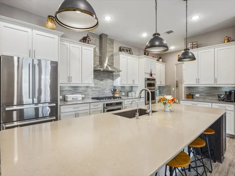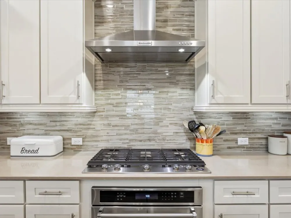 - Built-In Gas Range, Built-In Oven, Double Oven, Dishwasher, Exhaust Fan, Free-Standing Refrigerator, Disposal, Gas Water Heater, Microwave, Plumbed For Ice Maker, Refrigerator, Water Softener Owned, Stainless Steel Appliance(s)