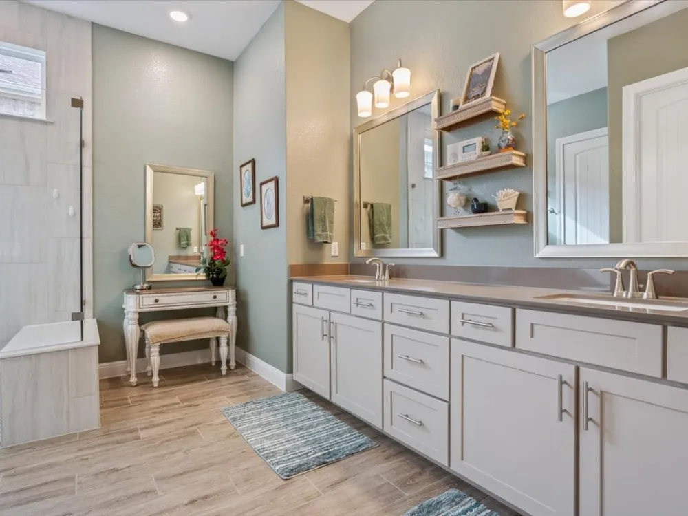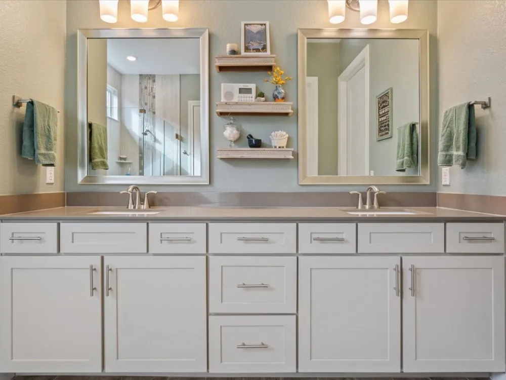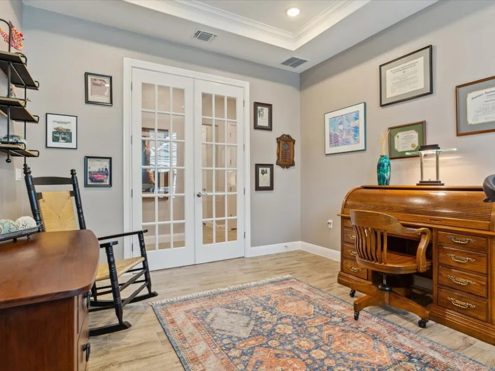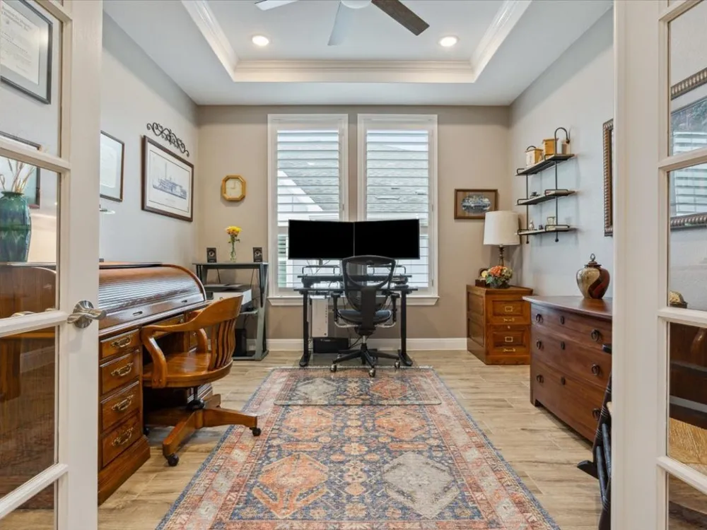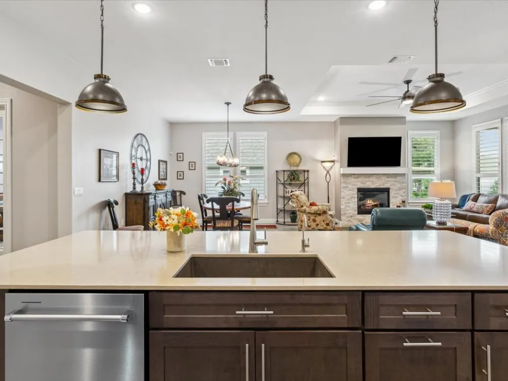 - Breakfast Bar, Built-in Features, Tray Ceiling(s), Ceiling Fan(s), Crown Molding, Separate/Formal Dining Room, Double Vanity, Eat-in Kitchen, French Door(s)/Atrium Door(s), High Ceilings, Kitchen Island, Multiple Dining Areas, Multiple Primary Bathrooms, NoInteriorSteps, Open Floorplan, Pantry, Quartz Countertops, Recessed Lighting, Walk-In Closet(s)