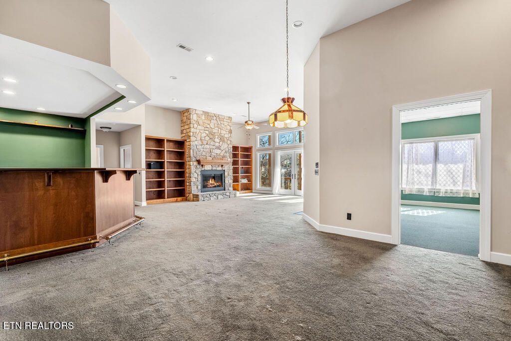 A rare opportunity to own a stunning, custom-built, one-owner home perfectly positioned on a deep cove of Tellico Lake in the highly desirable north end of Tellico Village. This exceptional waterfront residence offers breathtaking lake views from nearly every room and is truly one not to be missed. Step into the great room and feel instantly at home, welcomed by soaring ceilings, dramatic custom redwood beams, a grand stone fireplace, and expansive windows framing endless water views. The spacious kitchen is designed for both entertaining and everyday living, featuring a gas cooktop, built-in coffee/espresso machine, large island, pantry, and—of course—more spectacular lake views. Thoughtfully designed, the home offers generous space to host friends and family while remaining comfortable for daily life. The main level includes a three-car garage with workshop, laundry room, guest bedroom with en-suite bath, a bright sunroom just off the kitchen, and custom built-ins flanking the fireplace. The oversized primary suite is a private retreat with a large walk-in closet, expansive en-suite bath, and direct access to the screened porch—perfect for relaxing while overlooking the water. The lower level is an entertainer's dream, featuring a massive recreation room, second fireplace, large wet bar, wine storage, three additional bedrooms, and two full baths. Storage abounds, with an impressive lower-level storage room offering nearly 1,000 square feet—an exceptional bonus rarely found. Outside, enjoy easy access to the lake with your private dock, complete with a boat lift and storage closet, ready for endless lake days and sunset evenings. With its exceptional craftsmanship, thoughtful design, abundant storage, and prime waterfront setting, properties with this much to offer seldom come on the market. BUYER TO VERIFY SQUARE FOOTAGE AND ALL INFORMATION PROVIDED.