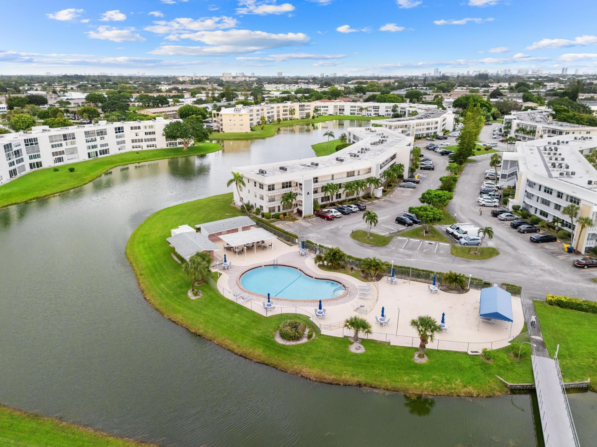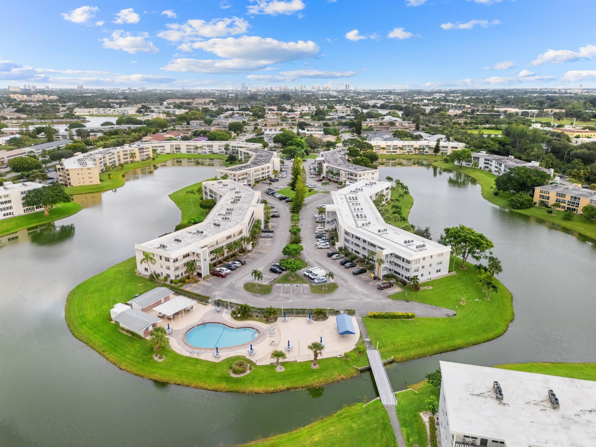 Welcome to this updated 2-bedroom, 2-bathroom condo located in the desirable 55+ community of Century Village. This unit is equipped with a modern kitchen that includes rich wood cabinets, a cooktop, wall oven, and granite countertops! The primary bedroom offers a spacious walk-in closet and a wonderfully updated bathroom with plenty of storage, granite countertops, and a walk-in shower. The guest bathroom has also been updated with a walk-in shower and granite countertops as well. The second bedroom makes a comfy place for guests to stay, or can also be converted into a home office. Enjoy peaceful views from your enclosed back porch that overlooks the lake, perfect for relaxation! Seller is offering Buyer an additional discount to remodel the porch to their taste. This unit is conveniently located next to the stairs and pool, creating the ideal combination of comfort and convenience. Residents of this vibrant community enjoy resort-style amenities, including 10 outdoor pools, an indoor pool with saunas, aerobics and fitness rooms, billiards and card rooms, a computer lab, craft and woodworking rooms, a dance floor, library, ping pong room, theater, tennis, pickleball, and a community shuttle. Experience the best of active adult living with endless opportunities for recreation and socializing.