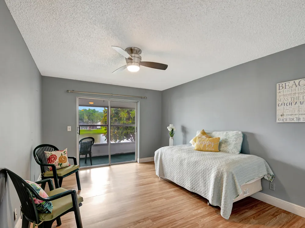 Welcome to this updated 2- bedroom, 2-bathroom condo located in the desirable 55+ community of Century Village. This unit is equipped with a modern kitchen that includes rich wood cabinets, a cooktop, wall oven and granite countertops! The primary bedroom offers a spacious walk-in closet, and a wonderfully updated bathroom with plenty of storage, granite countertops, and a walk-in shower. The guest bathroom has also been updated with a walk-in shower and granite counter tops as well. The second bedroom makes a comfy place for guests to stay or can also be converted into a home office. Enjoy peaceful views from your enclosed back porch that overlooks the lake, perfect for relaxation!