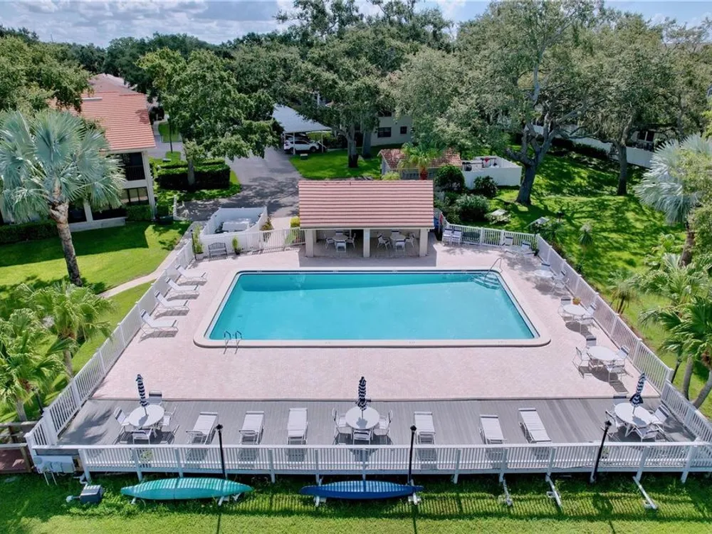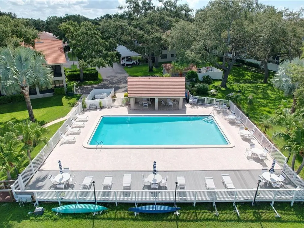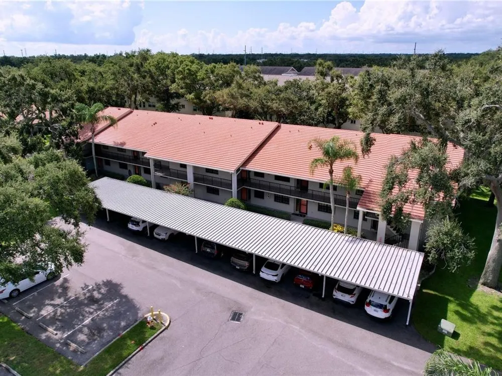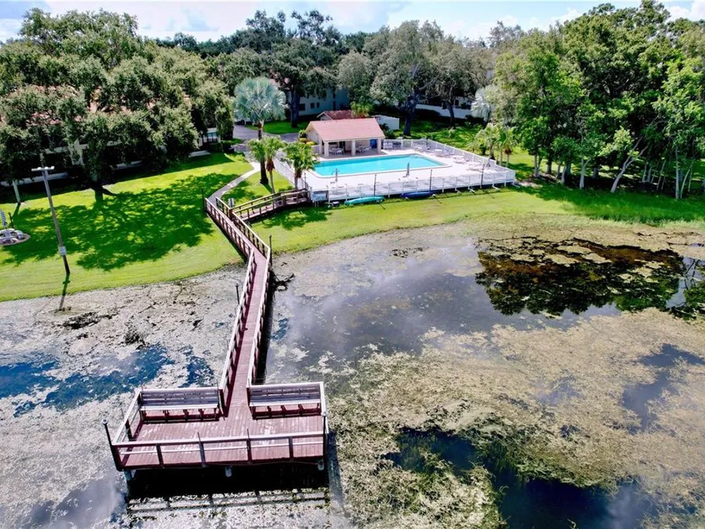 MUST SEE! Experience serene lakeside living in this charming 2BR/2BA second-floor condo, located in the beautifully maintained 55+ community of Villas of Lake Arbor. Enjoy breathtaking water views from the heated community pool or take a peaceful stroll along the fishing pier overlooking the sparkling lake. This light-filled condo features vaulted ceilings, a spacious living/dining area with wet bar, and an eat-in kitchen with stainless steel appliances, newer wood-look LVP flooring, and a convenient breakfast bar. The private primary suite offers a walk-in closet, en-suite bath with walk-in shower, and direct access to the screened, covered lanai—perfect for enjoying the gentle lake breeze. Additional highlights include a full-size laundry room, assigned covered carport, outdoor storage closet, and ample guest parking. HOA covers water, trash, cable, internet, roof, exterior maintenance, and building insurance. Pet-friendly. New roof in 2023. NO FLOOD ZONE or EVACUATION ZONE. Minutes to Clearwater & Dunedin Beaches, Countryside Mall, top recreation, dining, and airport. Carefree Florida living at its finest—schedule your private showing today!