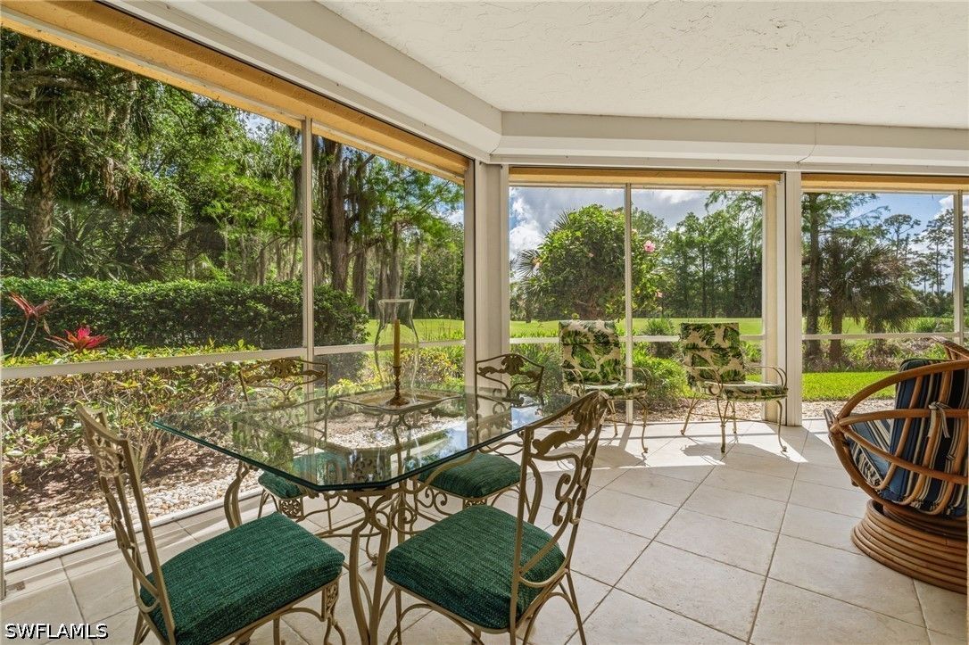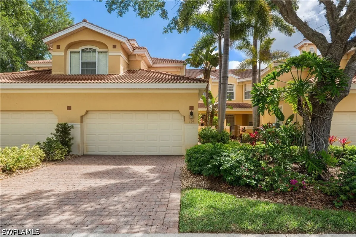 Welcome to a rare opportunity to own a first-floor 3 bedroom/ 2.5 bath coach home at Avalon in Grandezza Golf & Country Club that truly lives like a single-family residence. Perfectly positioned to capture gorgeous golf course views, this home offers a unique blend of privacy, space, and resort-style living. One of the standout features is the private courtyard entrance, creating a charming and secluded entry experience rarely found in coach homes. Inside, the spacious layout flows effortlessly to an expansive wrap-around lanai, ideal for relaxing or entertaining while enjoying serene golf course vistas. The lanai is equipped with remote controlled electric hurricane protection, providing both convenience and peace of mind. This property is priced aggressively for a quick sale, making it an exceptional opportunity for buyers looking to personalize a home to their own taste while gaining instant equity. Additional enhancements include new carpet and tile throughout, a full-house Culligan water filtration system, retractable front door screen, and 2-car garage with epoxy floor. Whether you're seeking a seasonal retreat or a full-time residence, this home offers incredible potential. Located in a desirable, amenity-rich country club community, residents enjoy a resort lifestyle with access to golf, dining, and social activities. The location is unbeatable, just off I-75 and Ben Hill Griffin Parkway, placing you minutes from shopping, dining, entertainment, and a short drive to Southwest Florida International Airport. Don’t miss this chance to create your ideal Florida home in a prime Estero location with beautiful views and unmatched value.