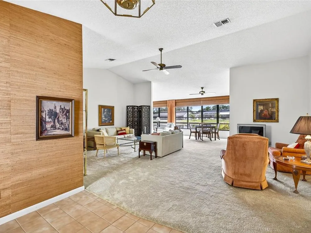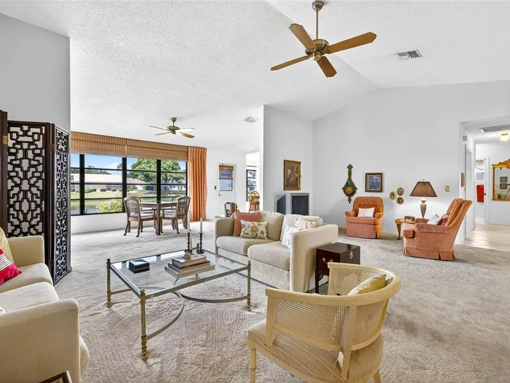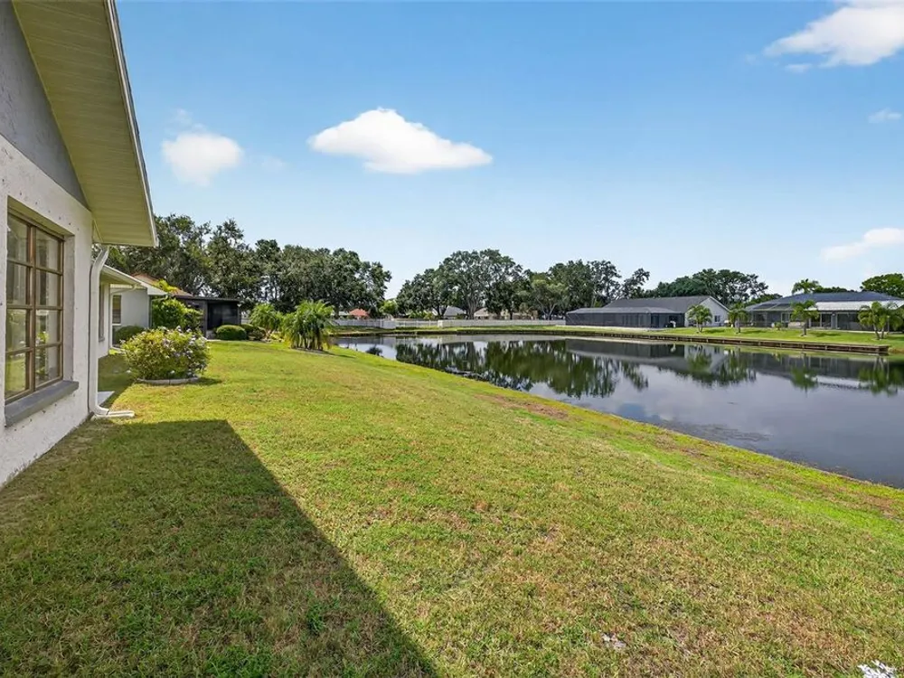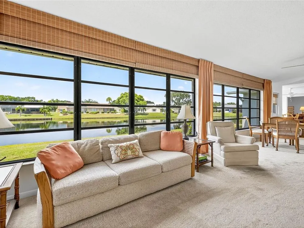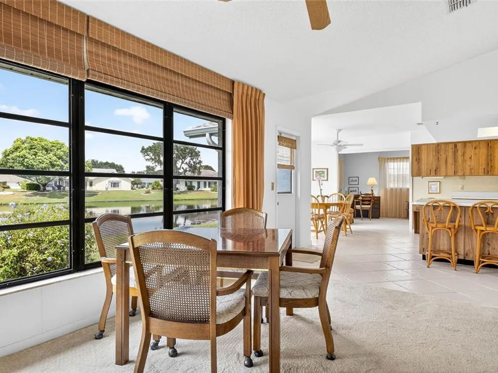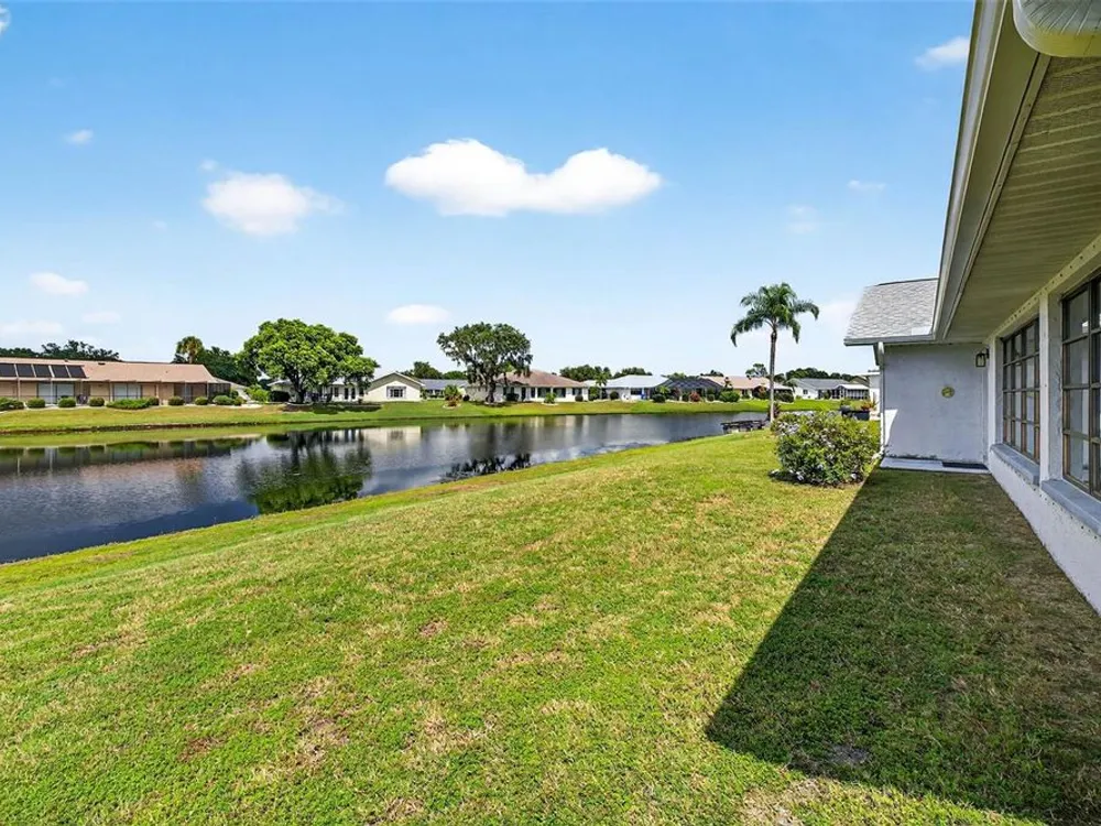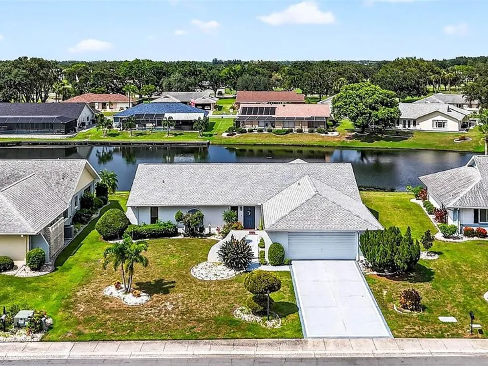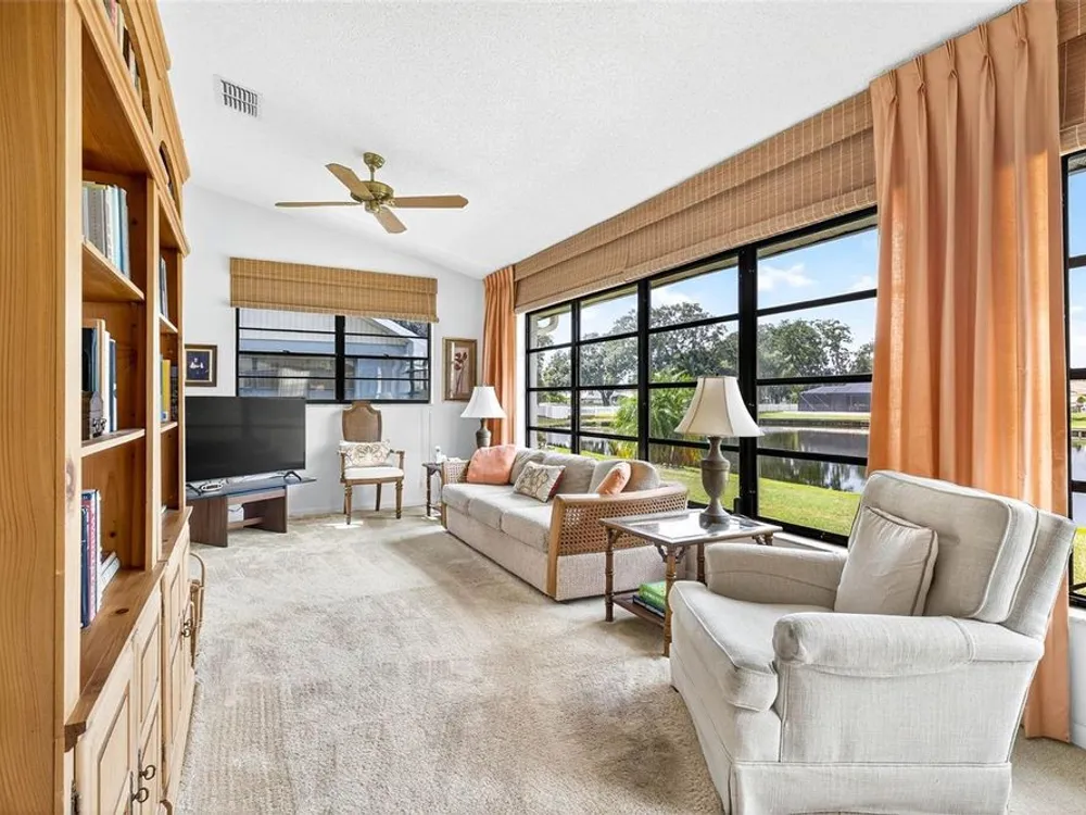 Serene Pond View & Sunlit Elegance in Sun City Center's Premier 55+ Community Step into tranquility the moment you enter this home, where sweeping views of a peaceful pond greet you through a wall of windows that spans the entire back of the family room. Soaring cathedral ceilings and abundant natural light create an airy, inviting atmosphere perfect for both relaxing and entertaining. Thoughtfully designed split floor plan with pocket doors in all the right places. This spacious layout includes a generous living room with an additional sitting area—ideal for reading, hosting guests, or simply soaking in the view. The primary and guest bedrooms both have serene pond vistas, making every morning feel like a retreat. Enjoy peace of mind with a newer roof and A/C system (just 3 years old), and easy-to-install hurricane fabric protection for all rear windows. The home is nestled in a vibrant community that boasts a clubhouse, fitness center, pools, pickleball, and endless social activities tailored to active adults. Whether you're sipping coffee while watching the birds on the pond or joining neighbors for a round of golf, this home offers the perfect blend of comfort, convenience, and community. Also, savings from water bill, the irrigation for lawn comes from the pond. Don’t miss your chance to live where every day feels like a vacation.