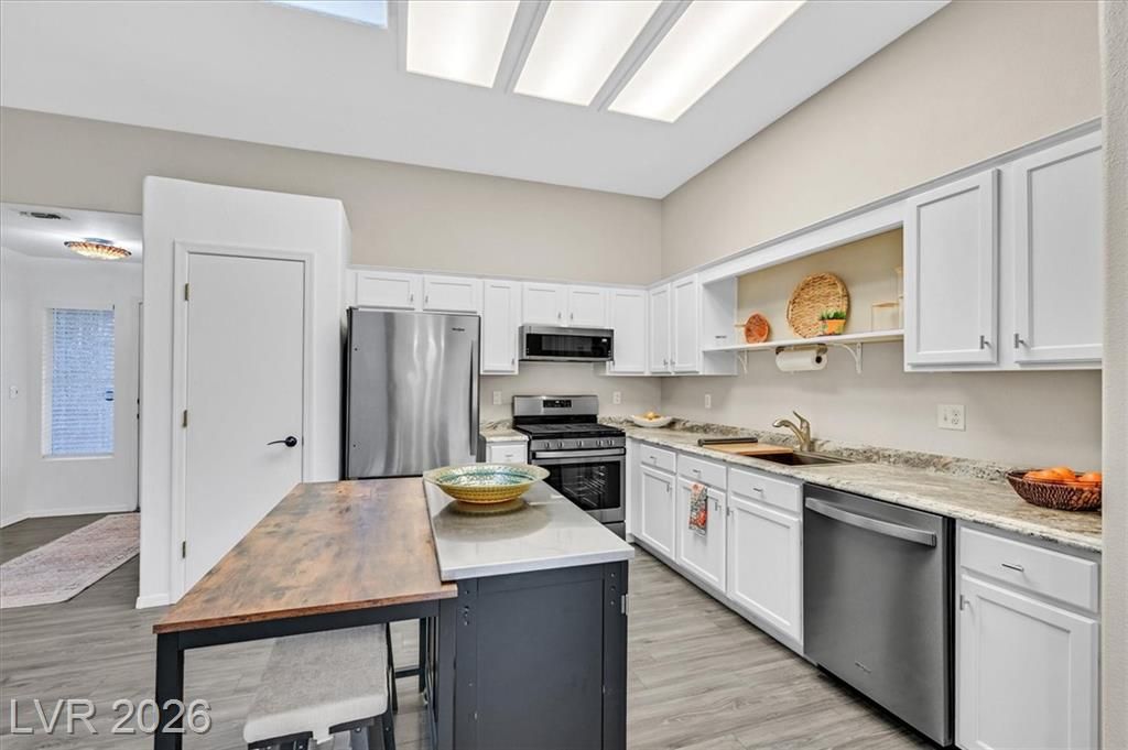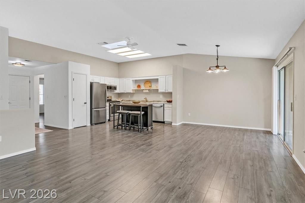 Beautifully maintained home in desirable Henderson 55+ community offering comfort, quality upgrades & true peace of mind. Major renovations completed 2019 include wall removal for an open layout, new flooring throughout, updated kitchen countertops & new appliances. Big-ticket systems have already been addressed with new HVAC system in 2020 & new hot water heater in 2023. Spacious primary suite features fully remodeled bathroom completed in 2025 with new shower, vanity & mirror. Ongoing preventative maintenance reflects pride of ownership, including annual tile roof cleaning & inspection, flat roof cleaned & sealed, air ducts cleaned & inspected, dryer vent cleaned & water heater flushed & new anode. Additional improvements include a heavy-duty garage door spring & new garage door opener, plus solar screens for energy efficiency & comfort. Move-in-ready low-maintenance home ideal for active adults seeking a well-cared-for property in a sought-after Henderson age-restricted community.